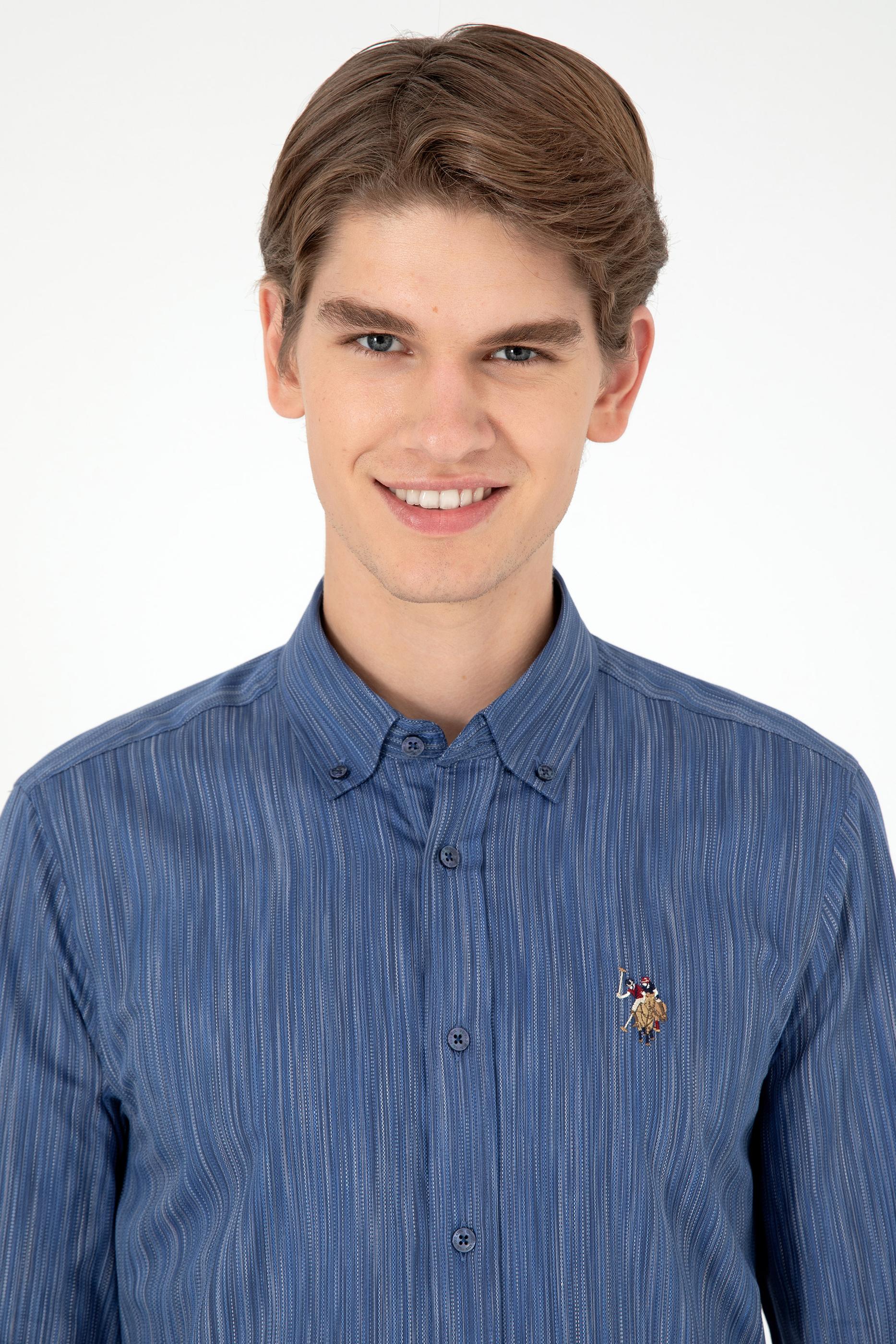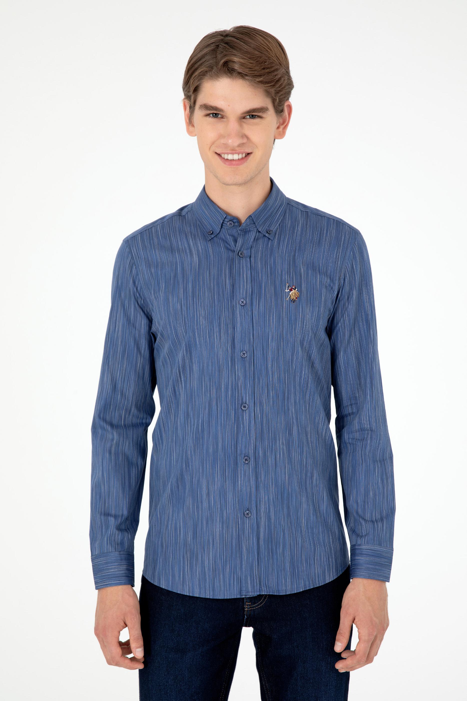 Erkek Mavi Uzun Kollu Gömlek