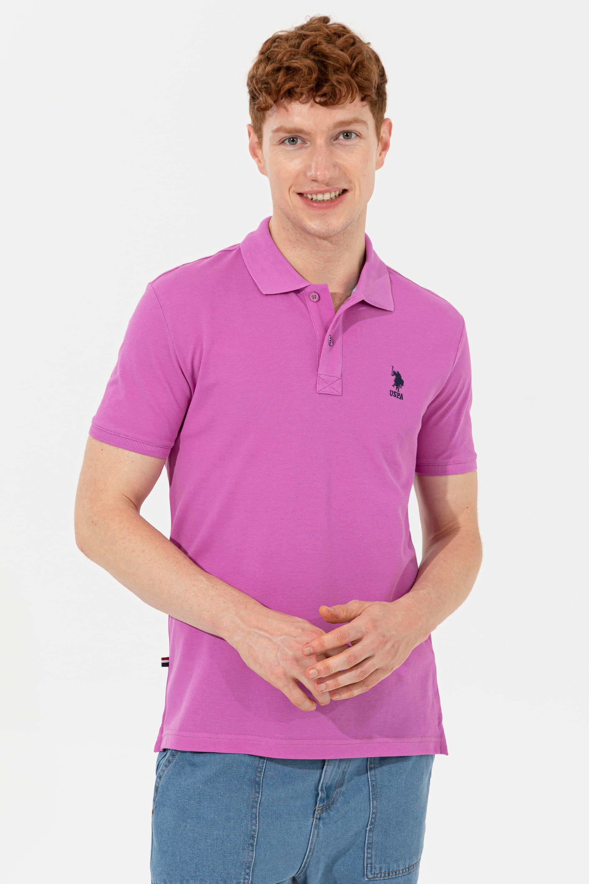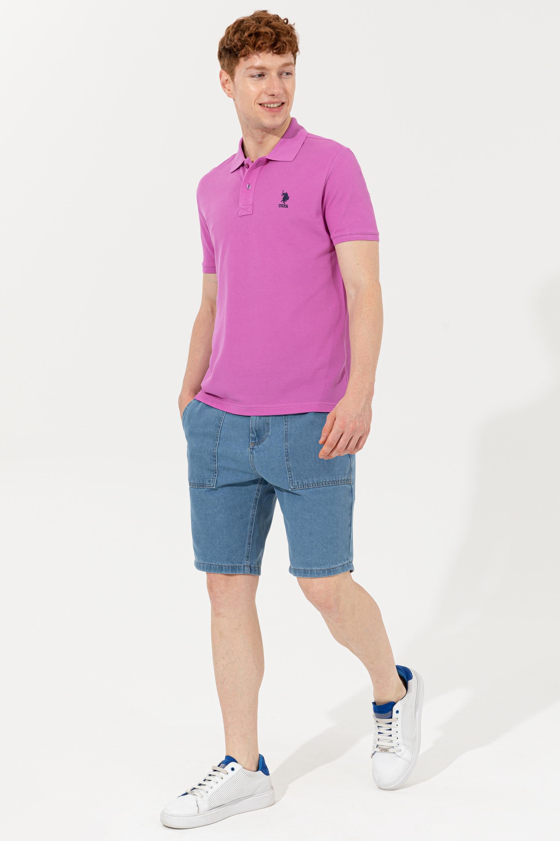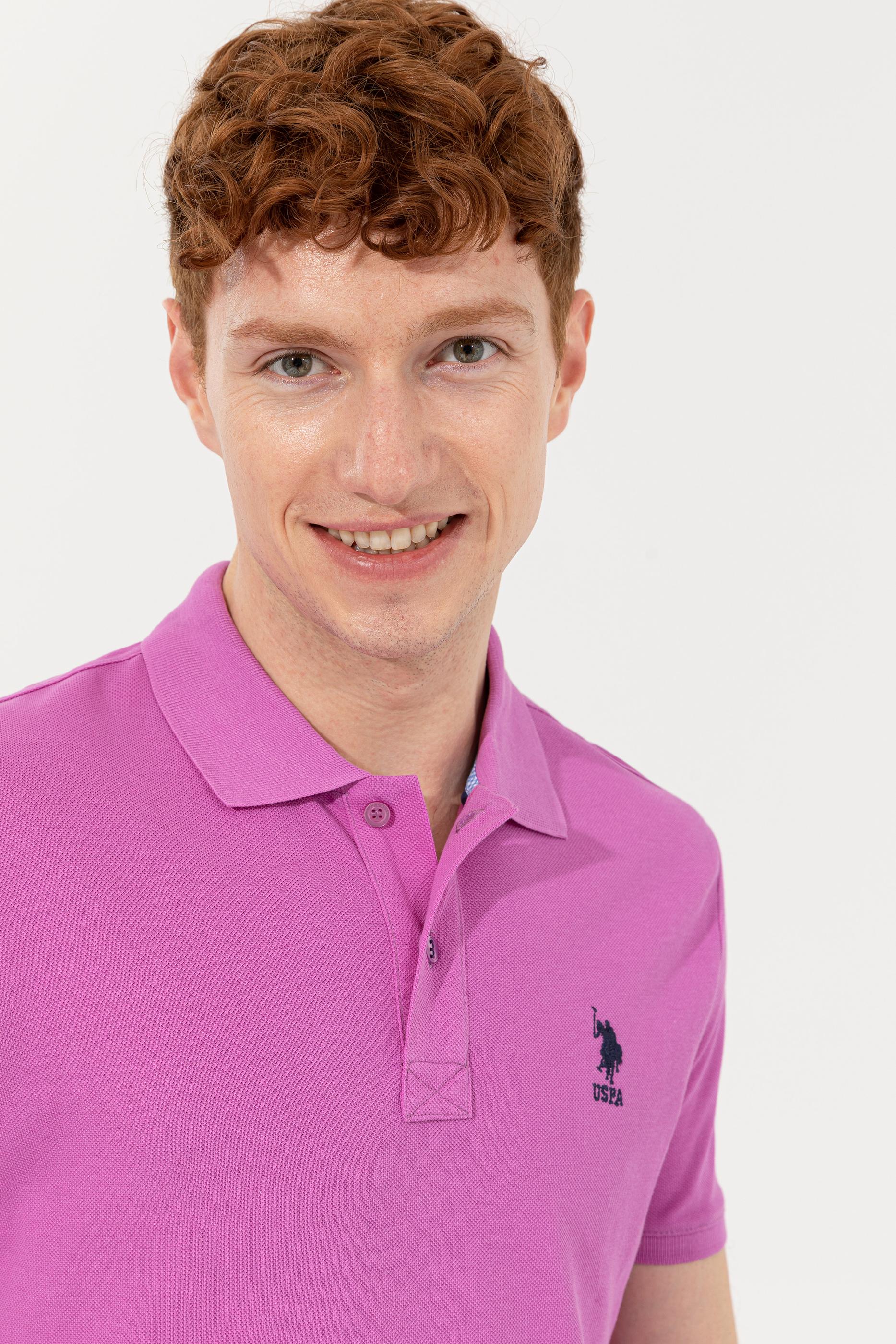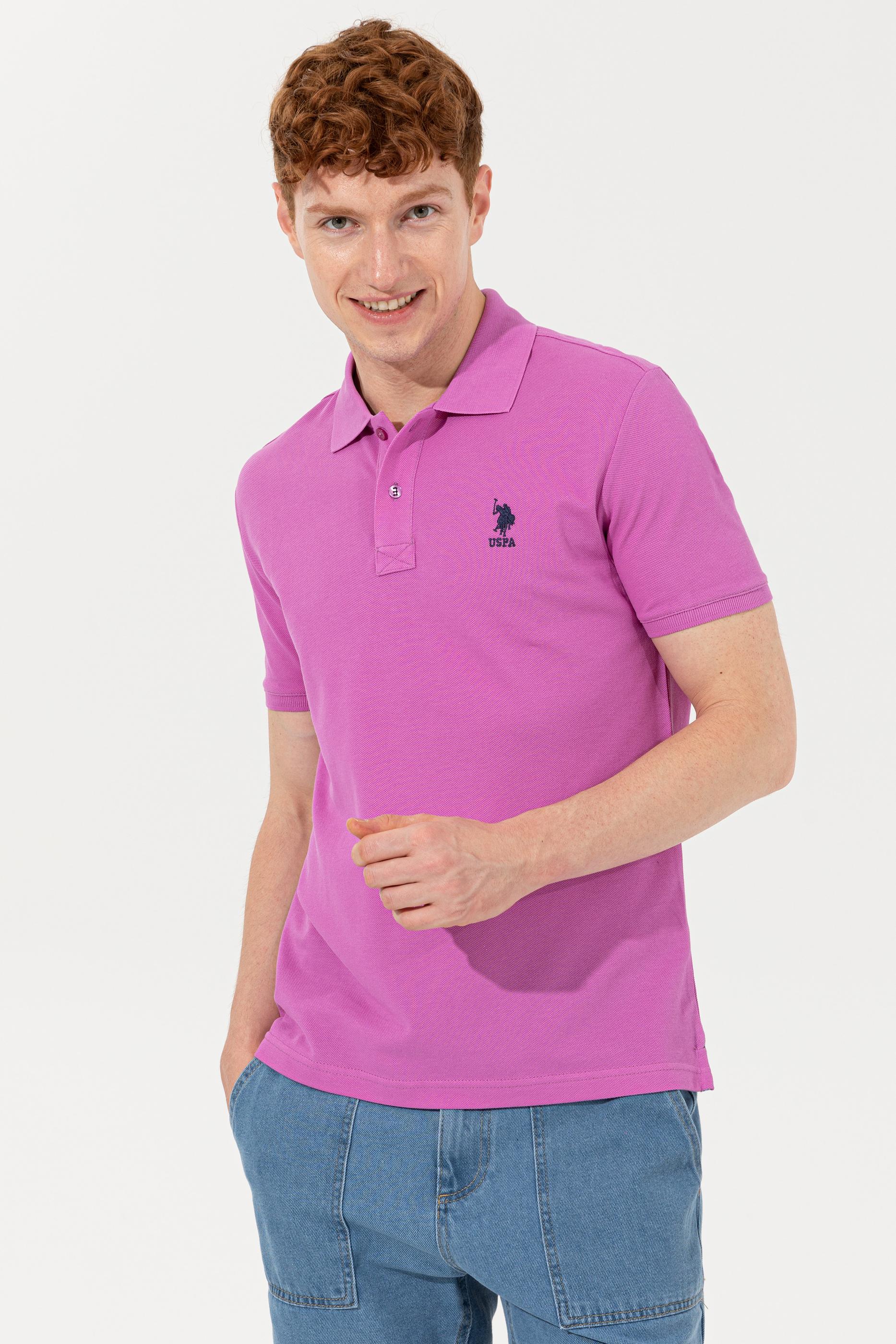 Erkek Menekşe Polo Yaka Basic T-Shirt