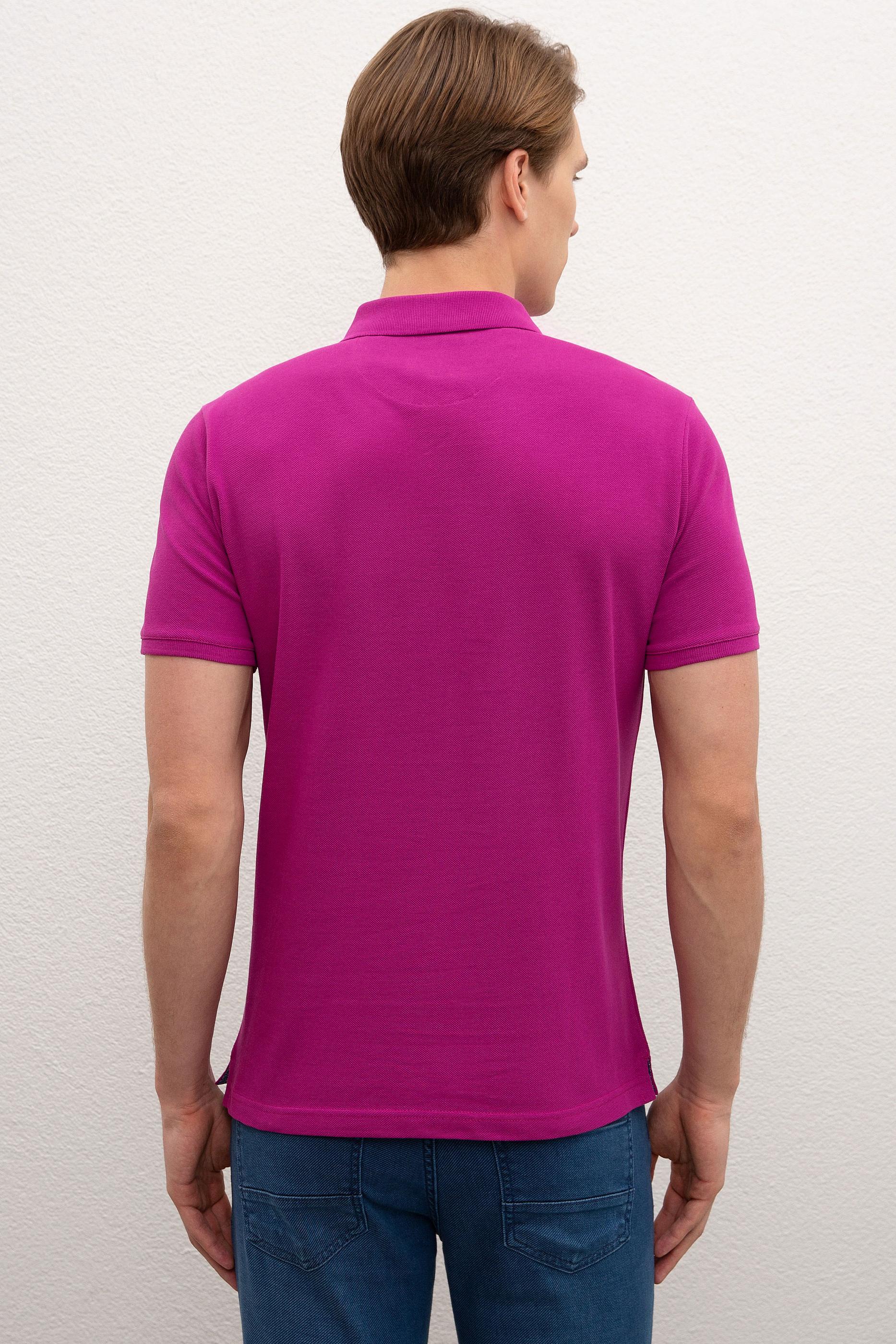 Erkek Menekşe Polo Yaka Basic T-Shirt
