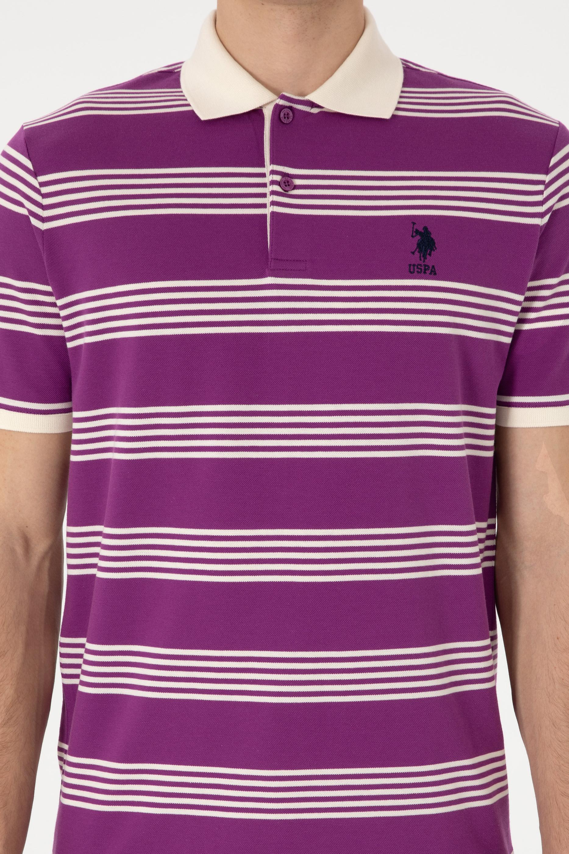 - Erkek Regular Fit Polo Yaka Menekşe Çizgili Tişört