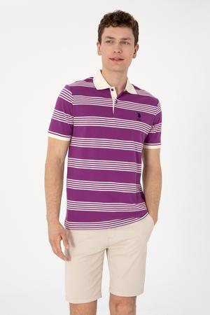 Erkek Regular Fit Polo Yaka Menekşe Çizgili Tişört