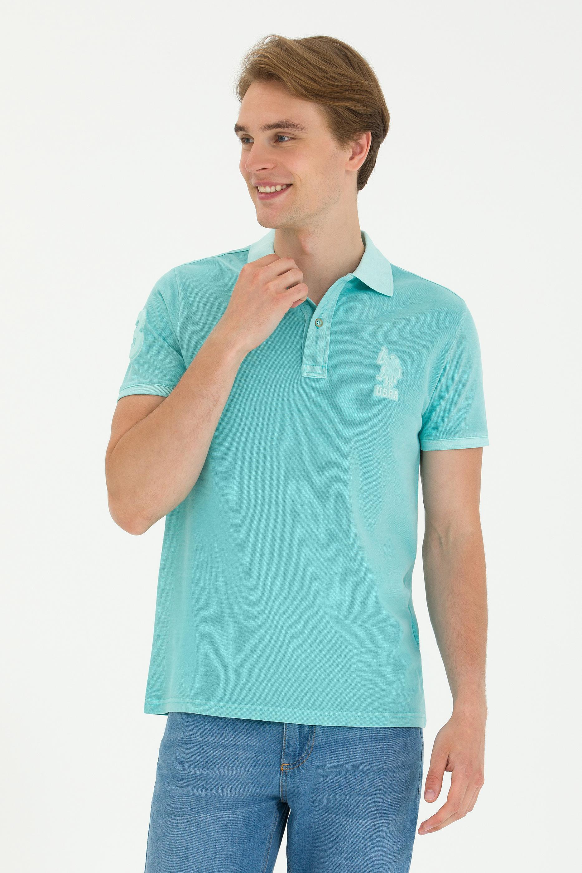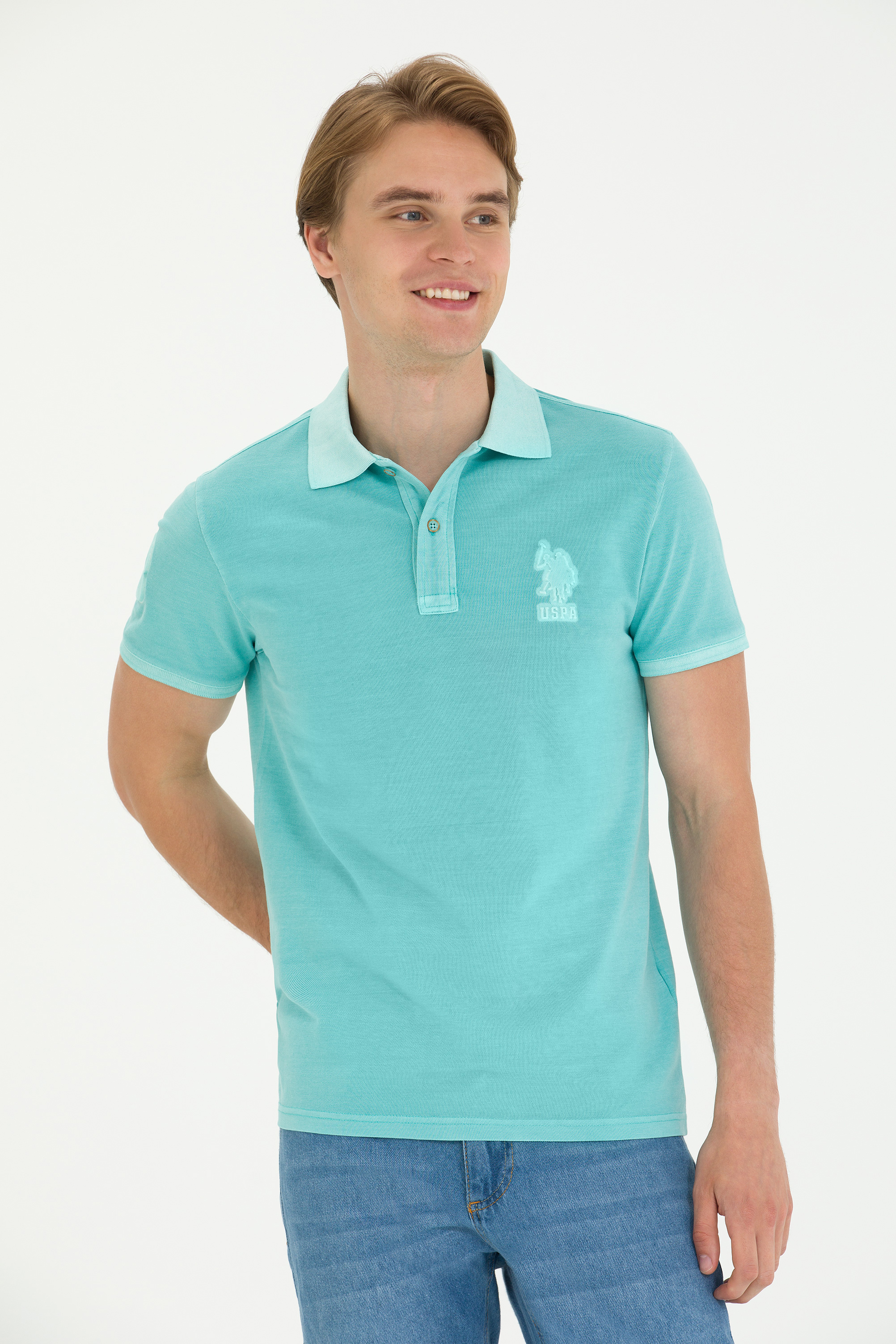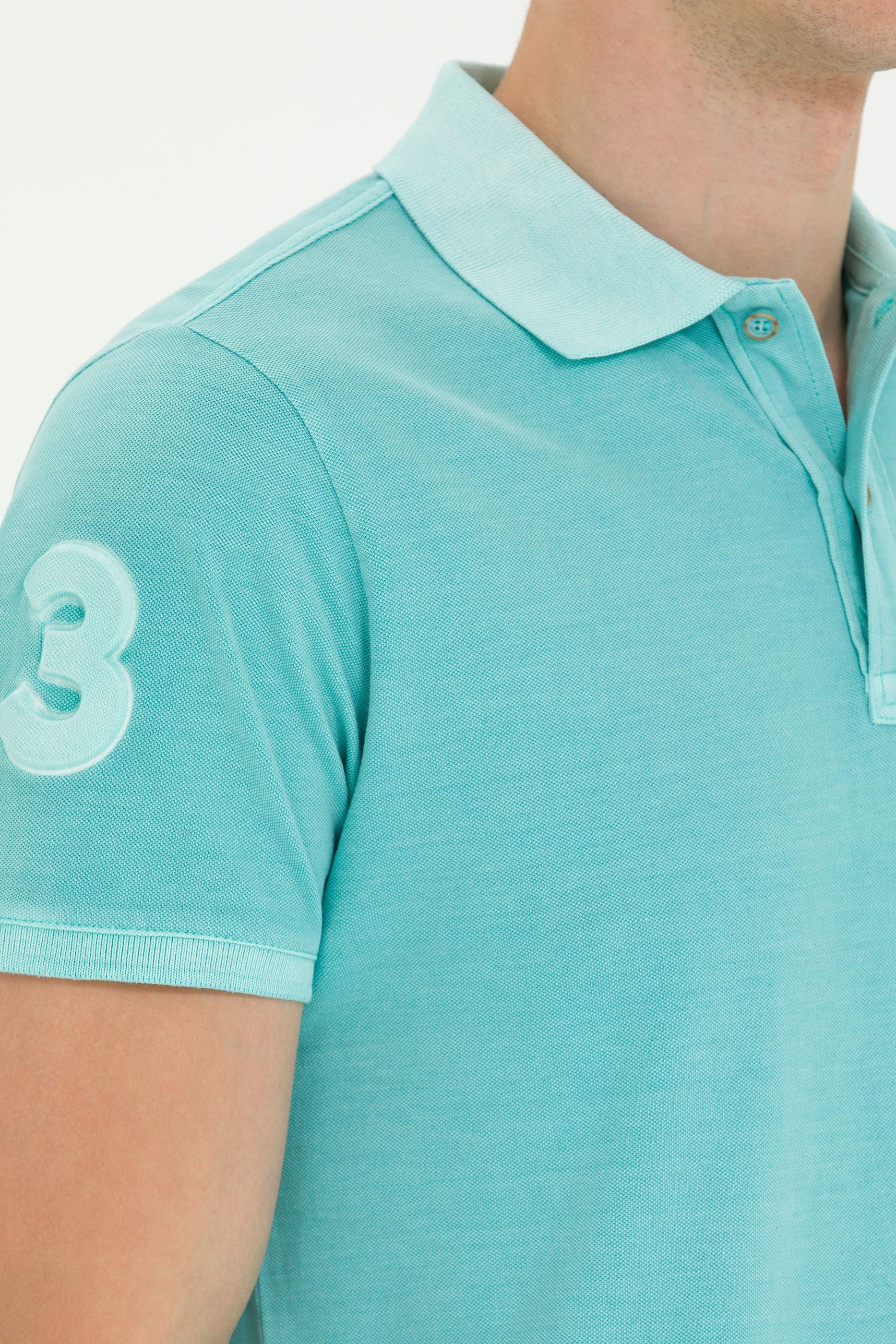 Erkek Slim Fit Polo Yaka Mint Basic Tişört