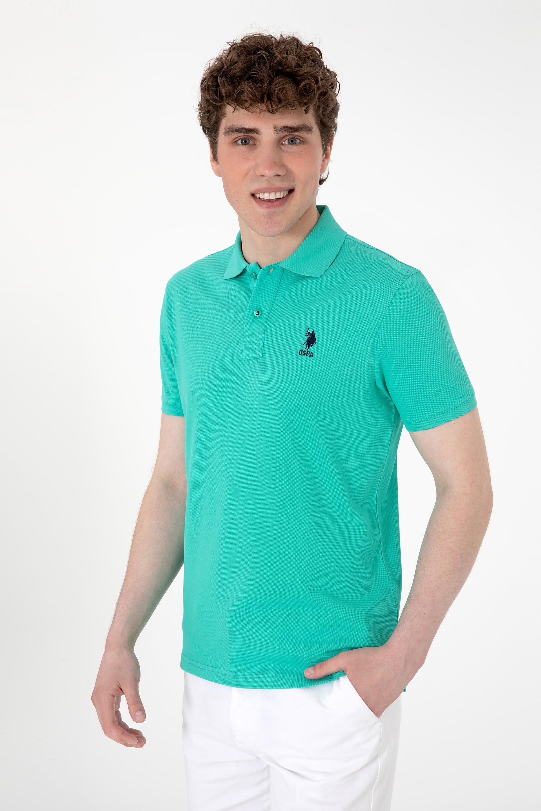 - Erkek Slim Fit Polo Yaka Mint Basic Tişört