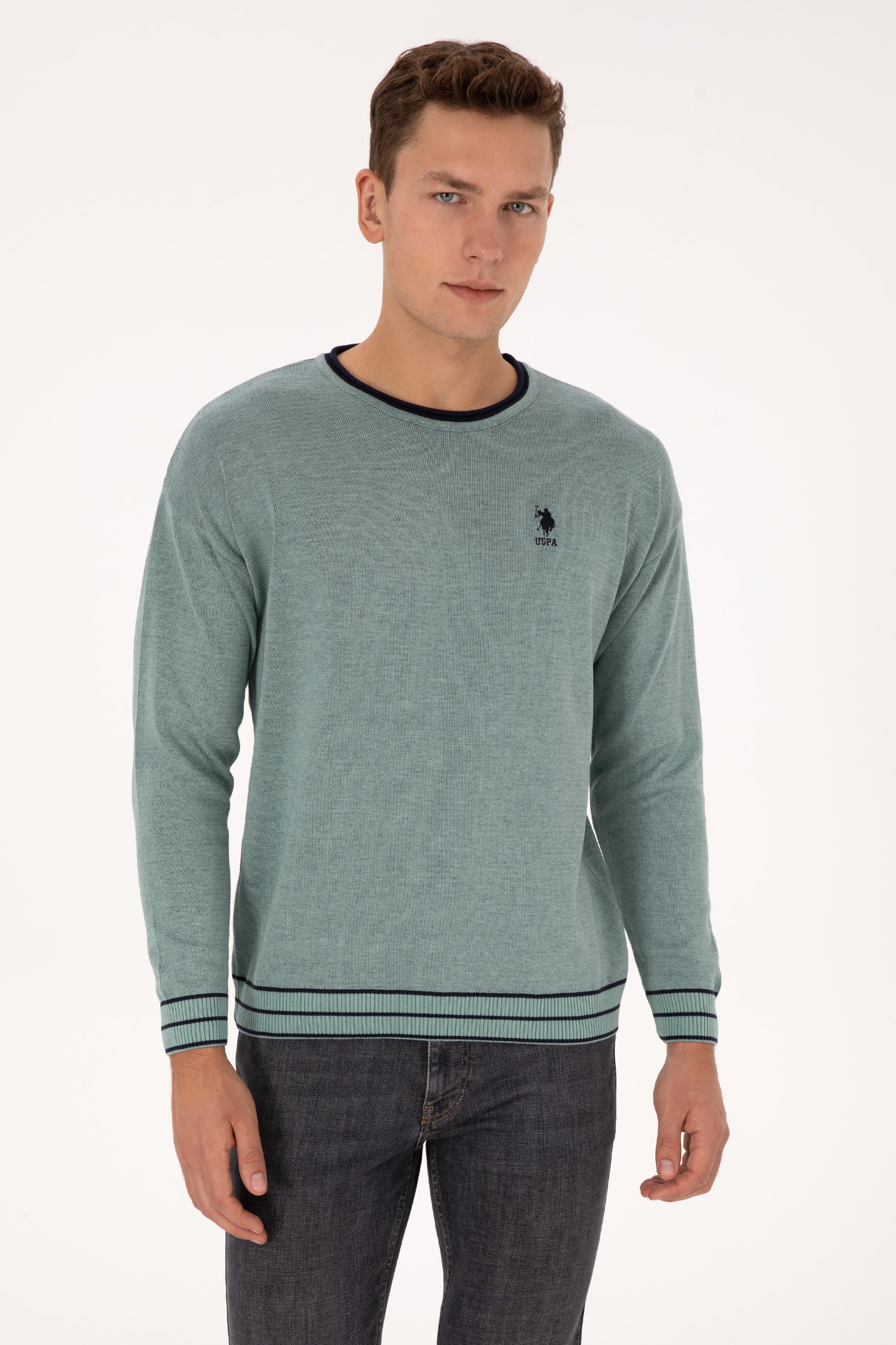 Erkek Comfort Fit Yaka Detaylı Mint Kazak