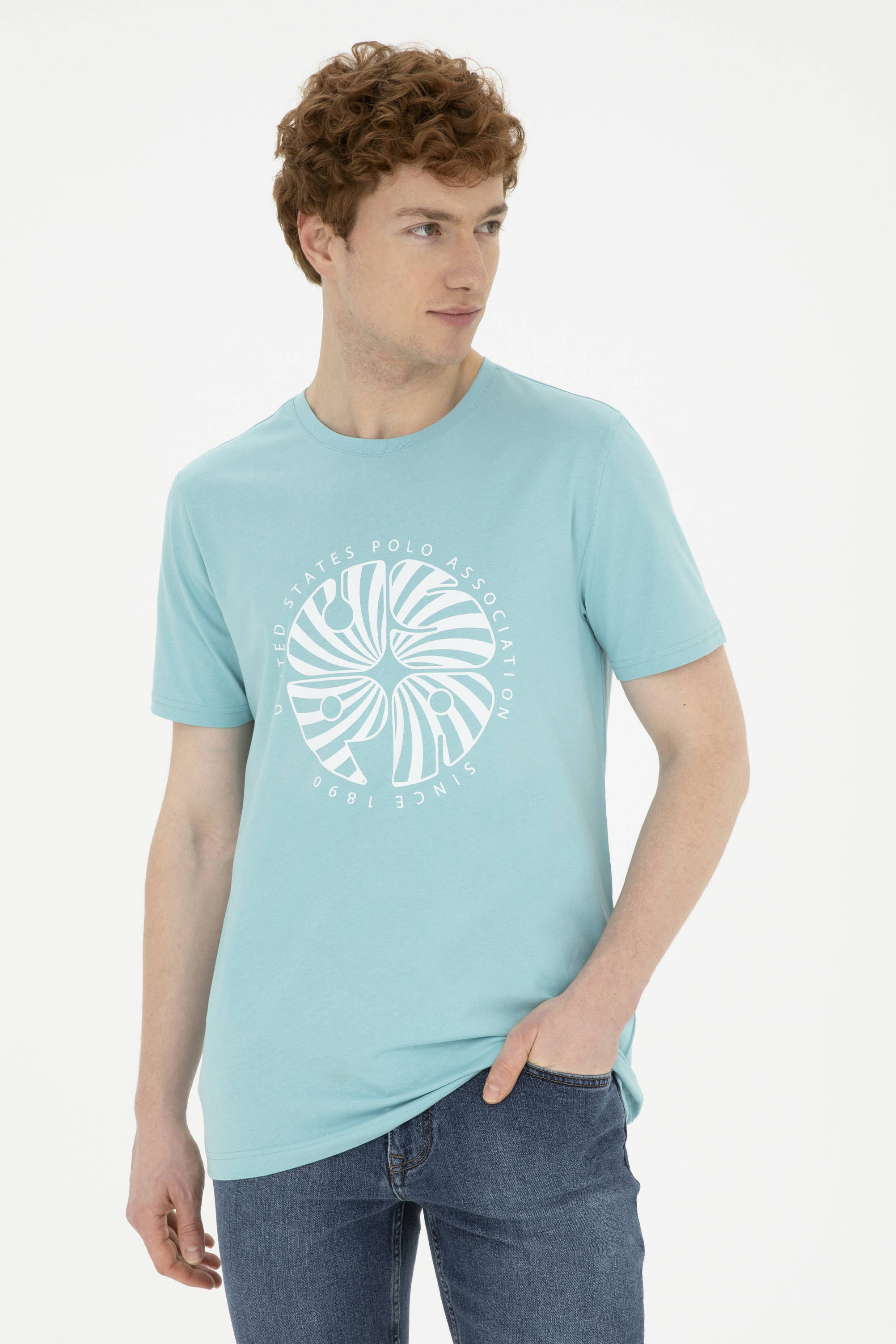 Erkek Regular Fit Bisiklet Yaka Mint Tişört