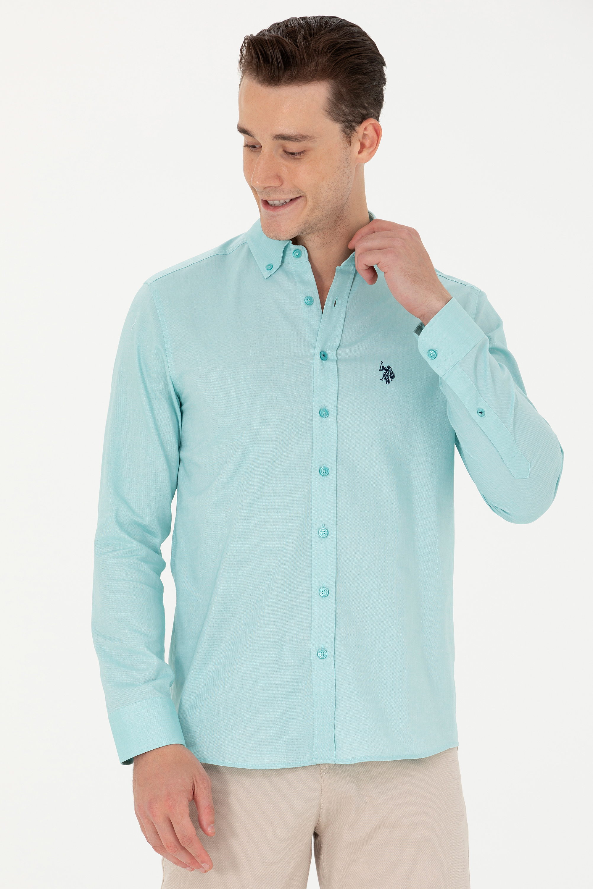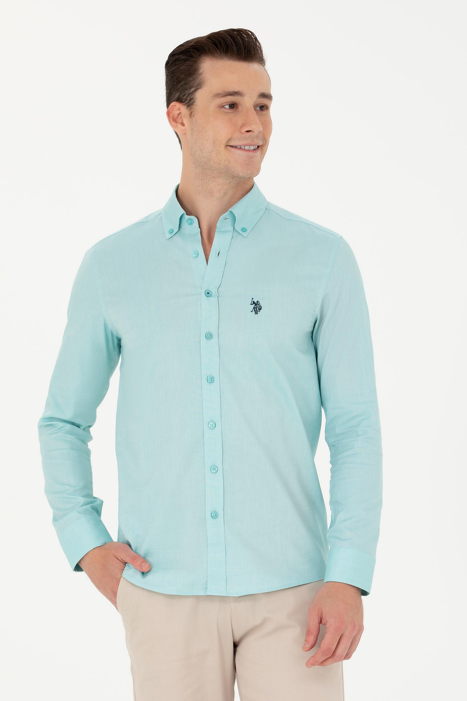 - Erkek Mint Uzun Kollu Basic Gömlek