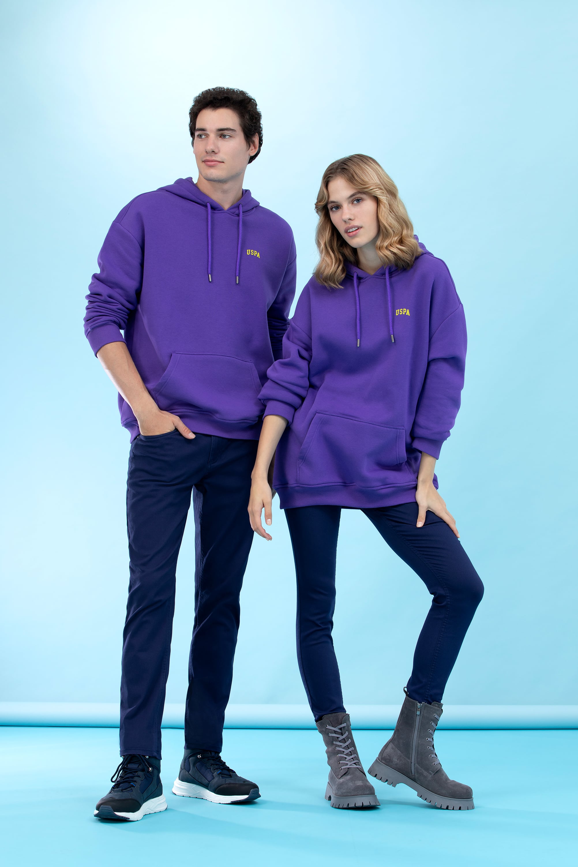 - Mor Kapüşonlu Oversize Basic Sweatshirt