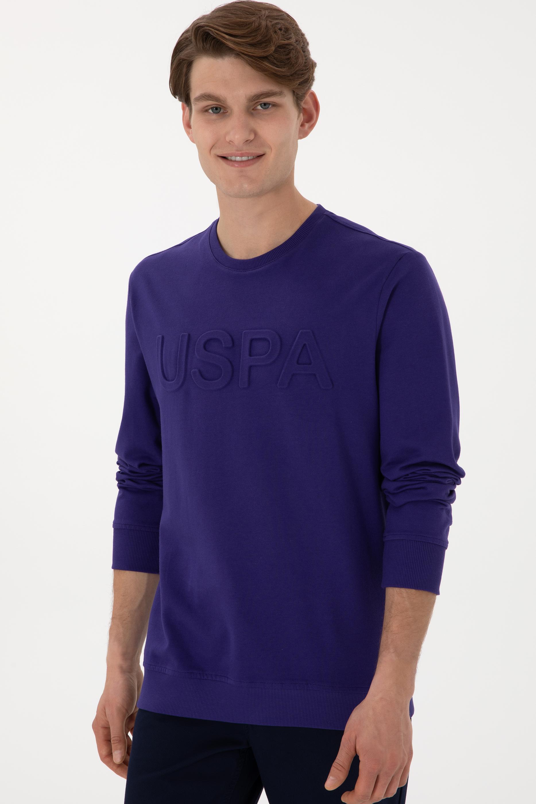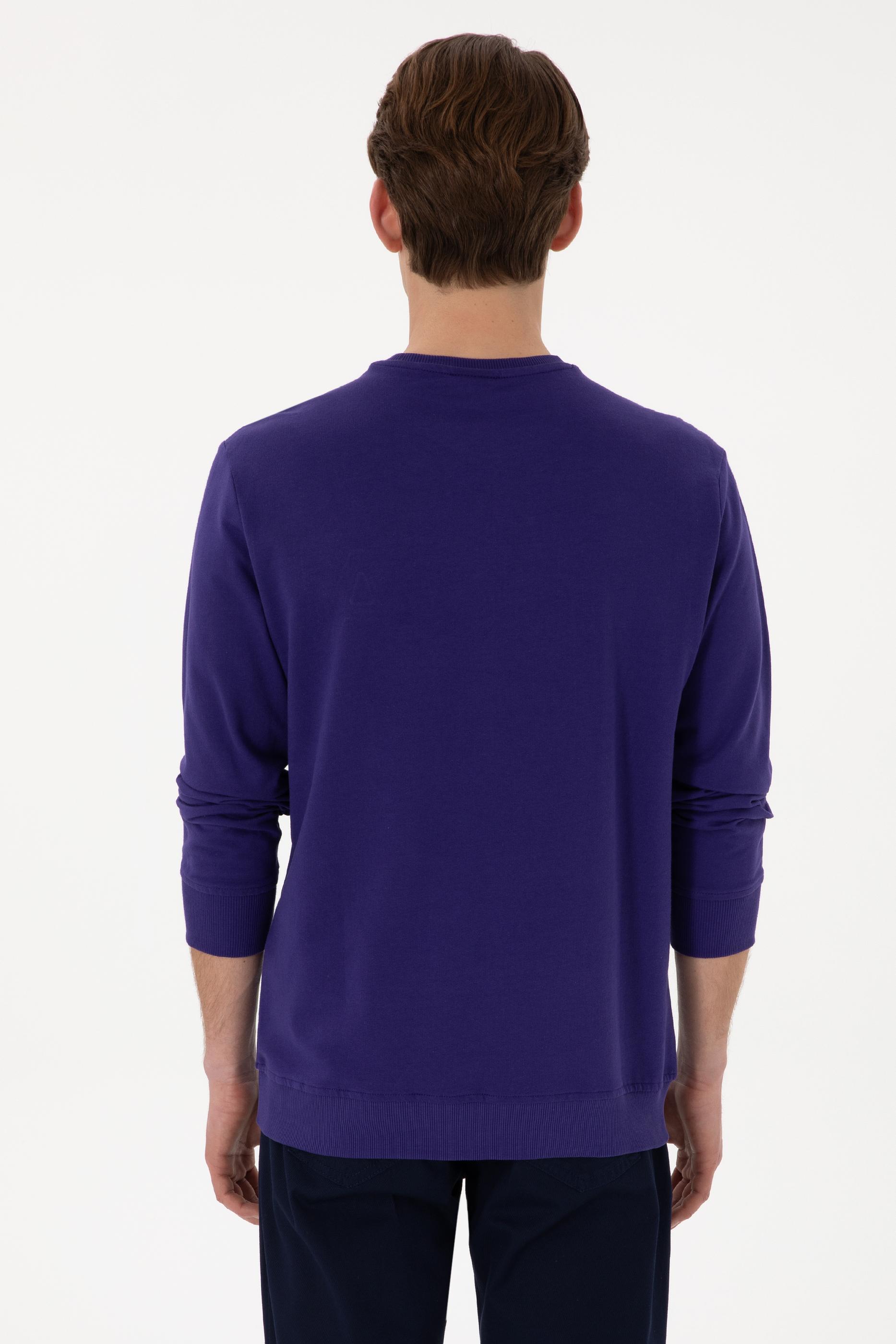 - Erkek Regular Fit Bisiklet Yaka Mor Basic Sweatshirt