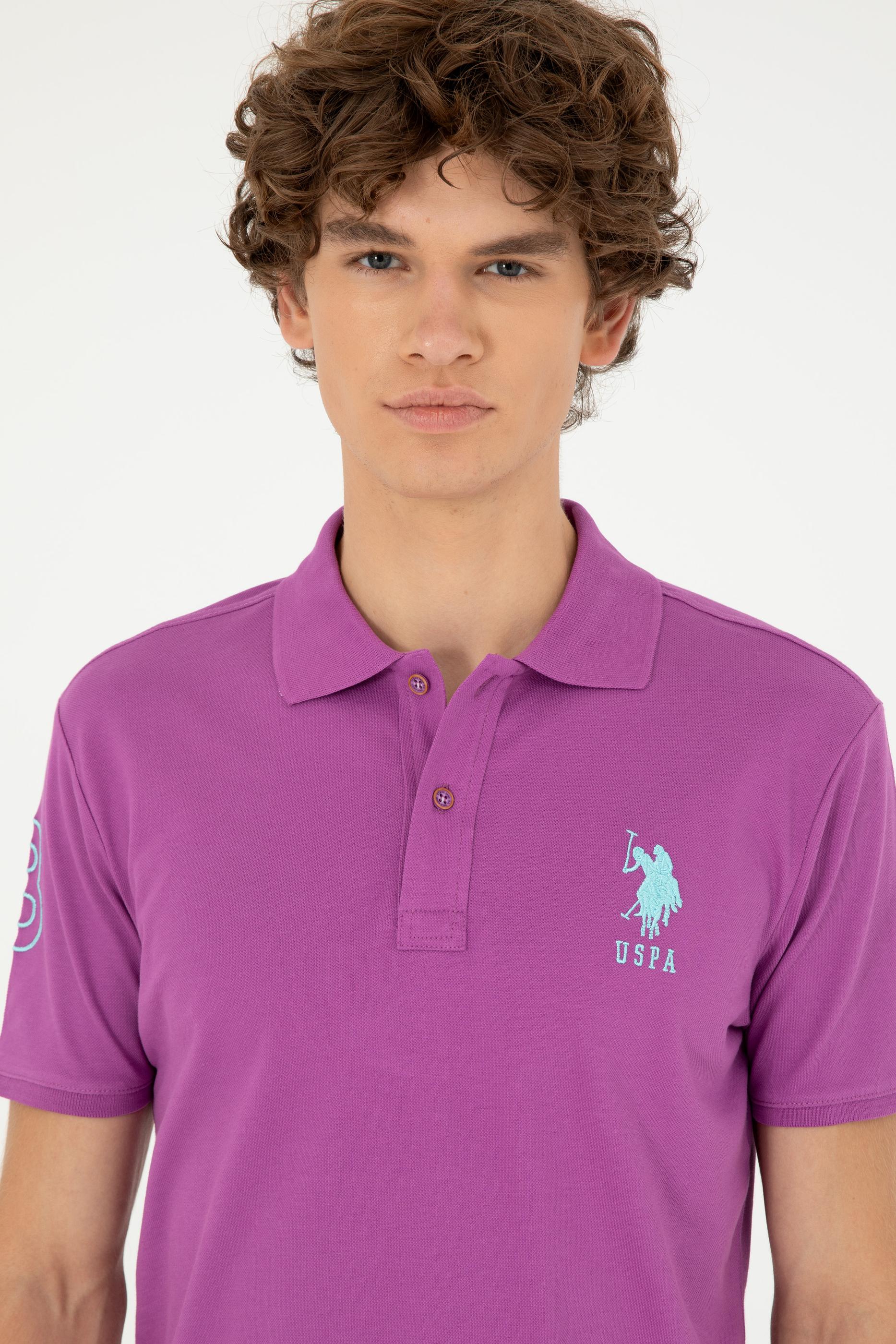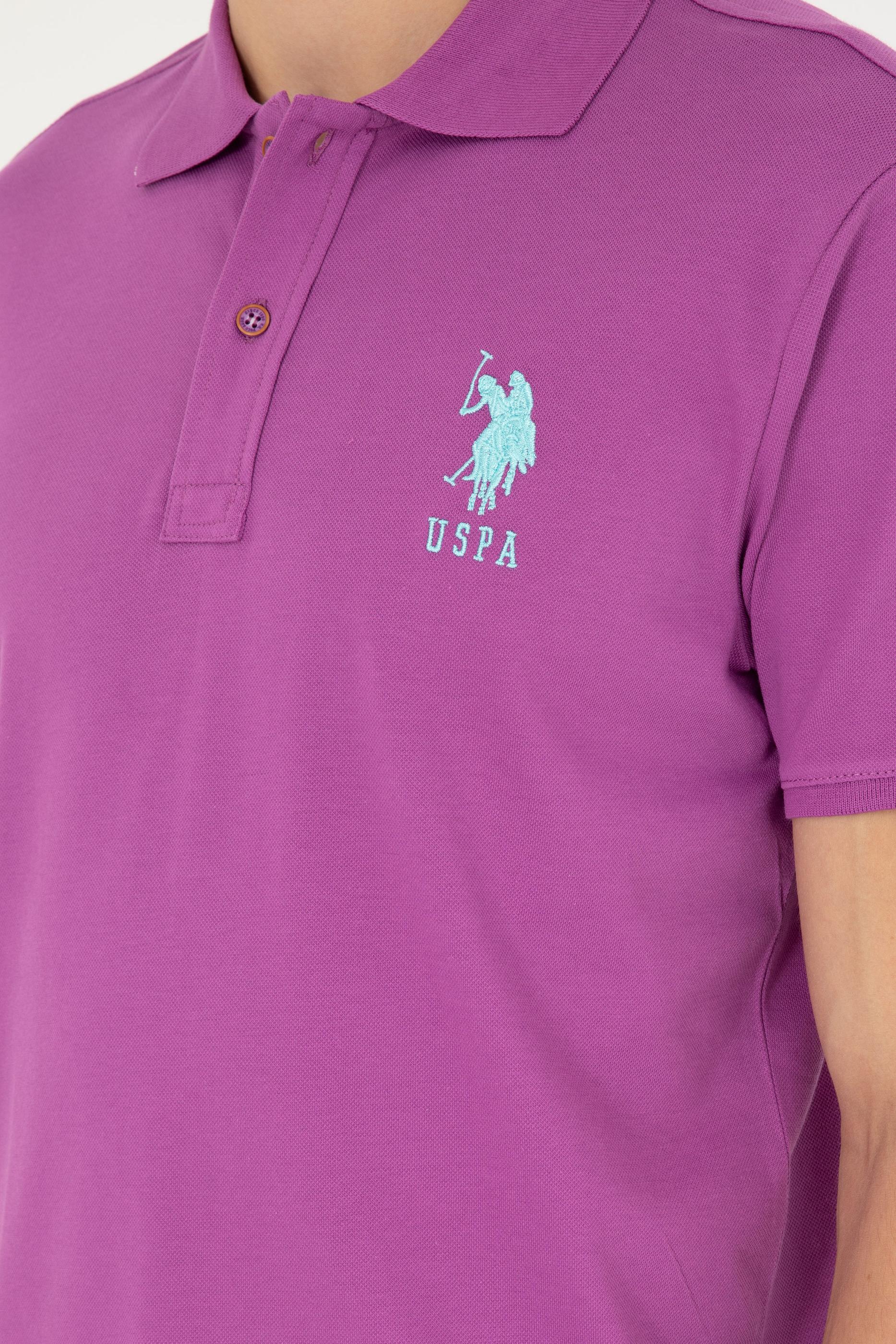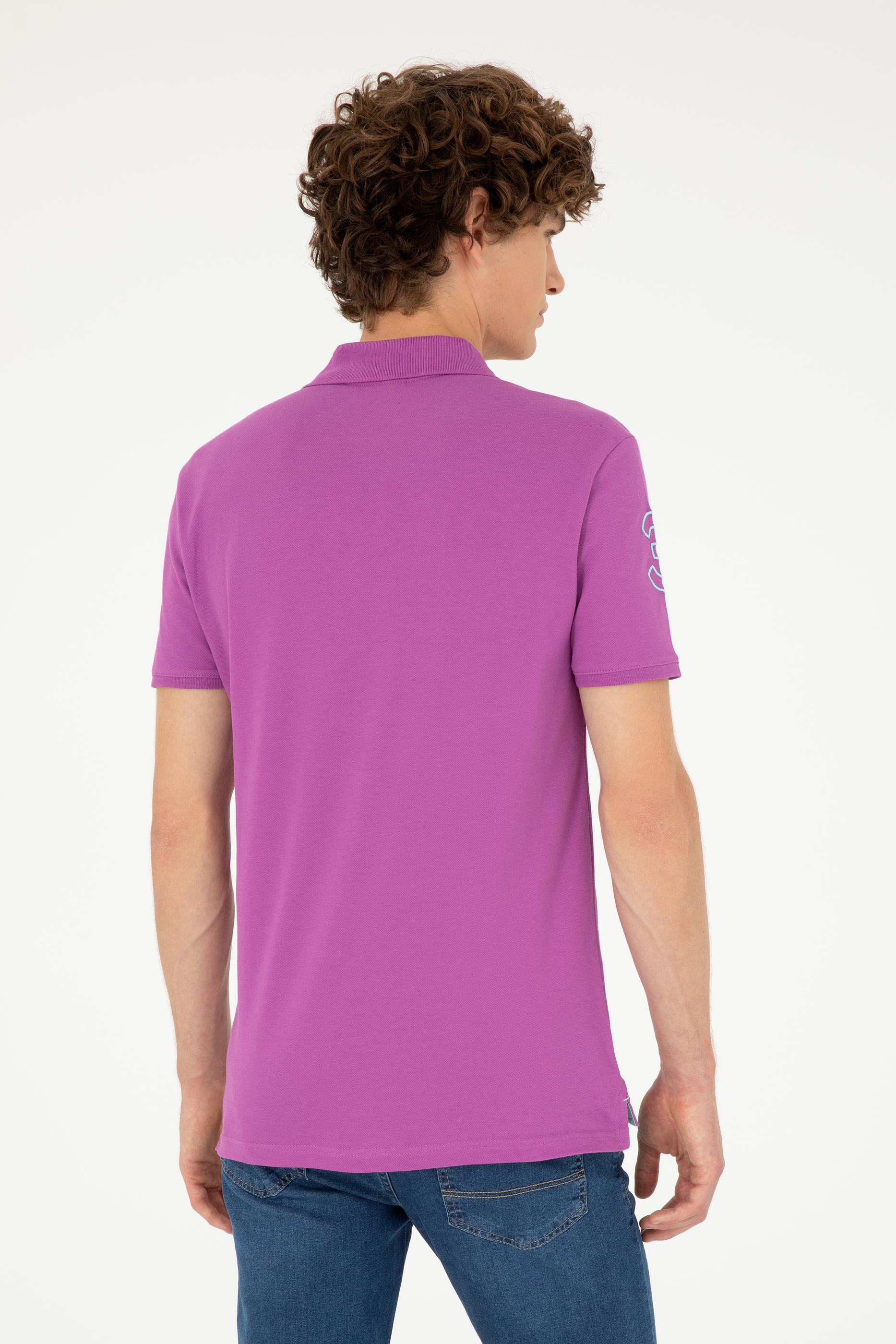 - Erkek Slim Fit Polo Yaka Mor Basic Tişört