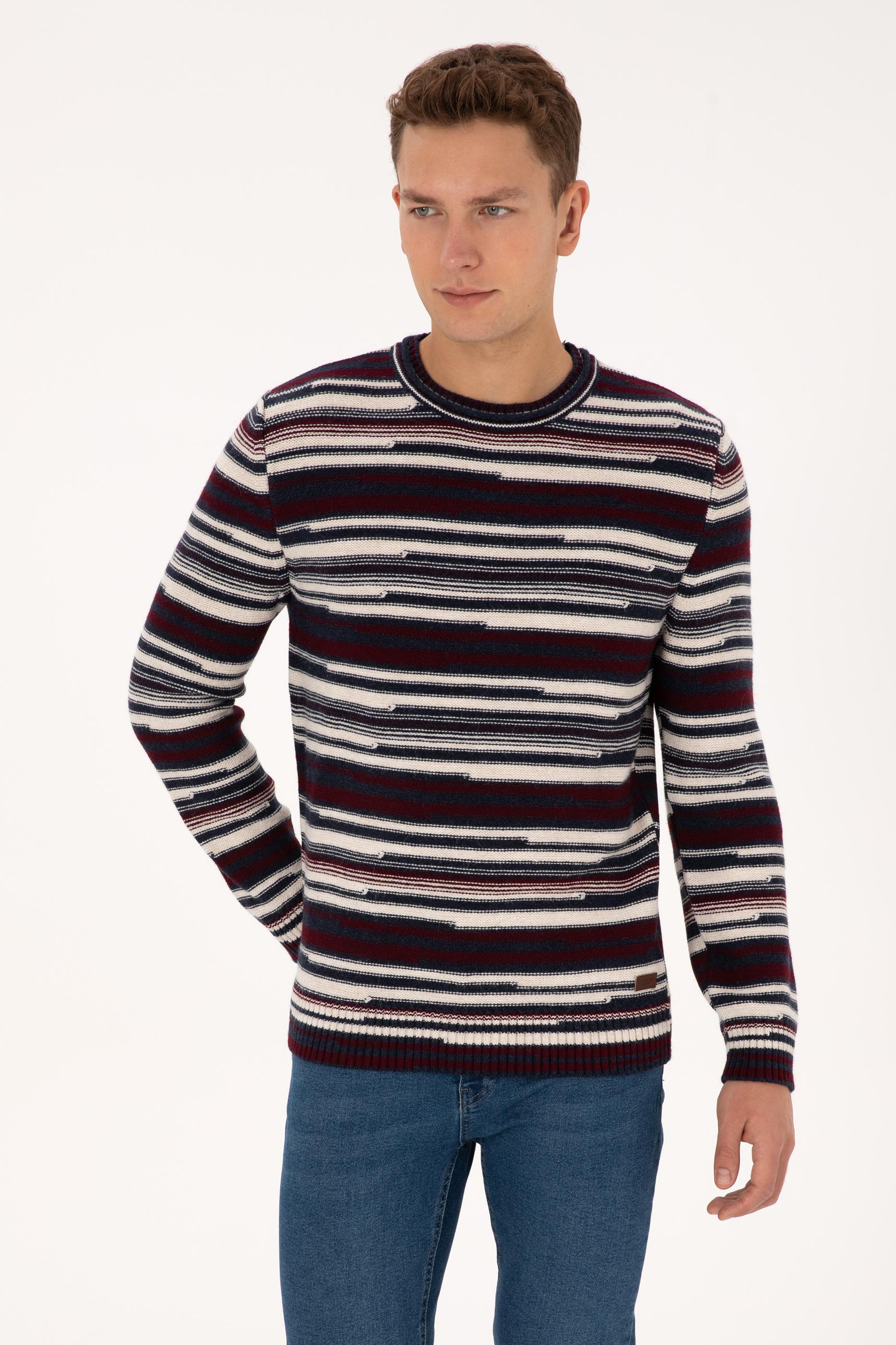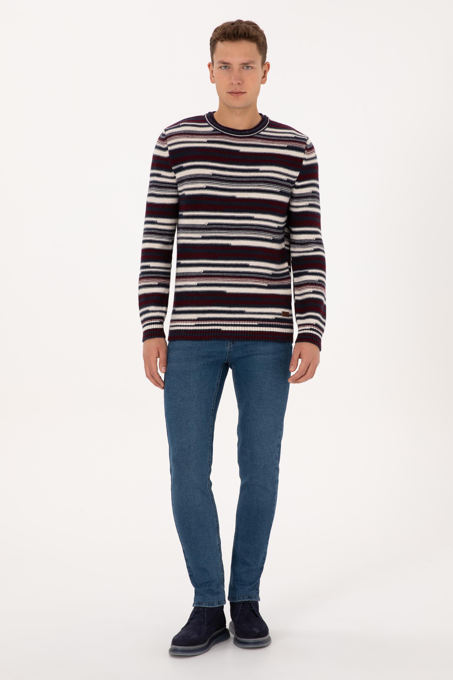 Erkek Comfort Fit Bisiklet Yaka Mürdüm Kazak