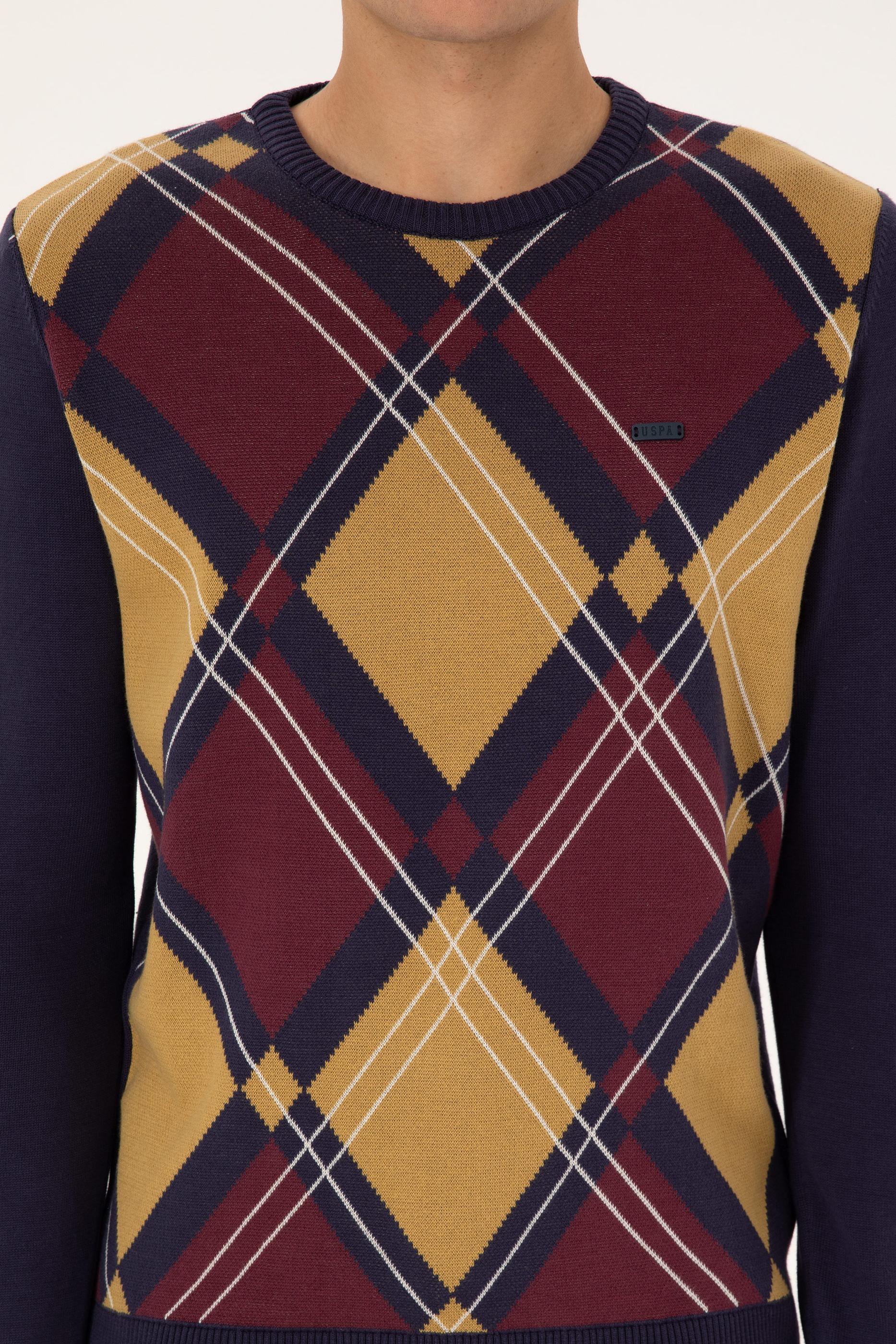 - Erkek Regular Fit Bisiklet Yaka Mürdüm Kazak