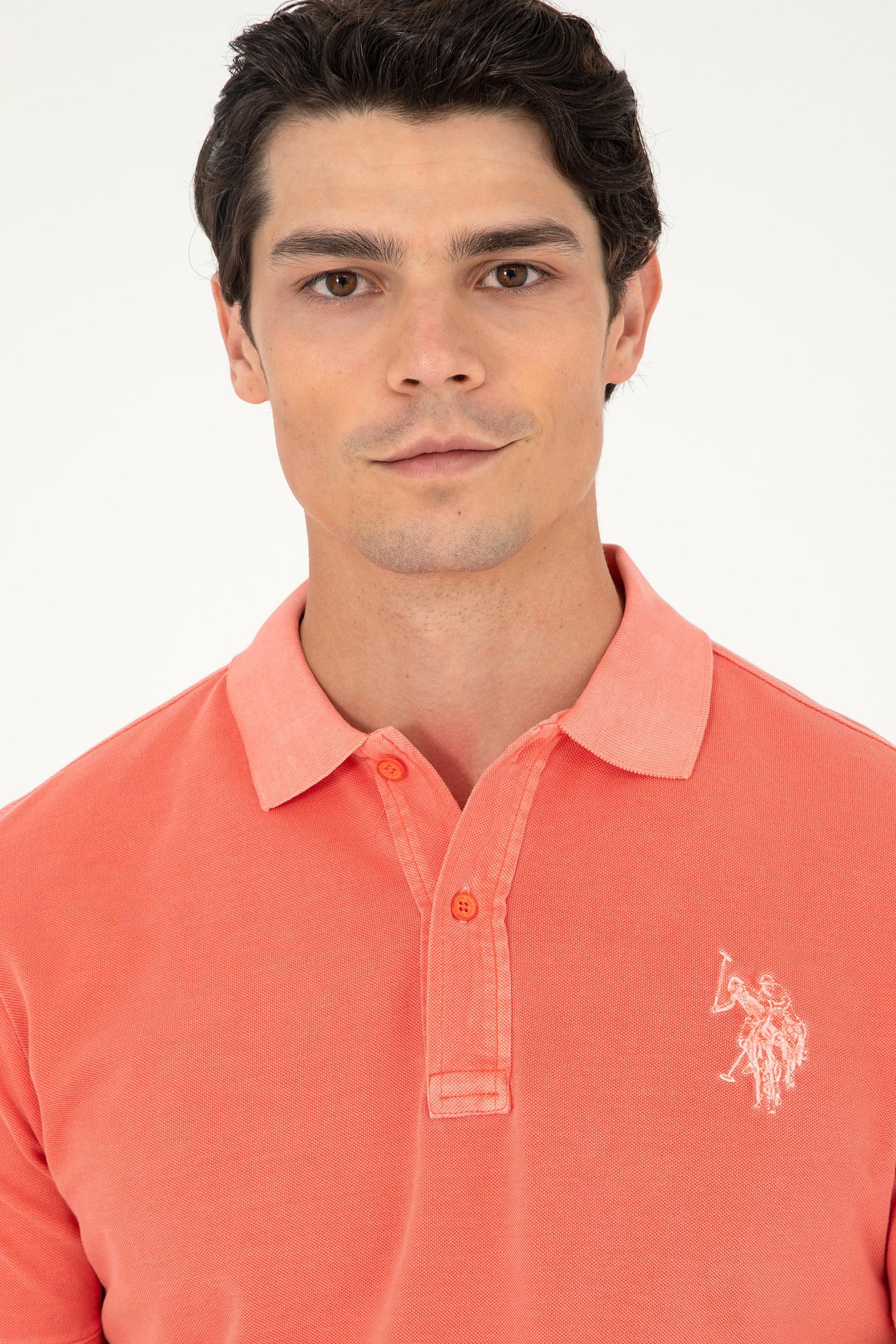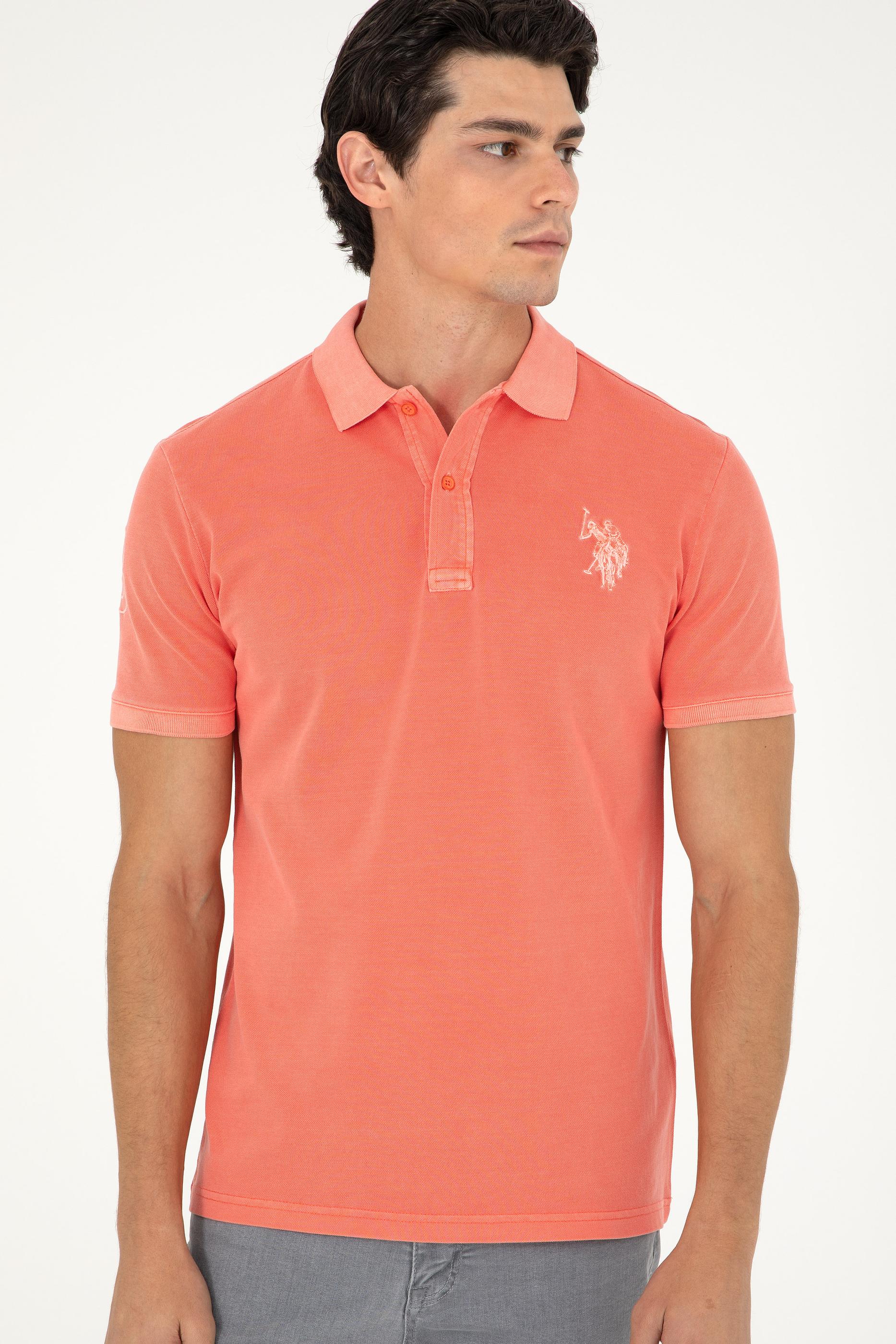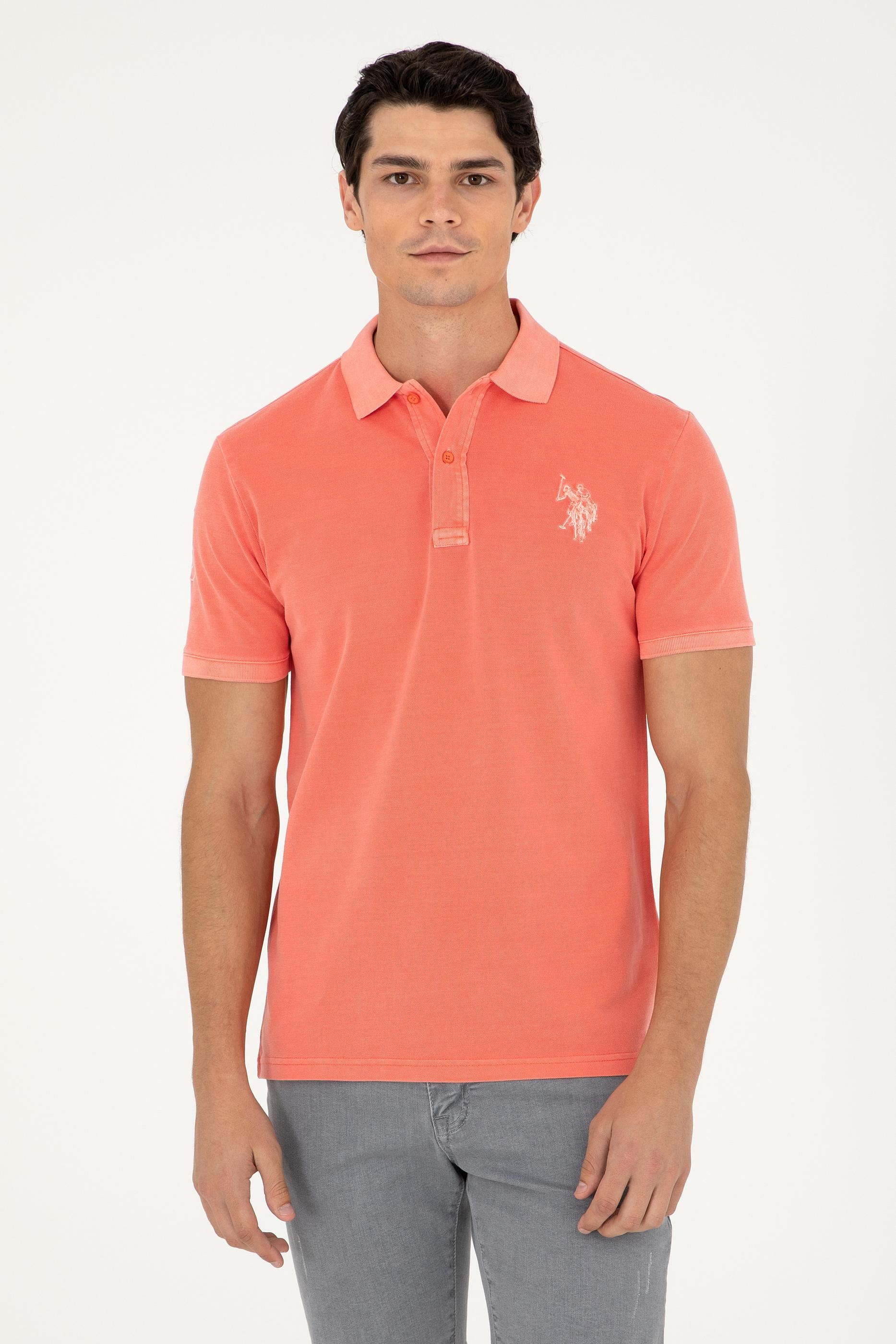 Erkek Slim Fit Polo Yaka Nar Çiçeği Basic Tişört