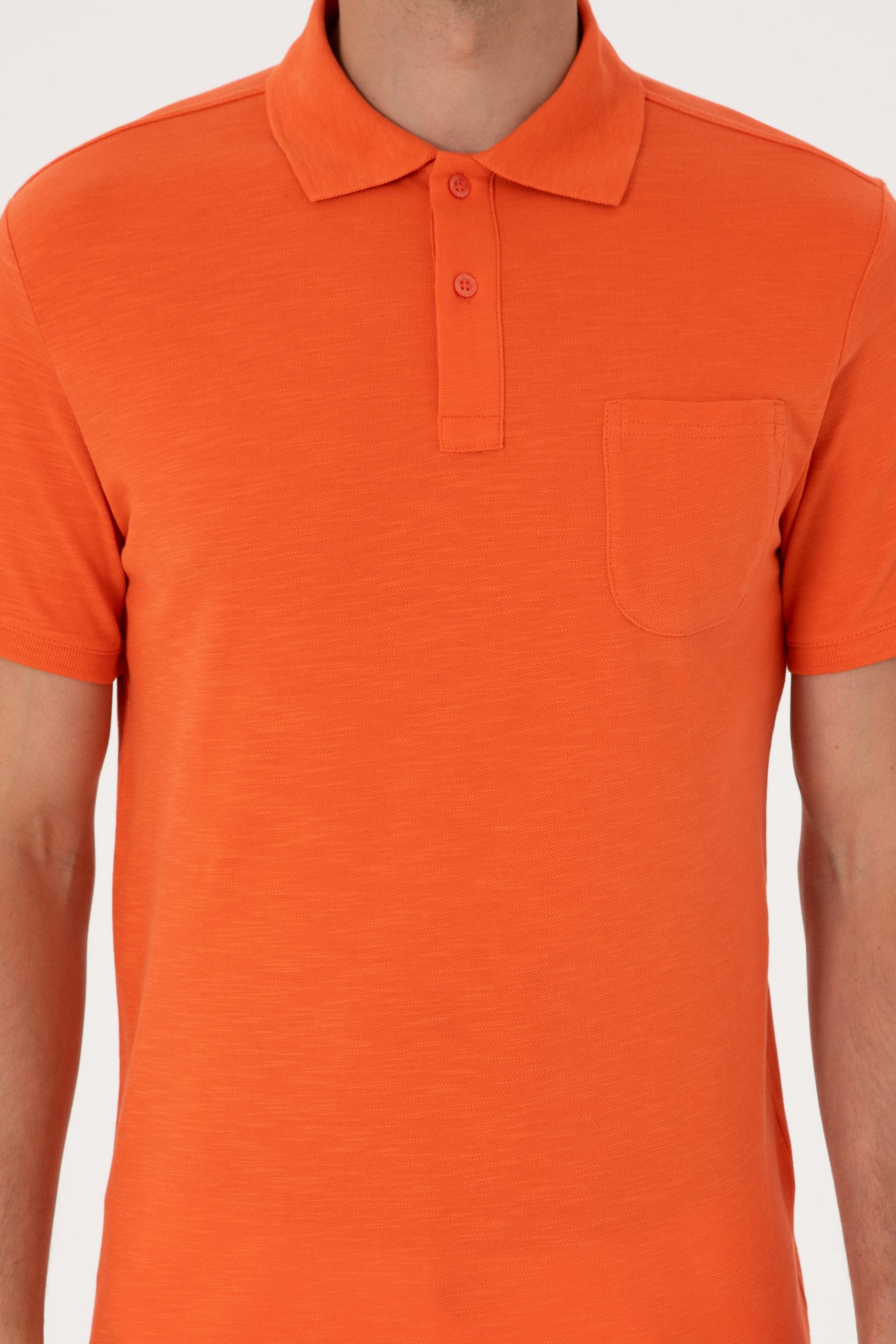 Erkek Slim Fit Polo Yaka Nar Çiçeği Tişört