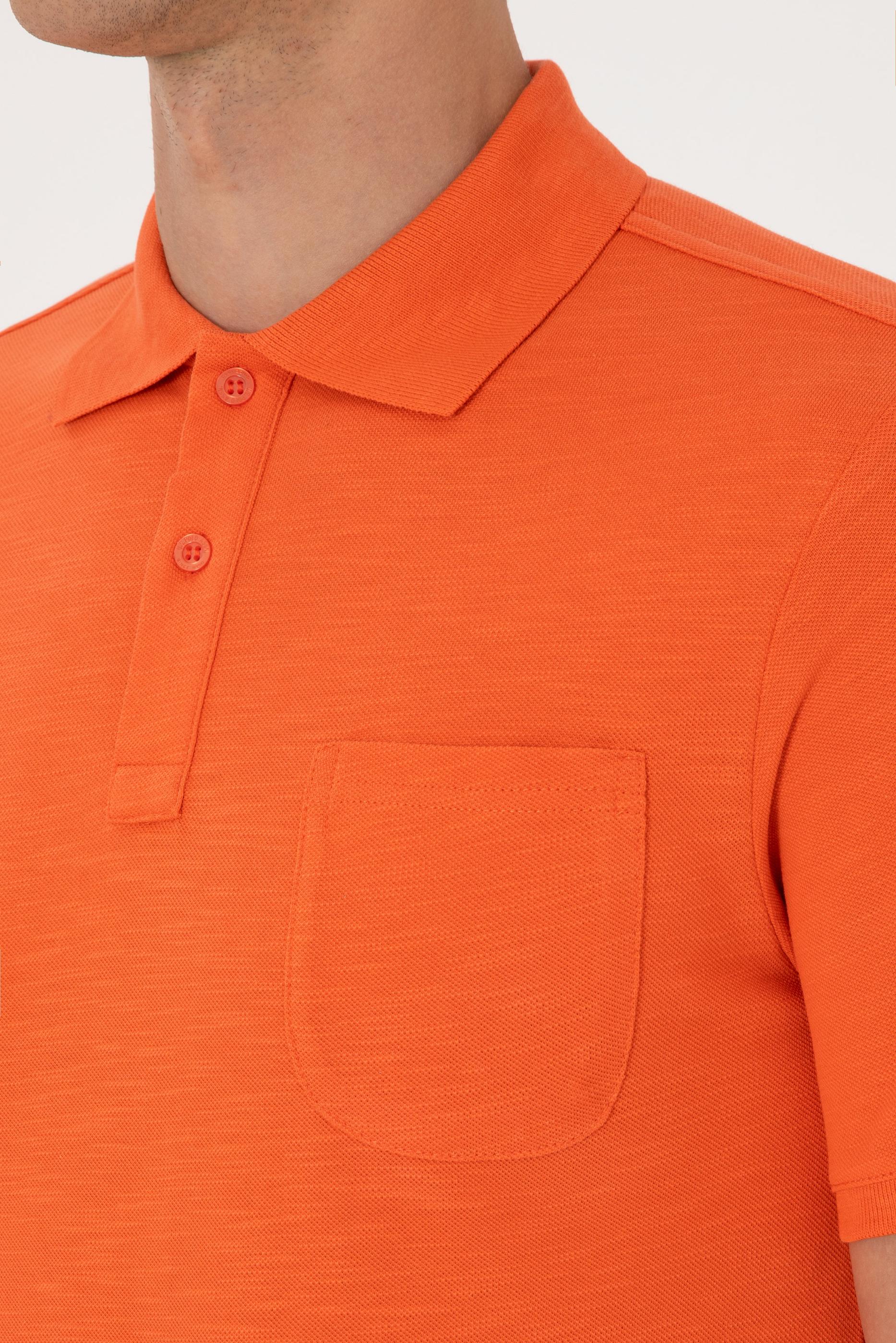 - Erkek Slim Fit Polo Yaka Nar Çiçeği Tişört