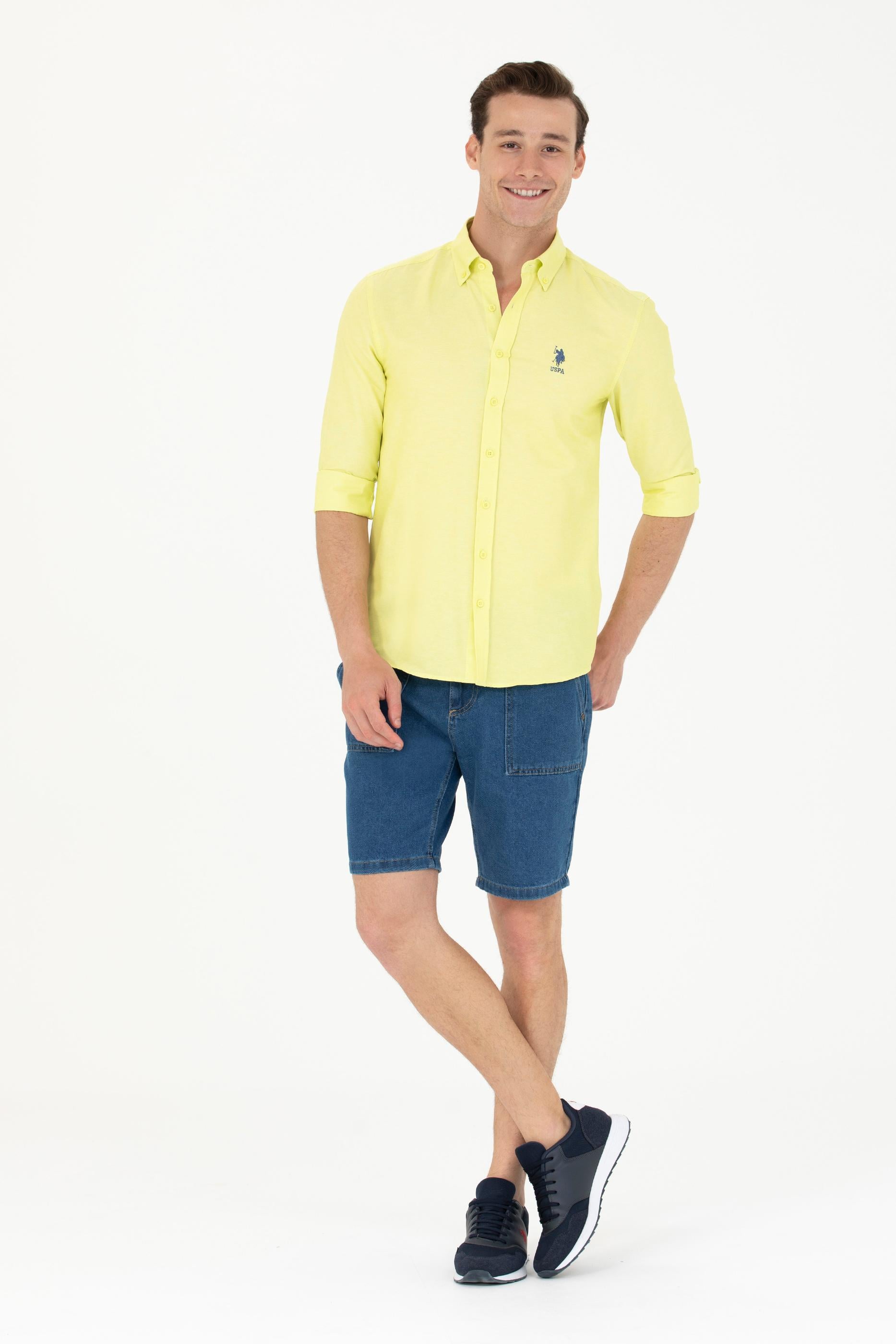 Erkek Neon Sarı Uzun Kollu Basic Gömlek