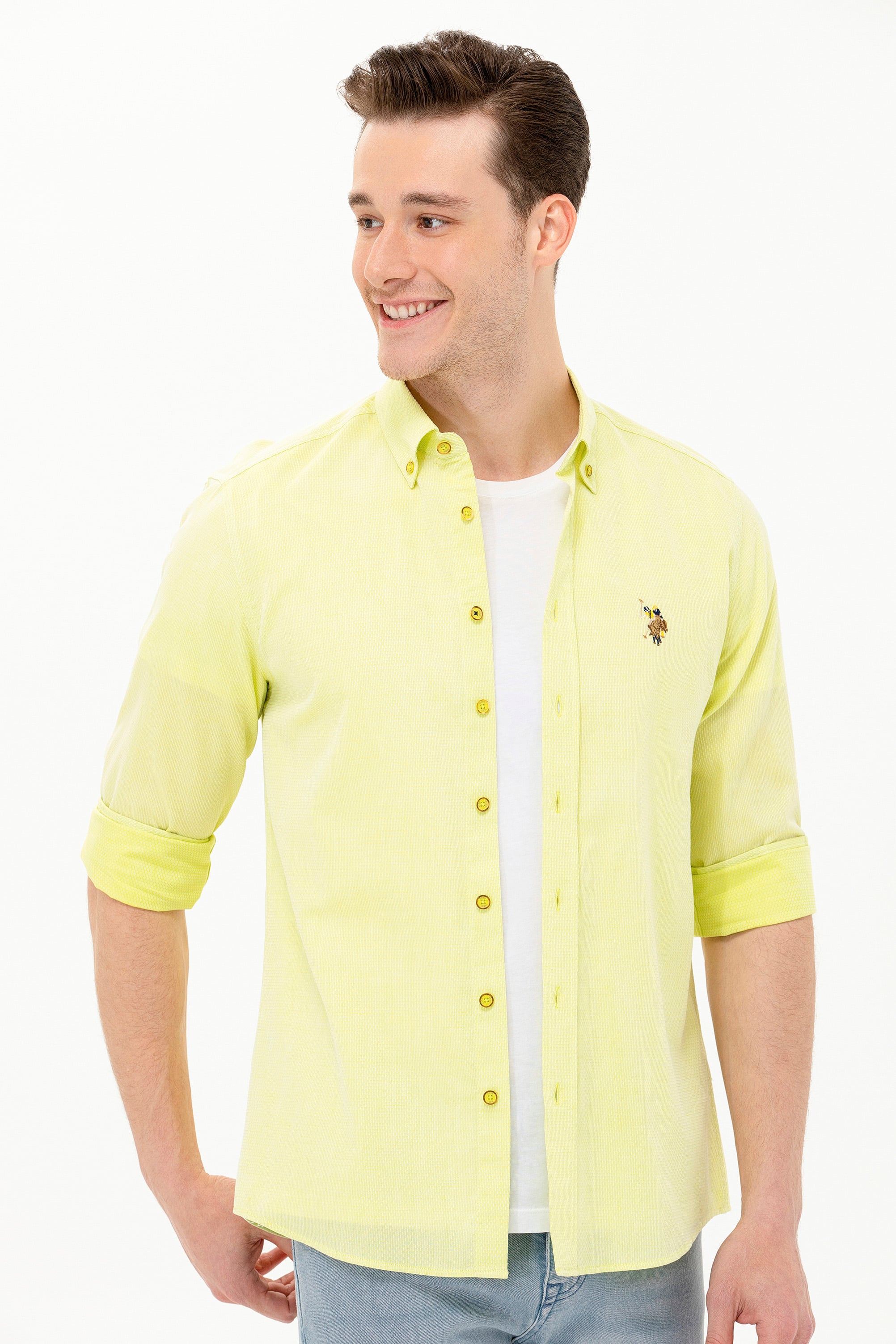 Erkek Neon Sarı Uzun Kollu Basic Gömlek