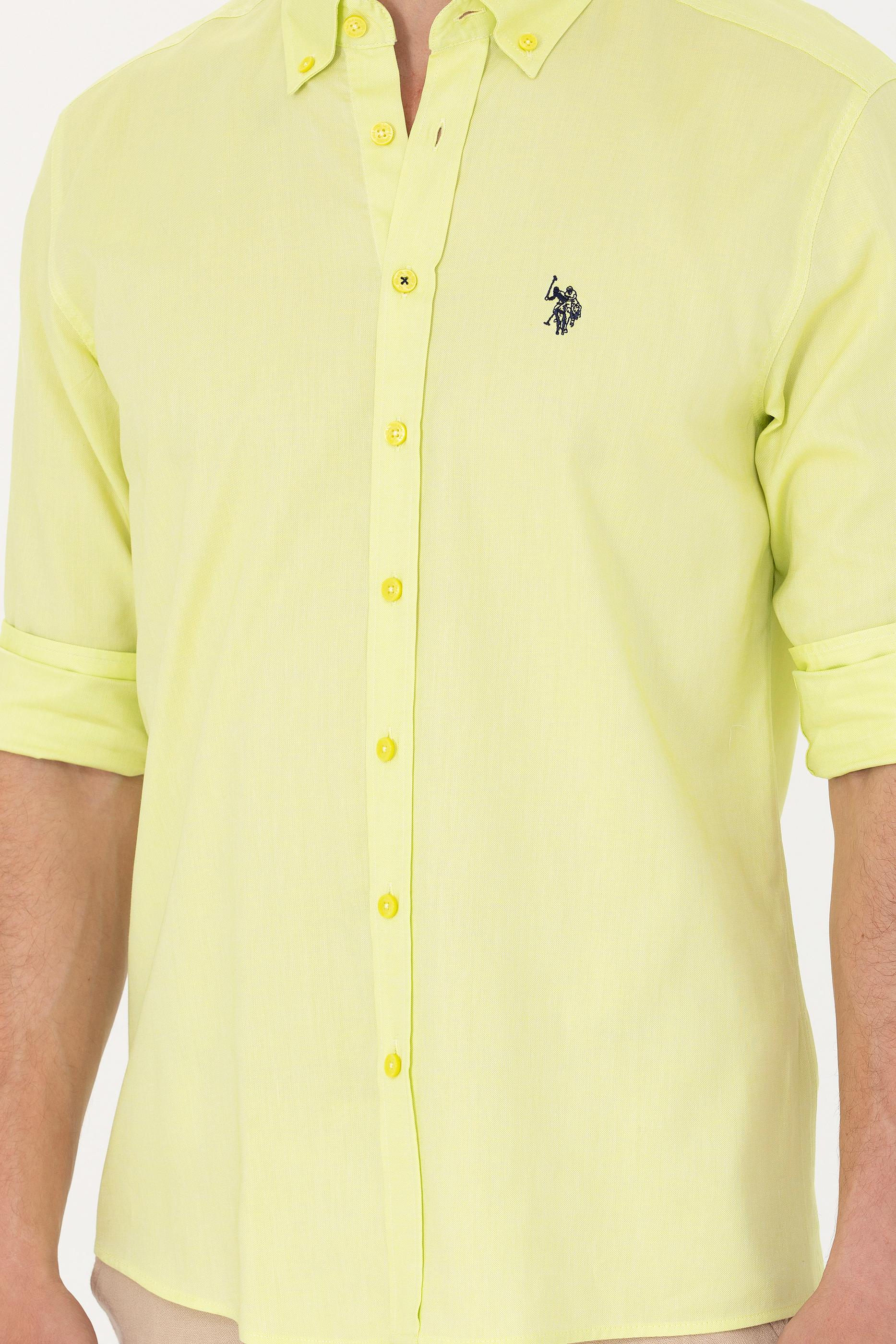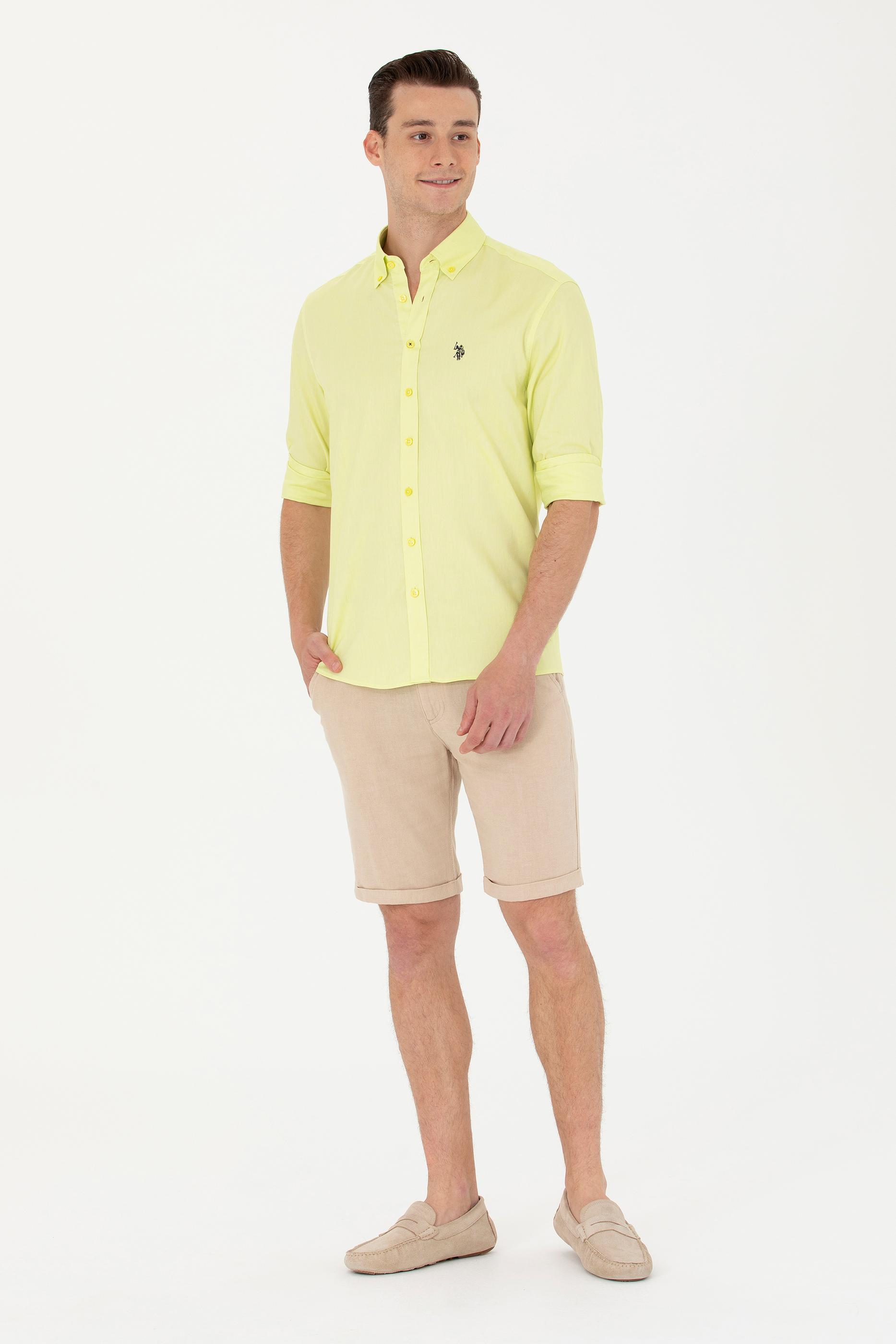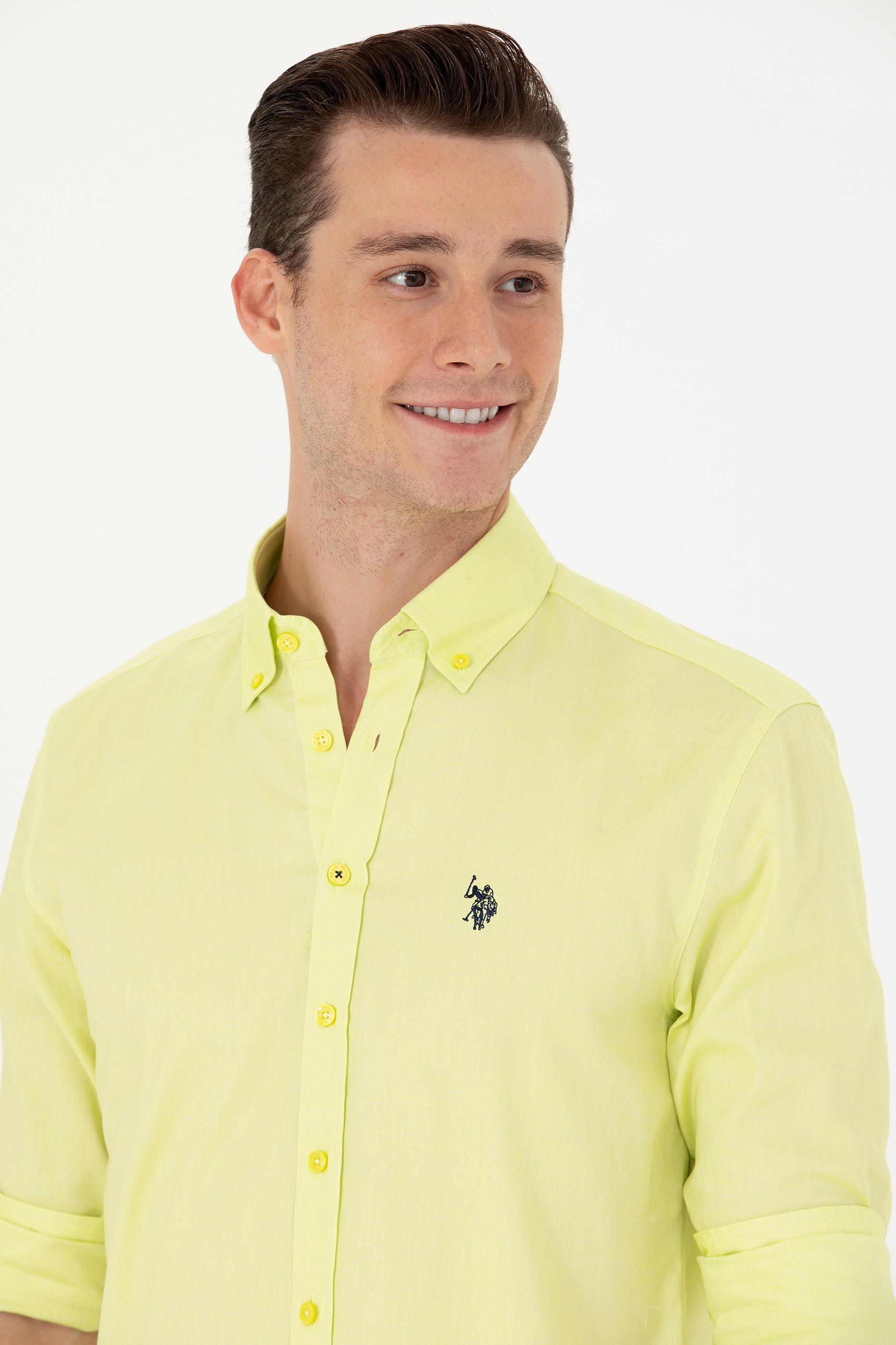 Erkek Neon Sarı Uzun Kollu Basic Gömlek