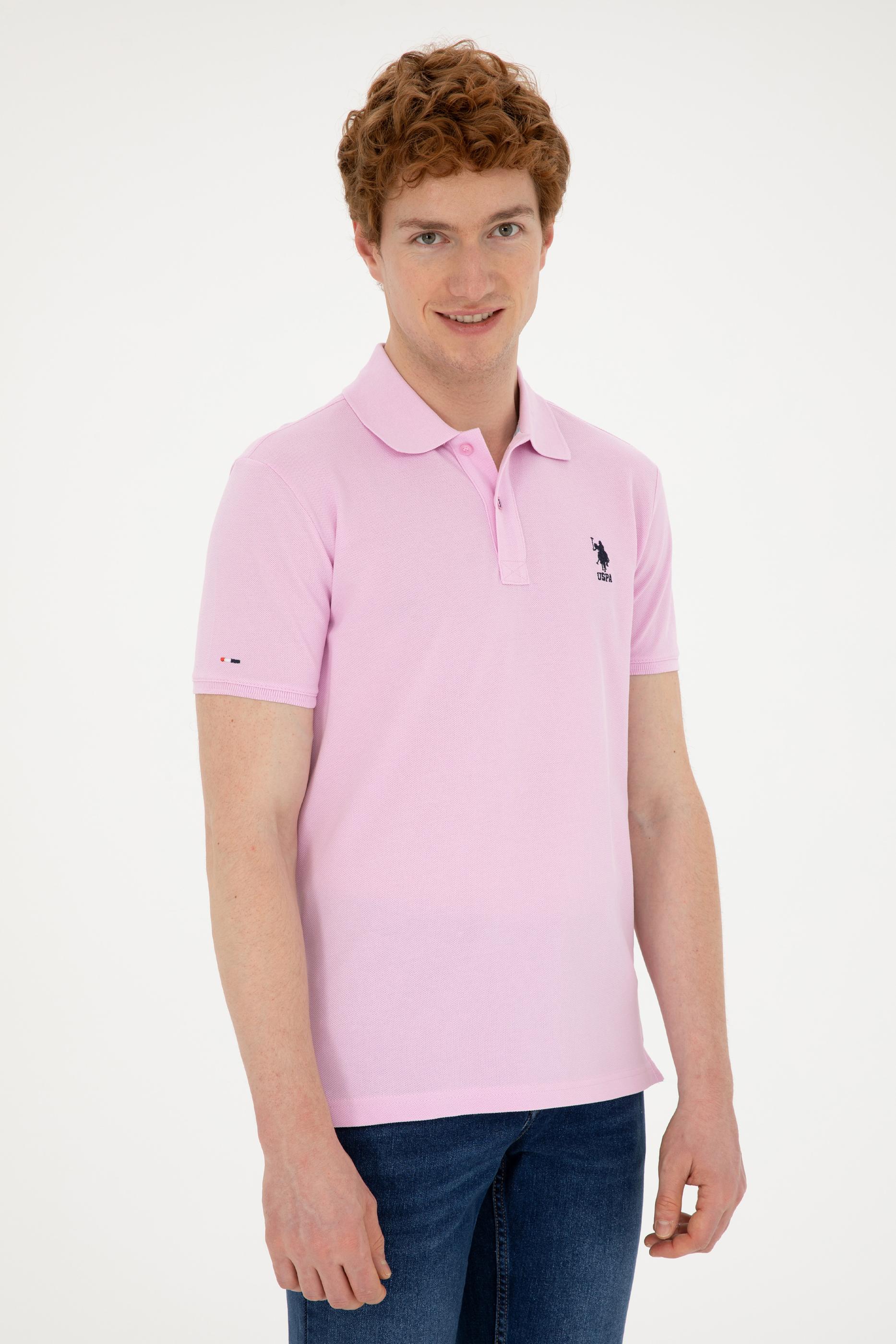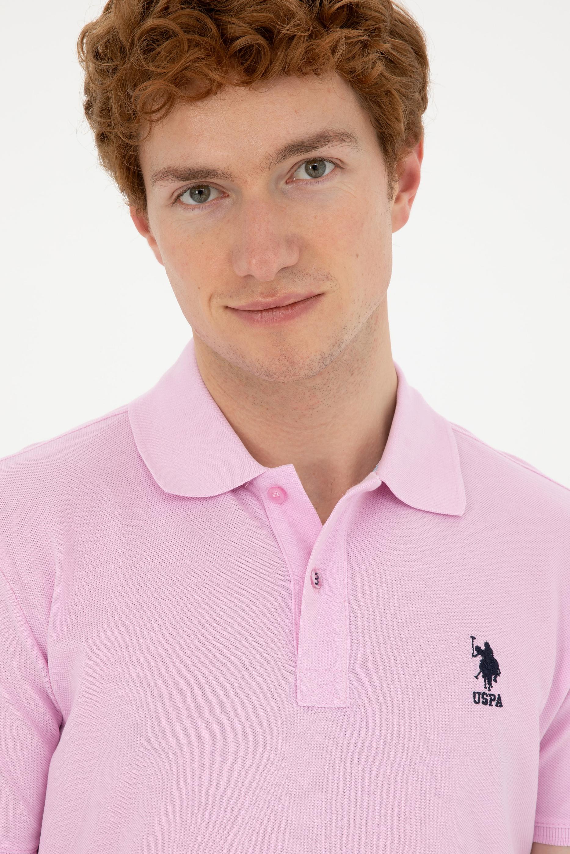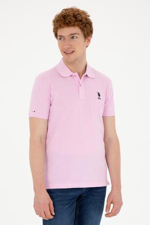 - Erkek Slim Fit Polo Yaka Pembe Basic Tişört