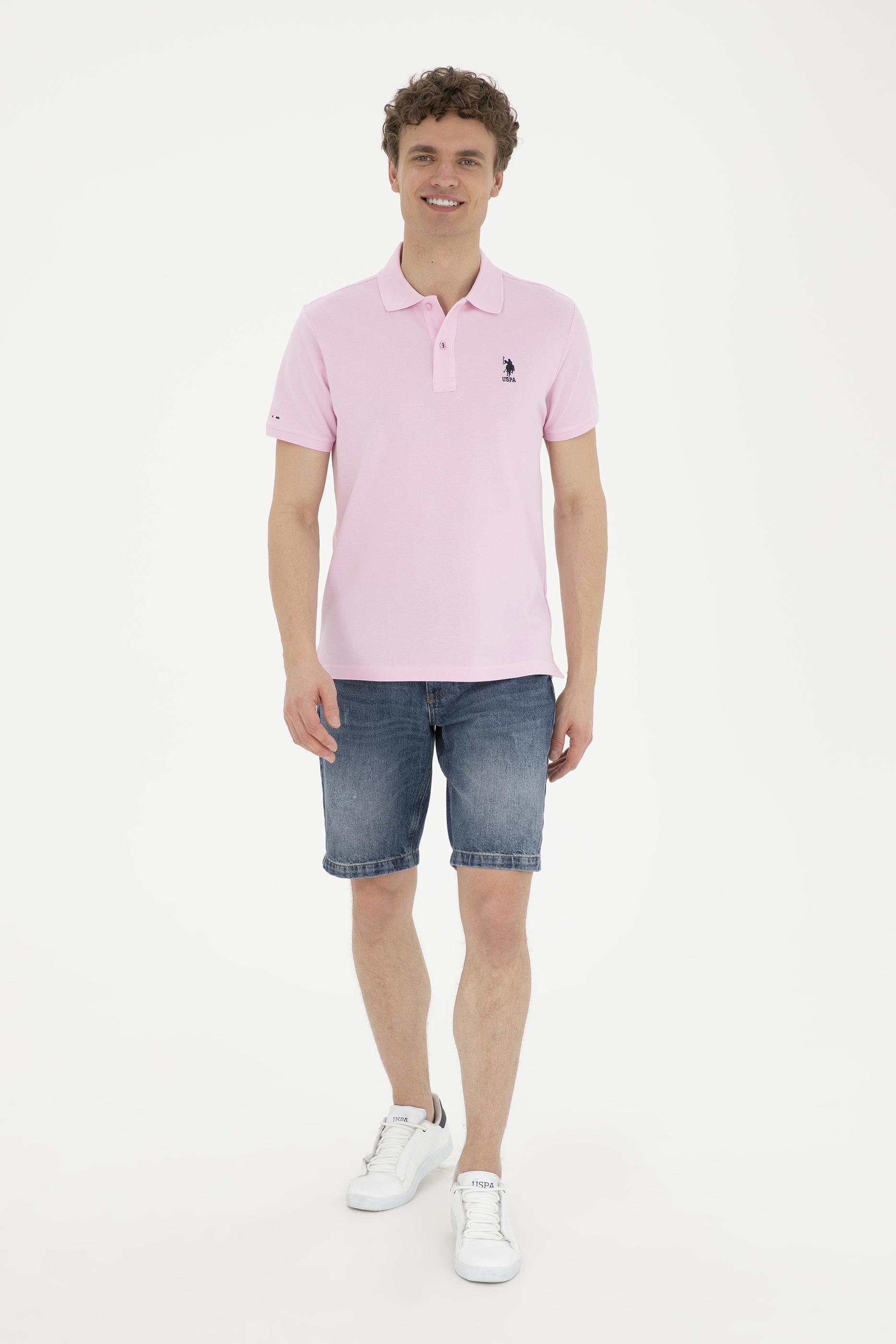 - Erkek Slim Fit Polo Yaka Pembe Basic Tişört