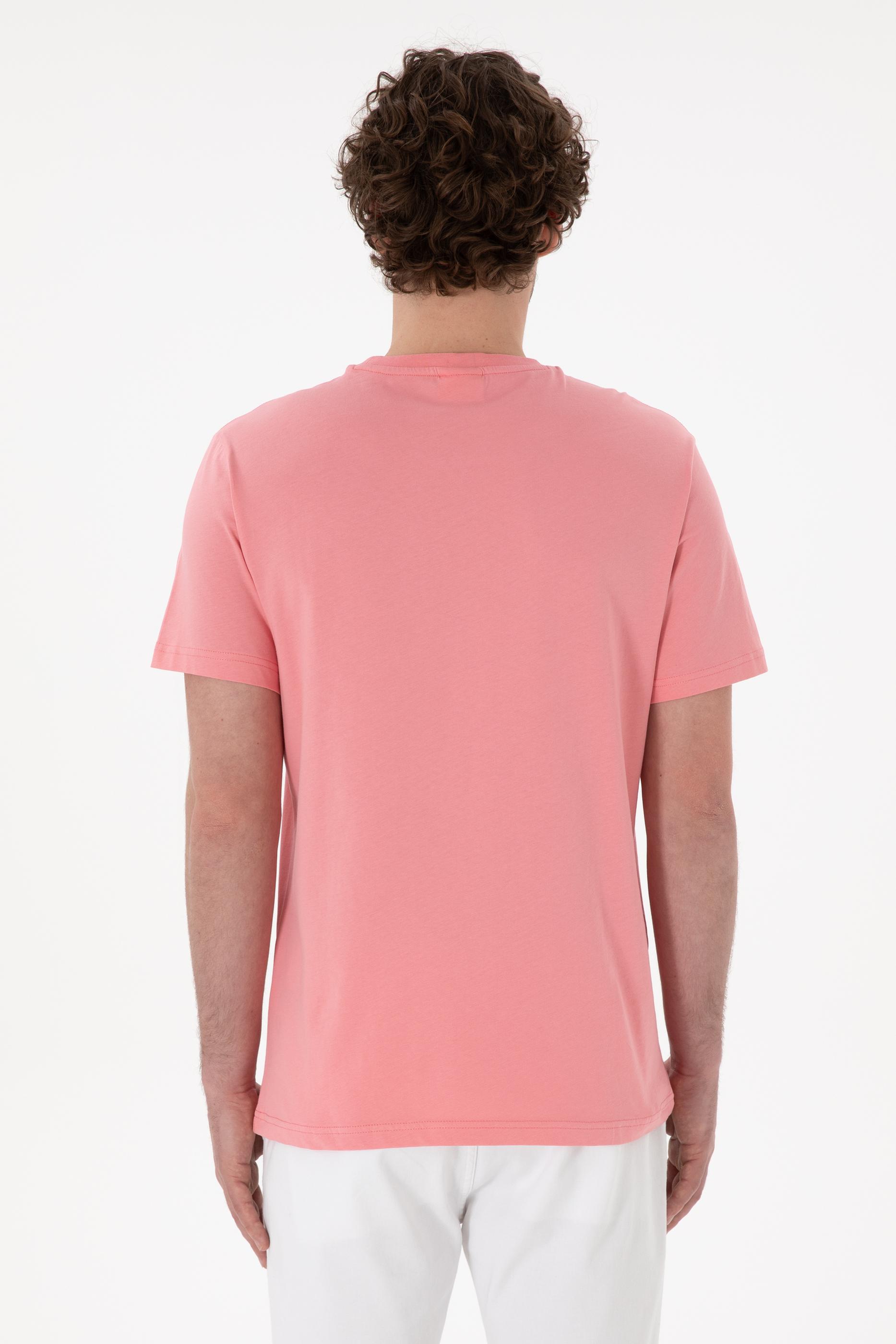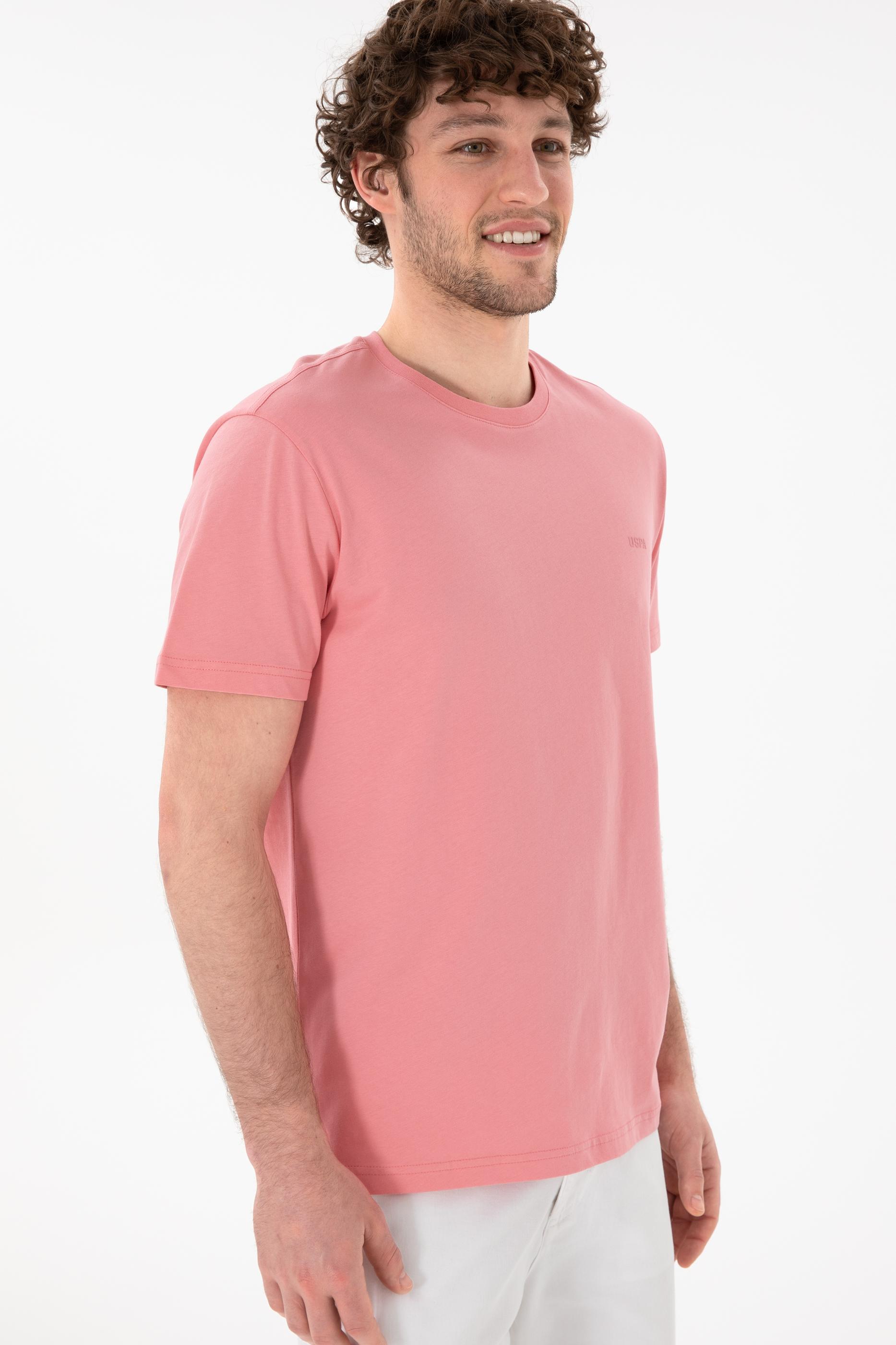 - Erkek Regular Fit Bisiklet Yaka Pembe Basic Tişört