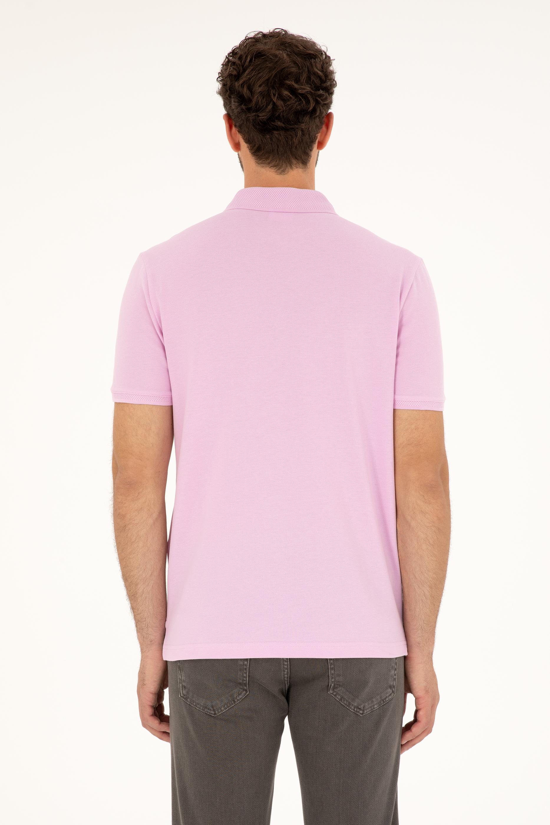 - Erkek Regular Fit Polo Yaka Pembe Tişört