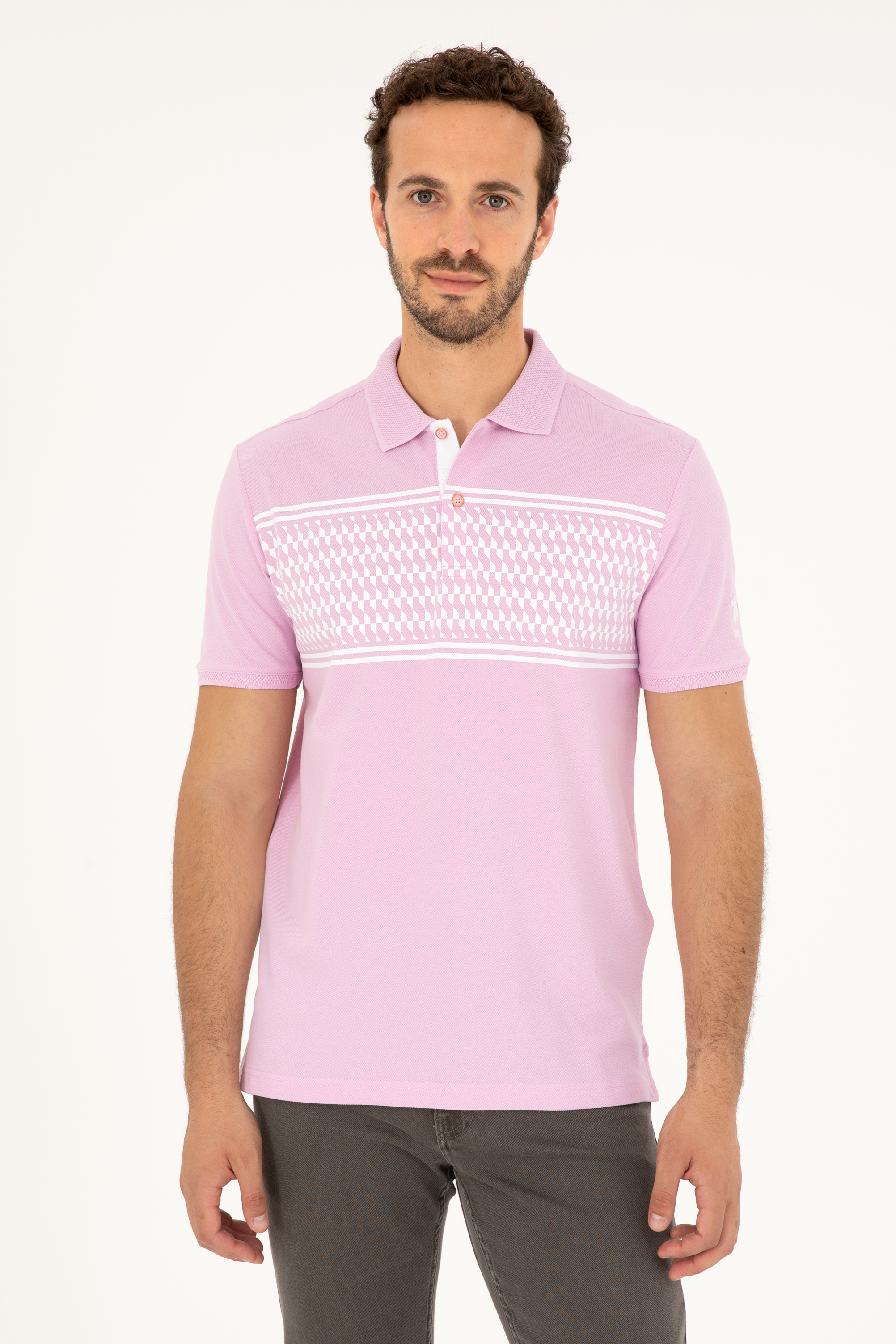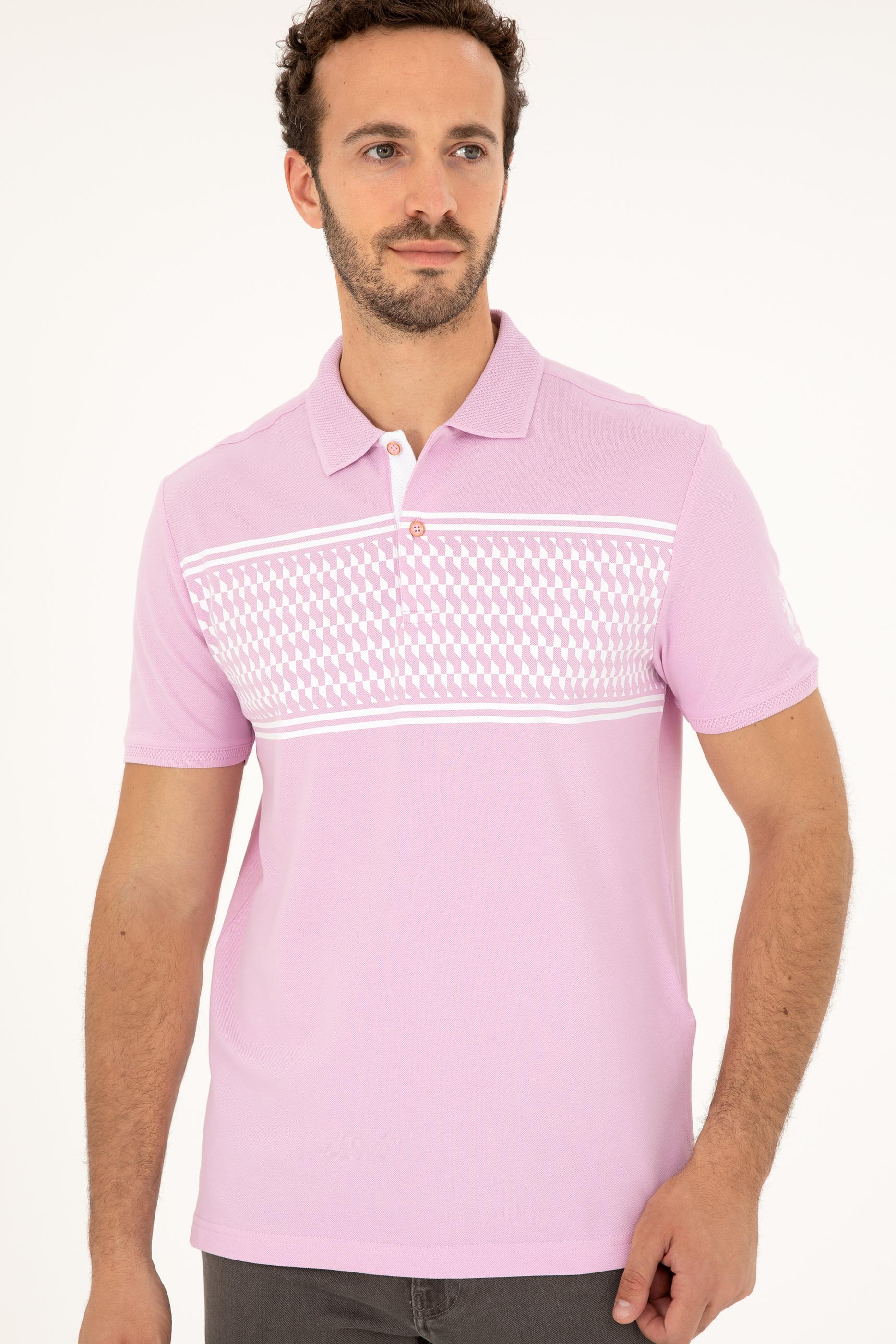 Erkek Regular Fit Polo Yaka Pembe Tişört
