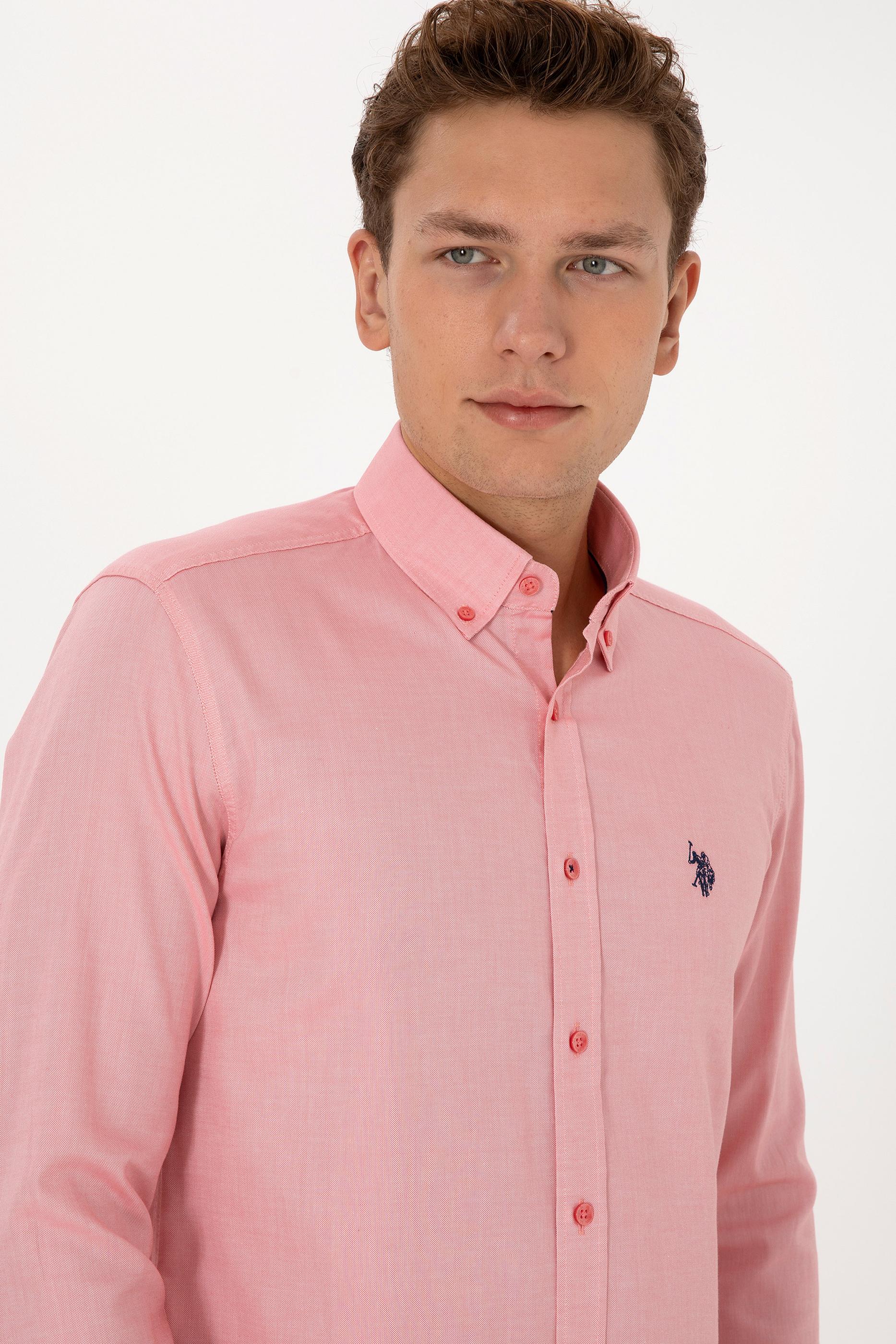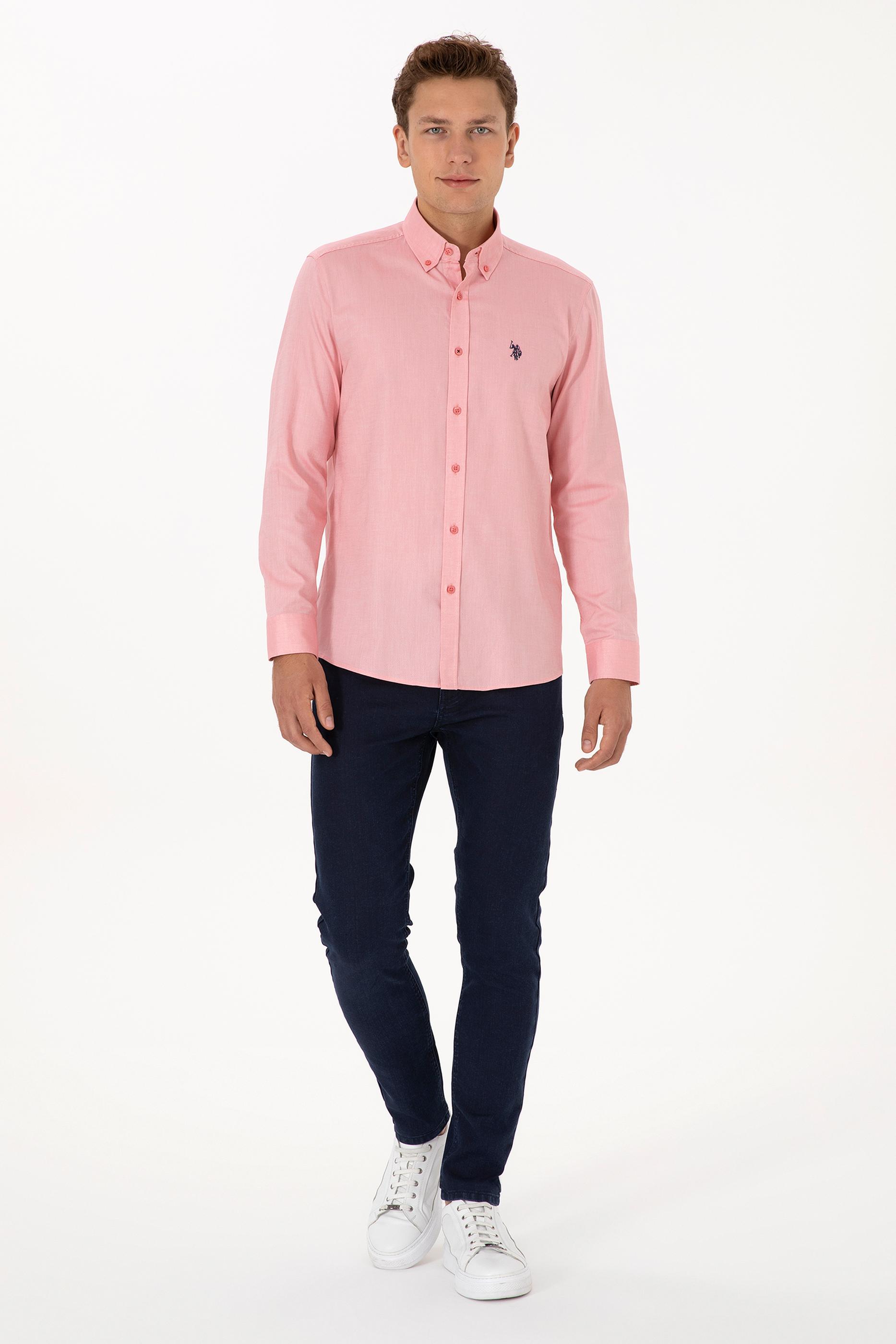 Erkek Pembe Uzun Kollu Basic Gömlek