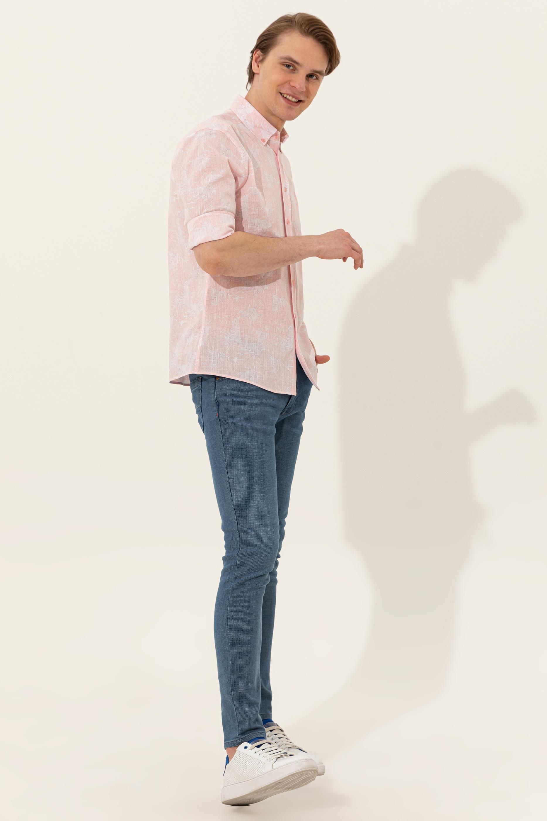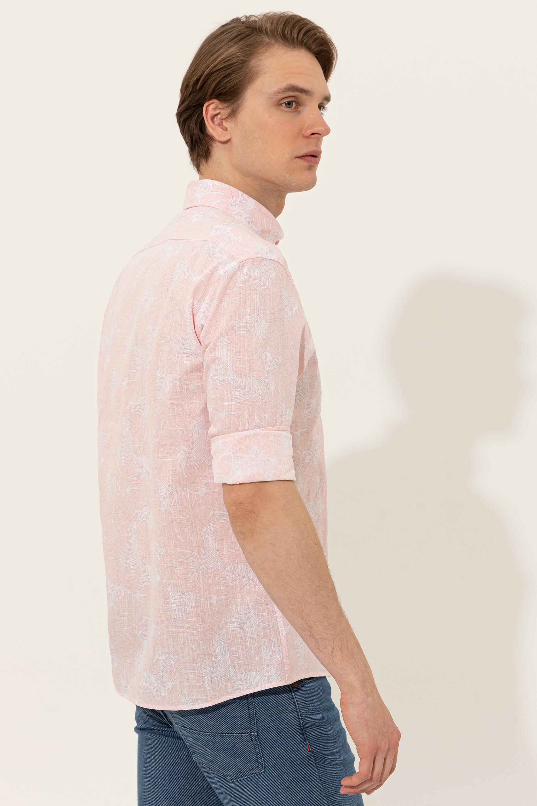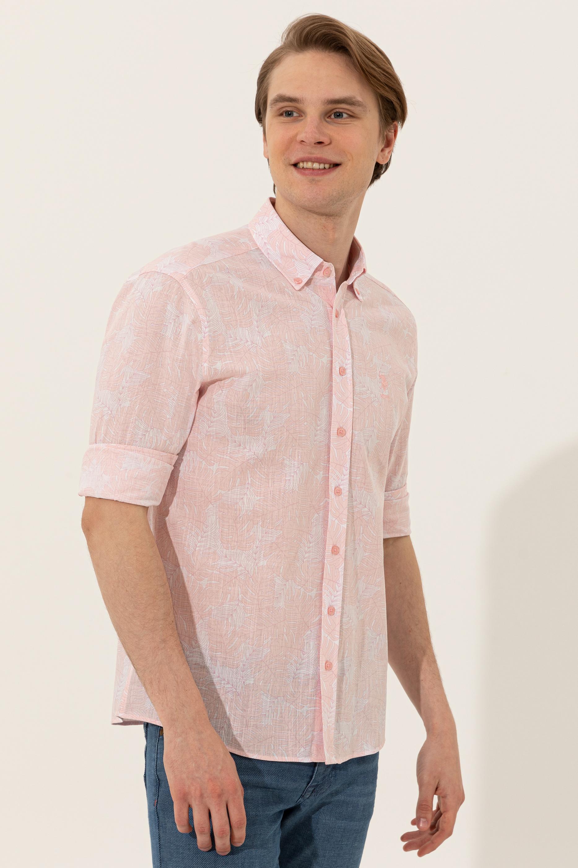 Yaza dinamik ve enerjik bir kombinle merhaba demek isteyenler için yaprak desenli erkek gömlek modelimizle karşınızdayız. Pantolon ve şort modelleriyle rahatlıkla kombinleyebileceğiniz erkek gömlek modelimiz, yaz aylarındaki vazgeçilmeziniz olacak. %100 pamuk kumaşı ile terlemeyi önleyen erkek gömlek modelimiz, regular fit kesimi sayesinde gün boyu rahat hareket etmenize olanak sağlayacak.