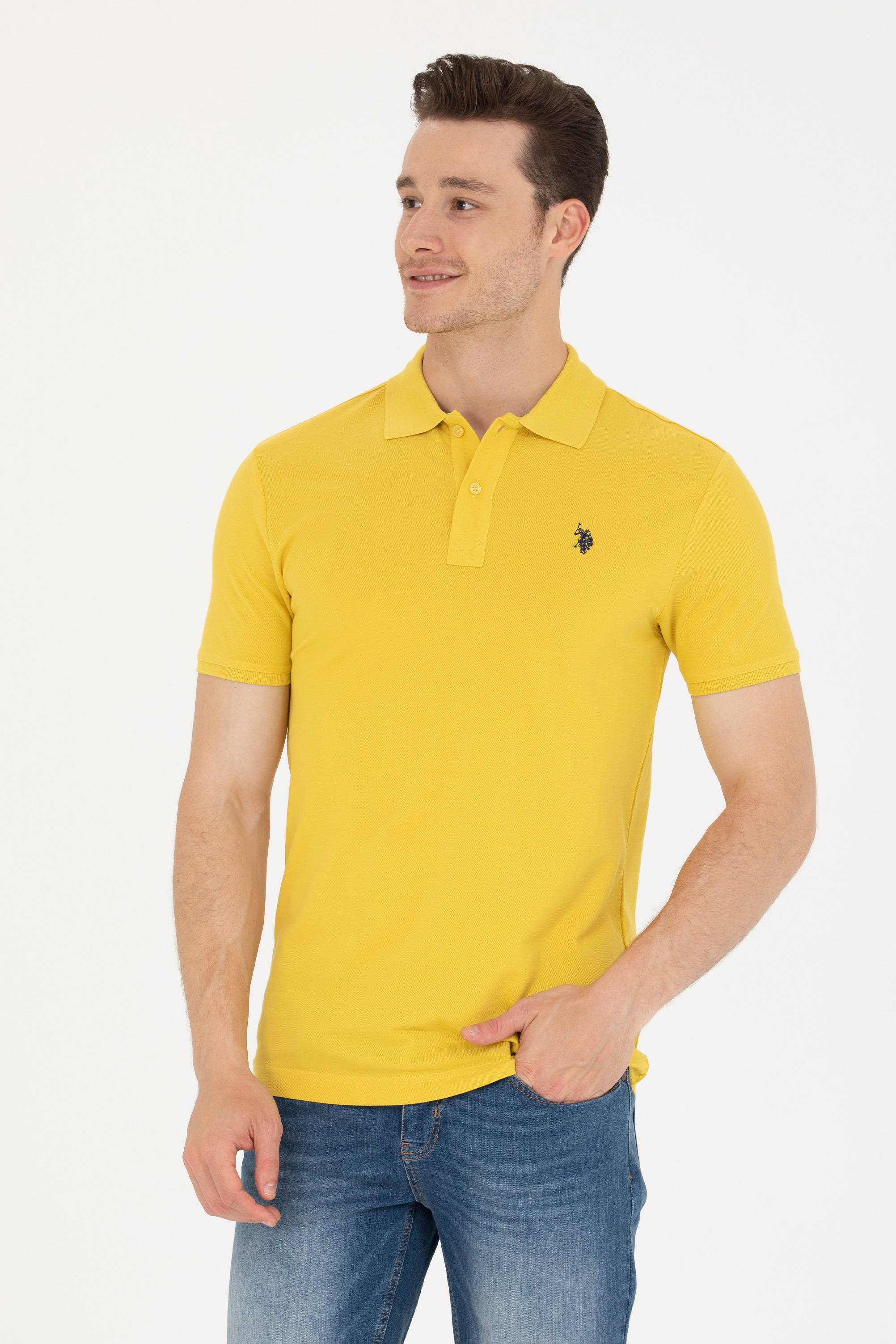 - Erkek Safran Polo Yaka Basic T-Shirt