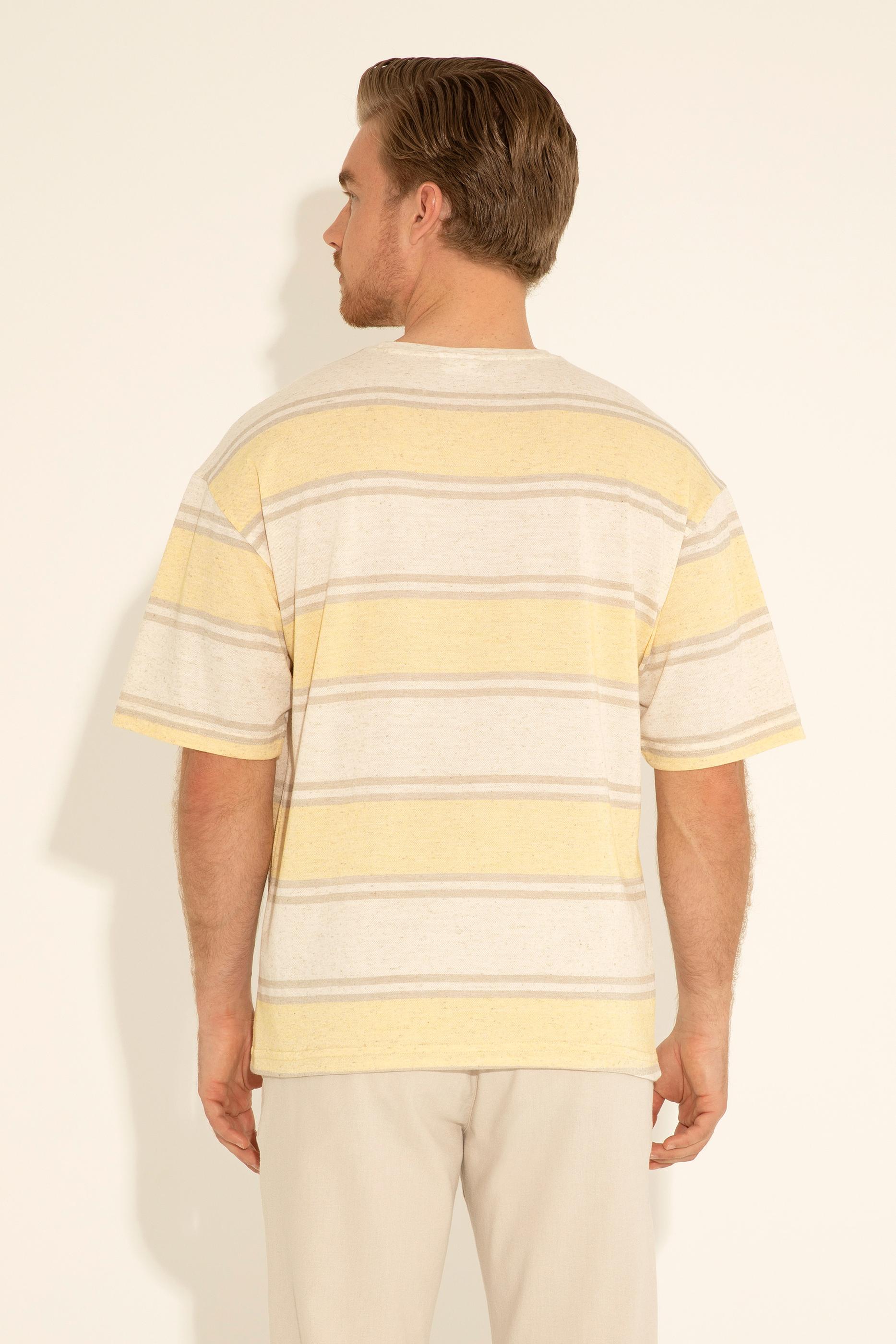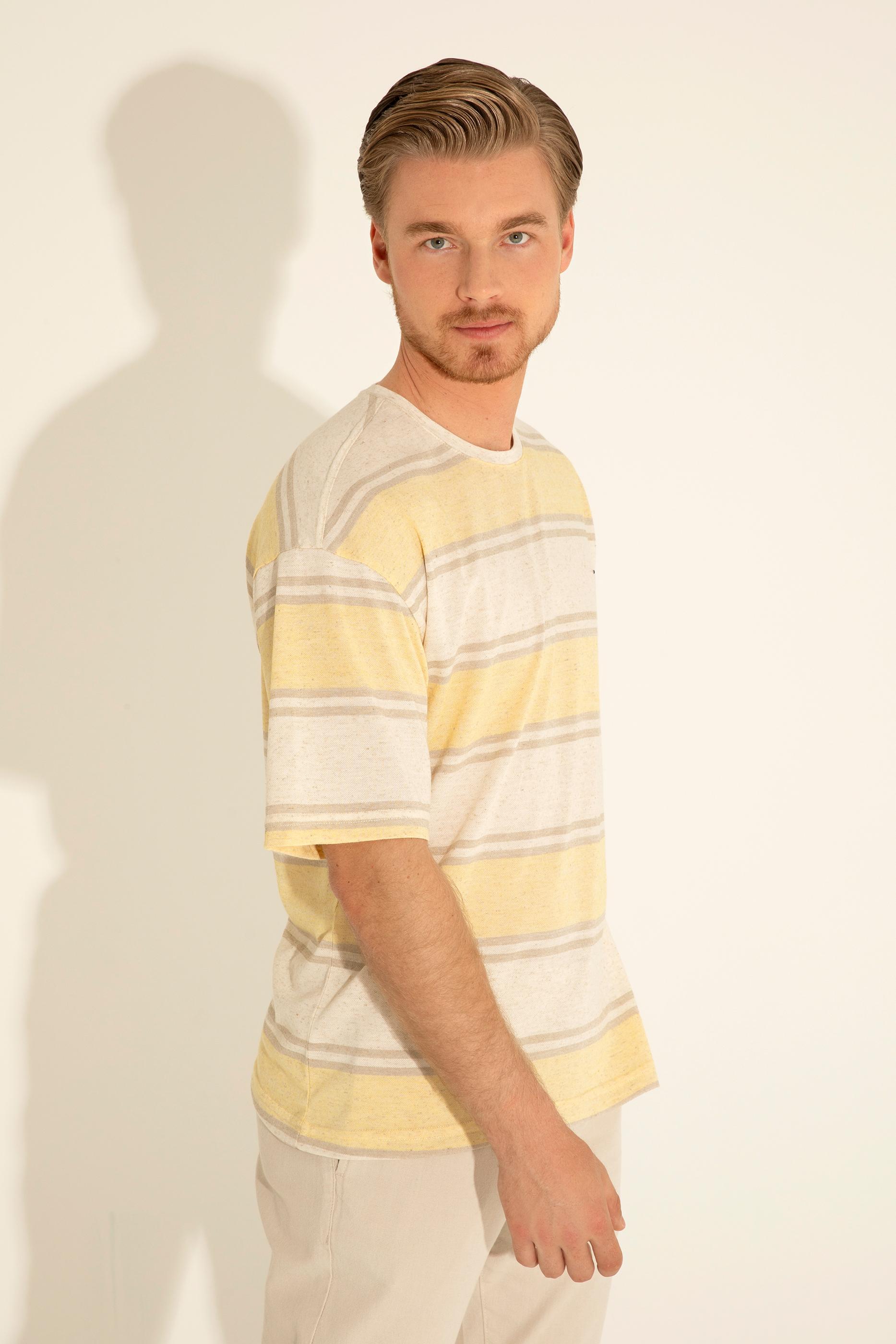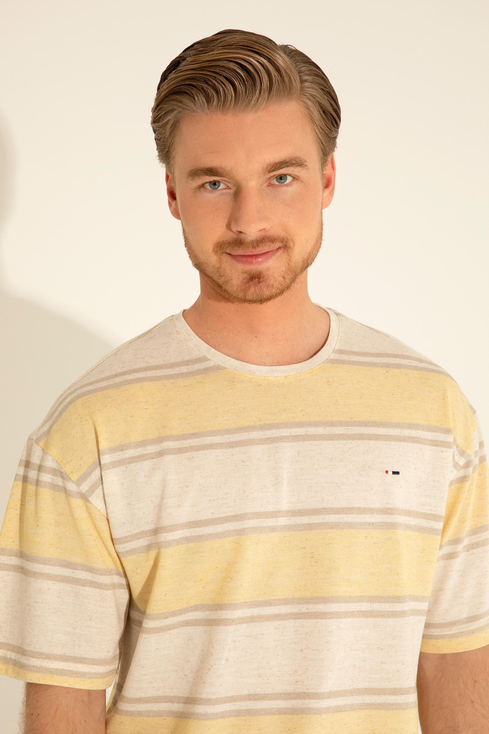 Erkek Comfort Fit Bisiklet Yaka Safran Tişört