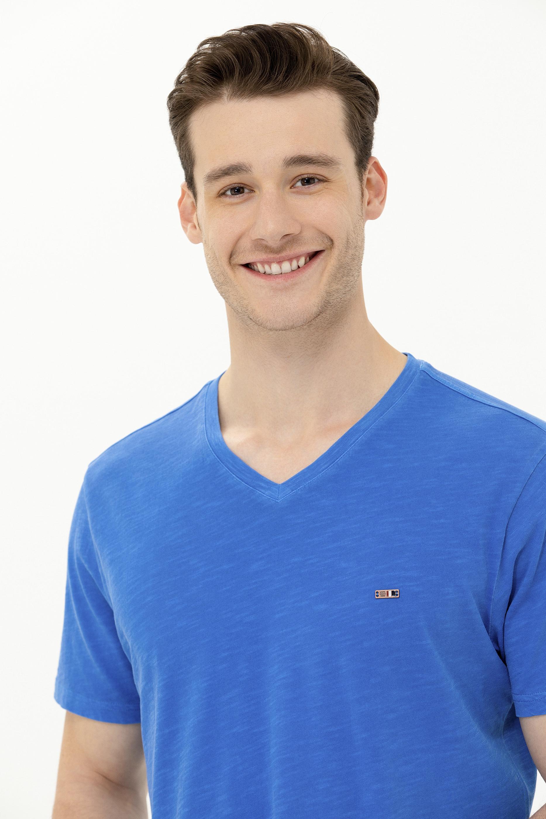 "name": "Erkek Saks Basic V Yaka Tişört",