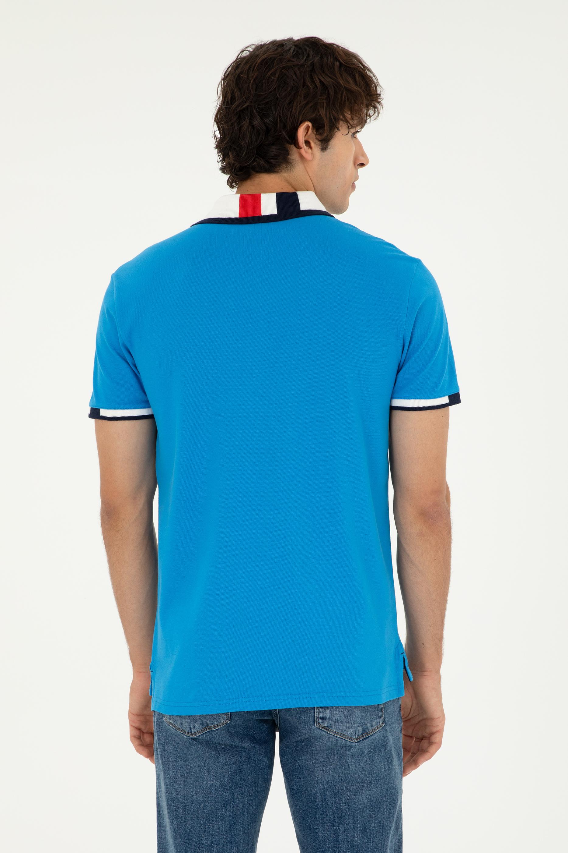- Erkek Slim Fit Polo Yaka Saks Basic Tişört