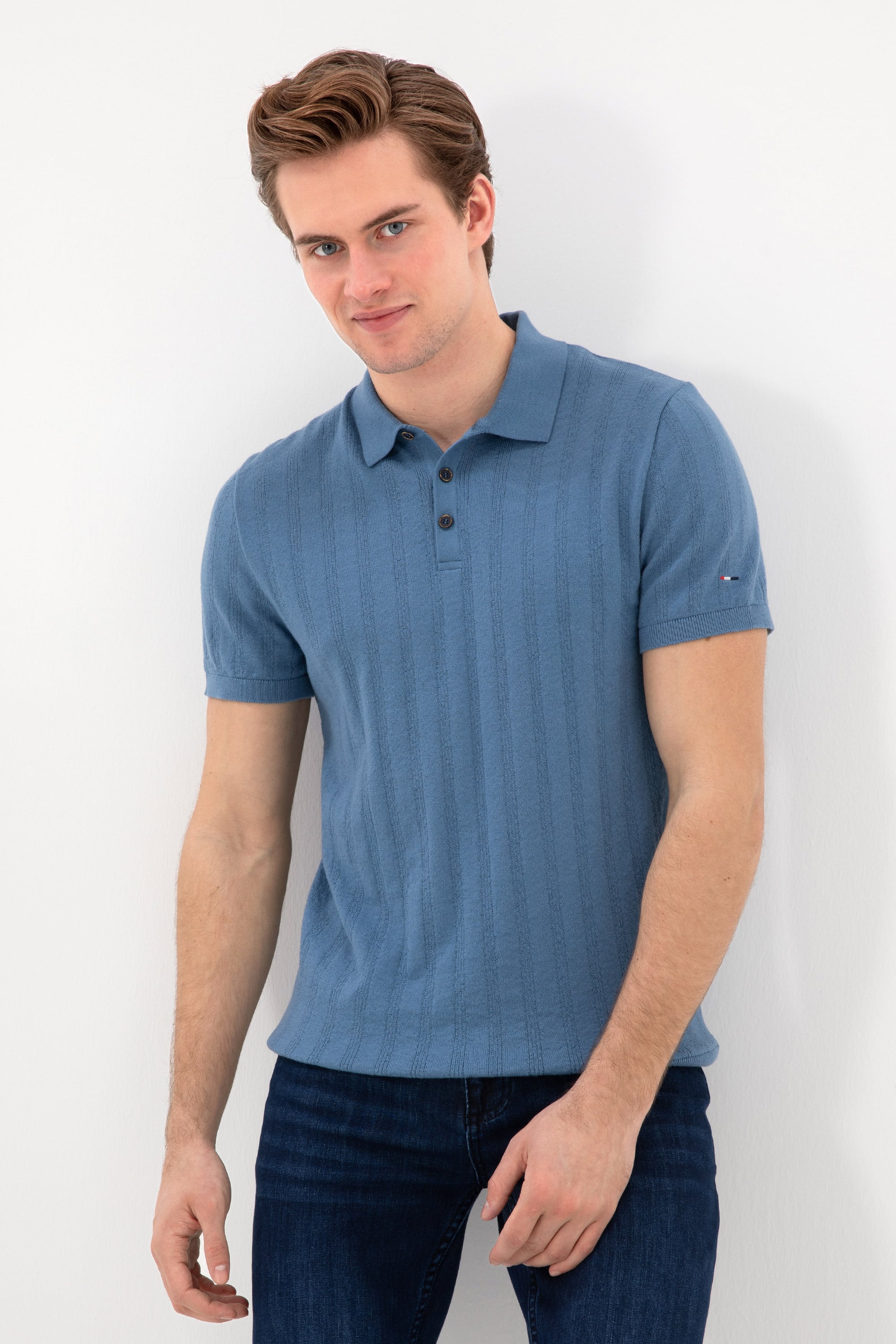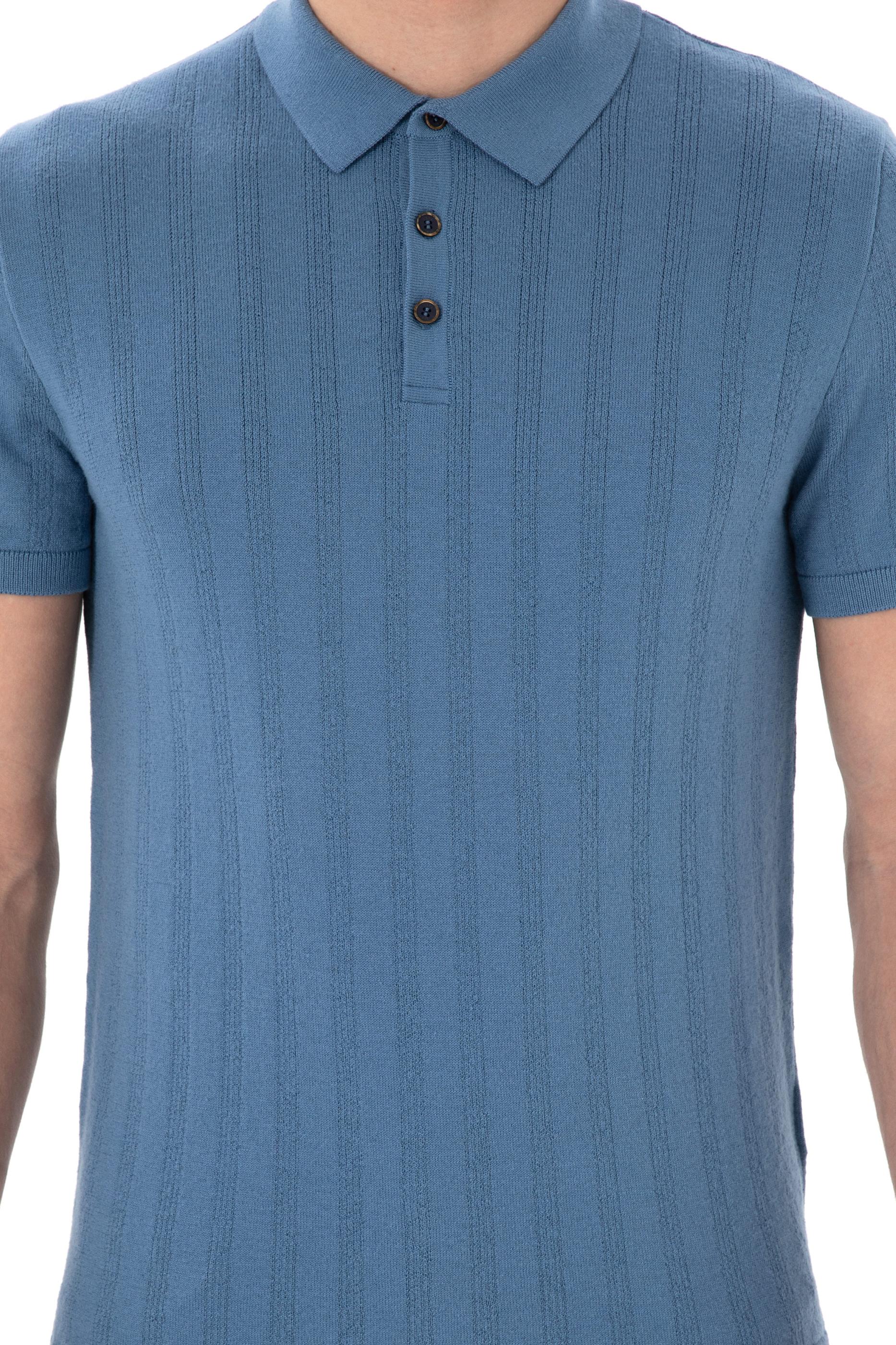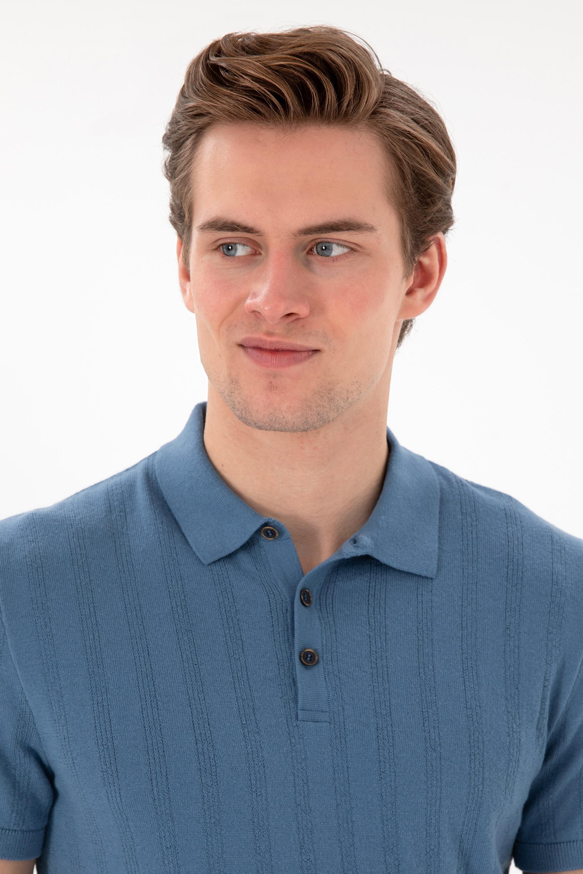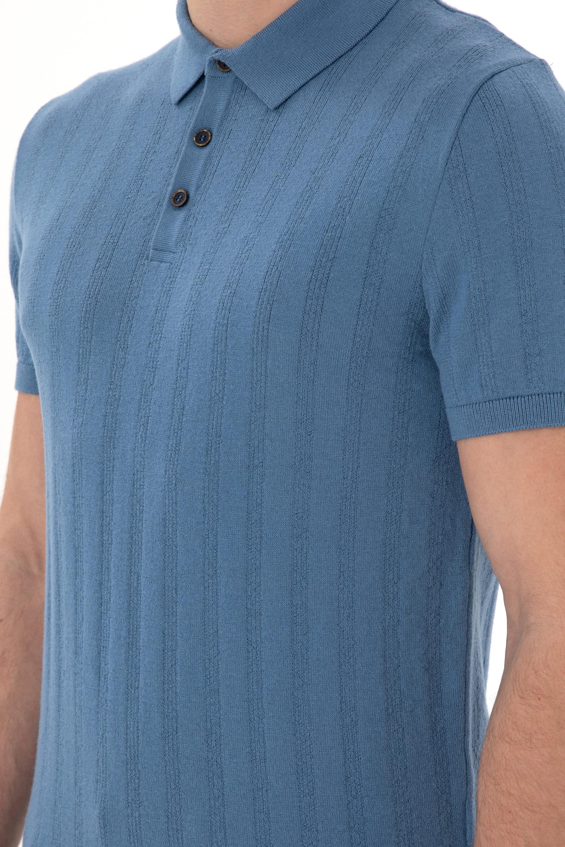 Erkek Slim Fit Polo Yaka Koyu Mavi Triko Tişört