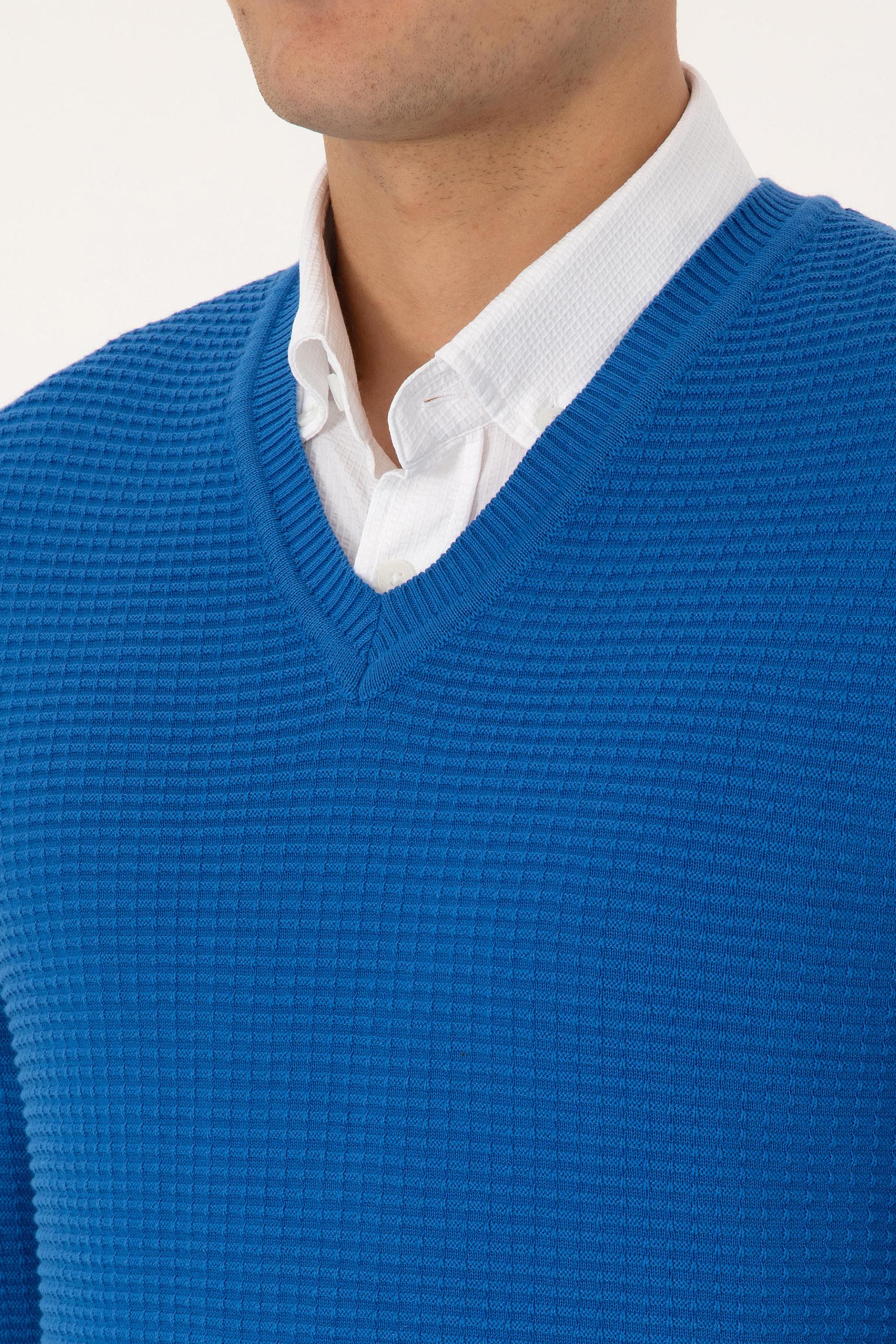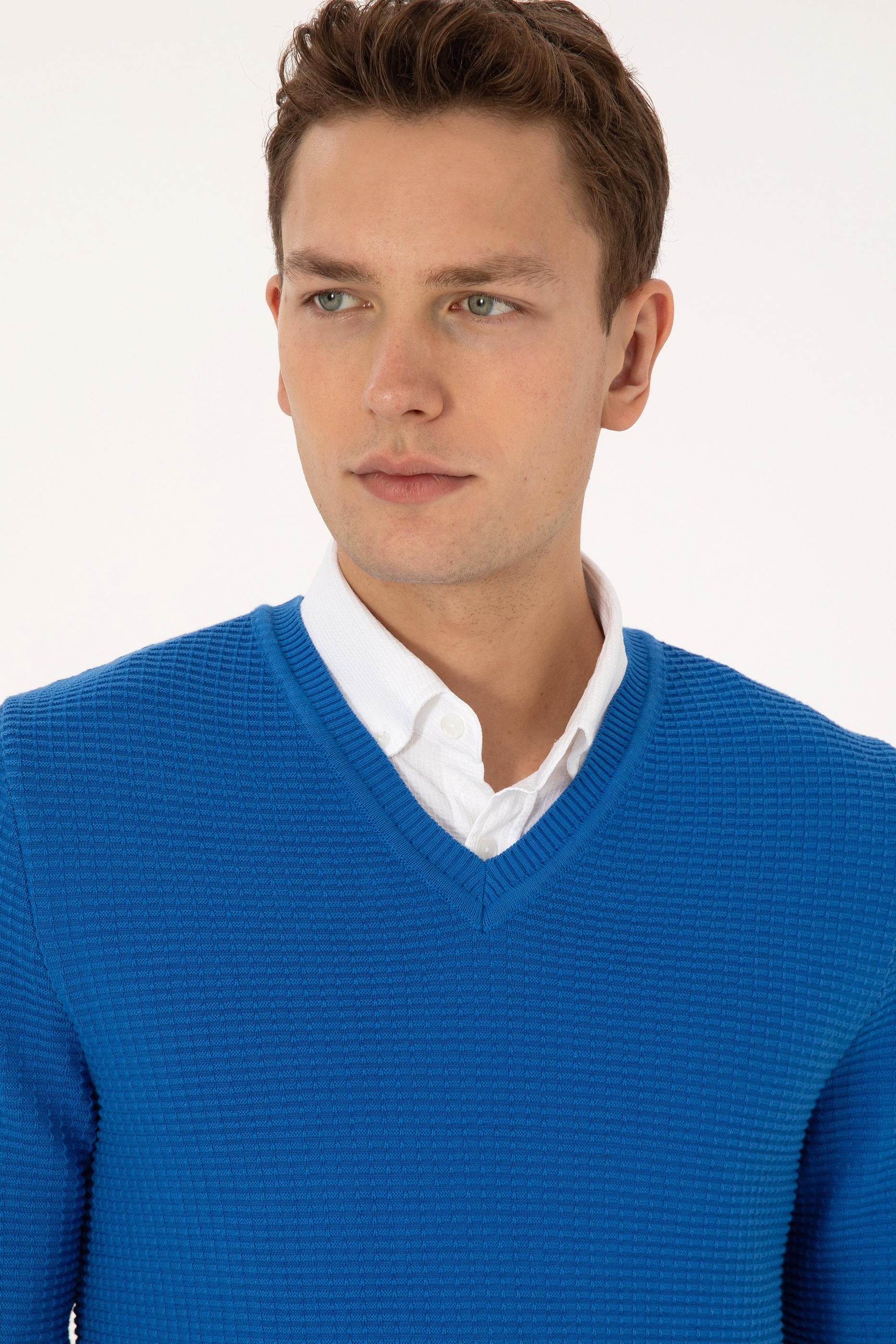 Erkek Regular Fit V Yaka Saks Kazak