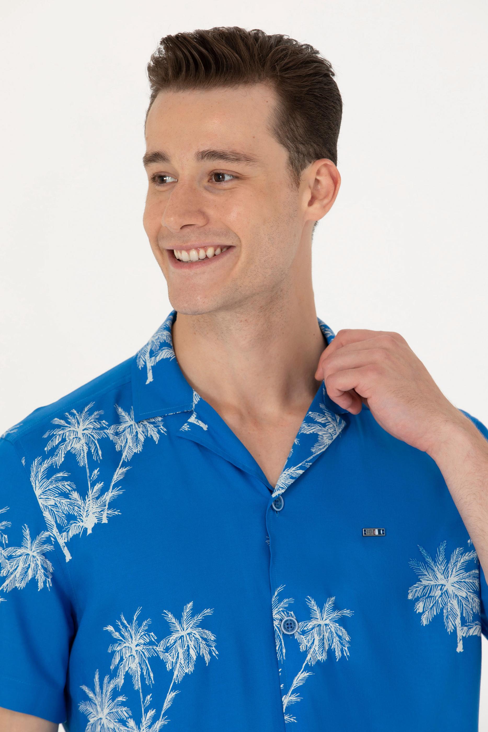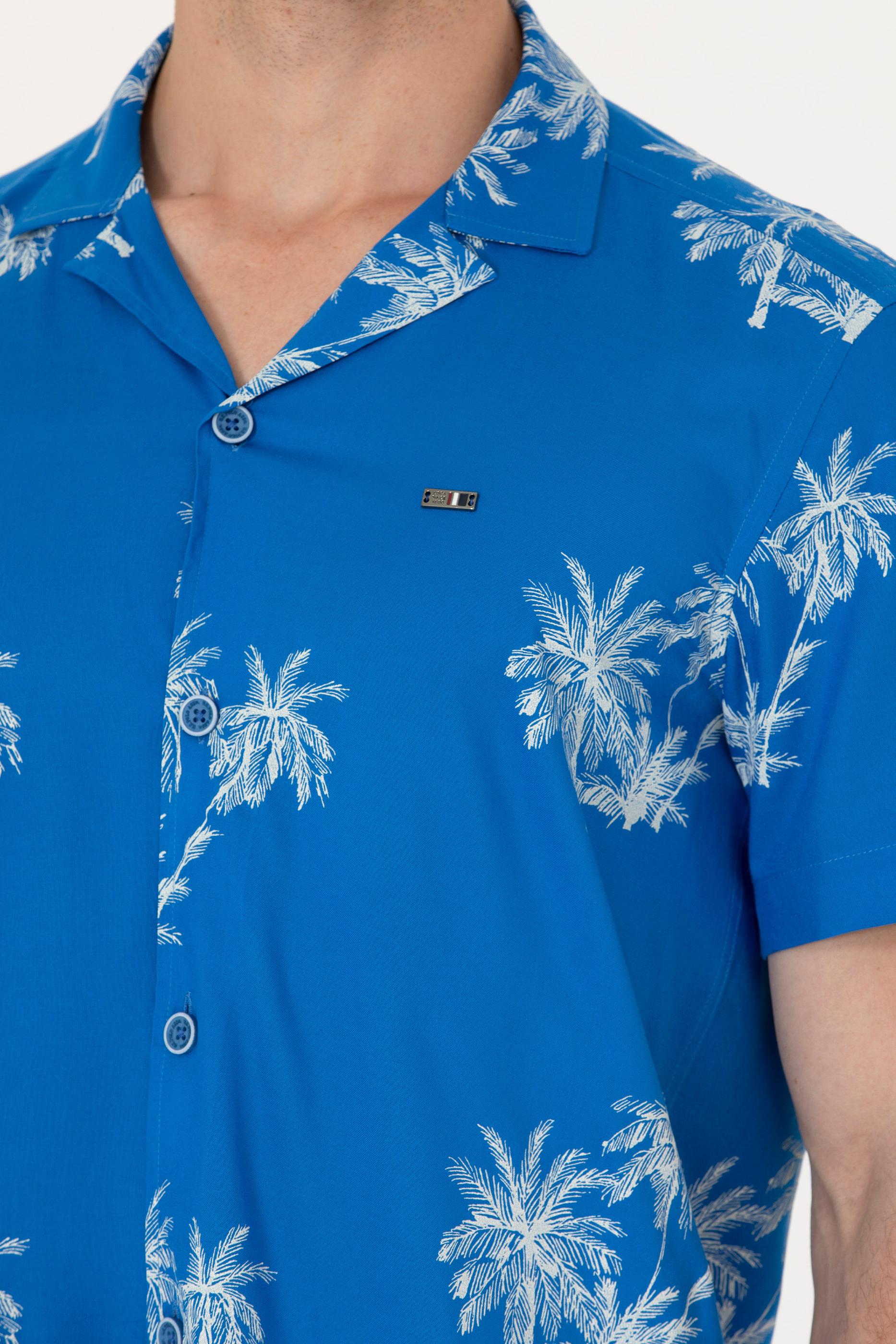 Erkek Apaş Yaka Saks Kısa Kollu Gömlek