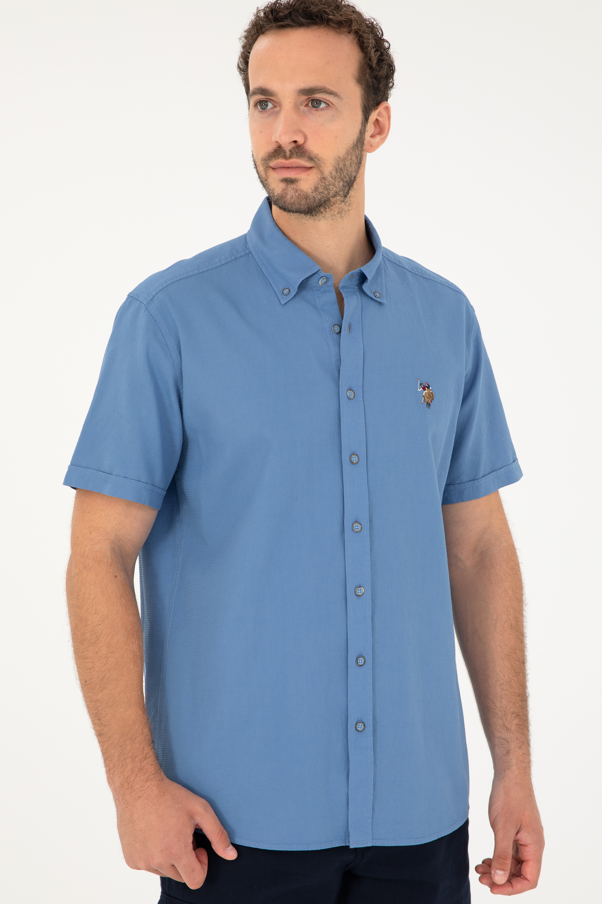 Erkek Saks Kısa Kollu Gömlek