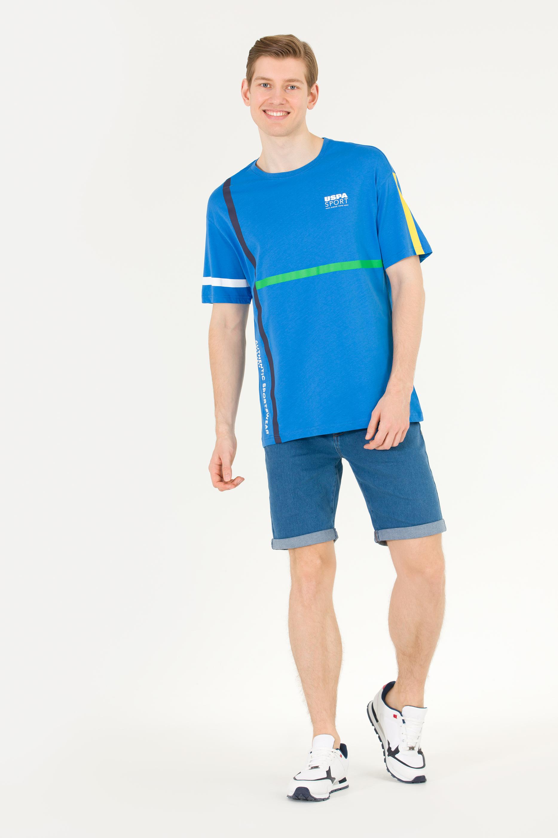 Erkek Saks Comfort Bisiklet Yaka Tişört