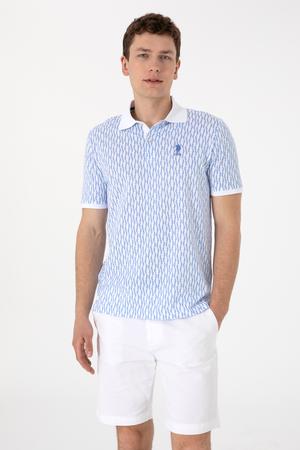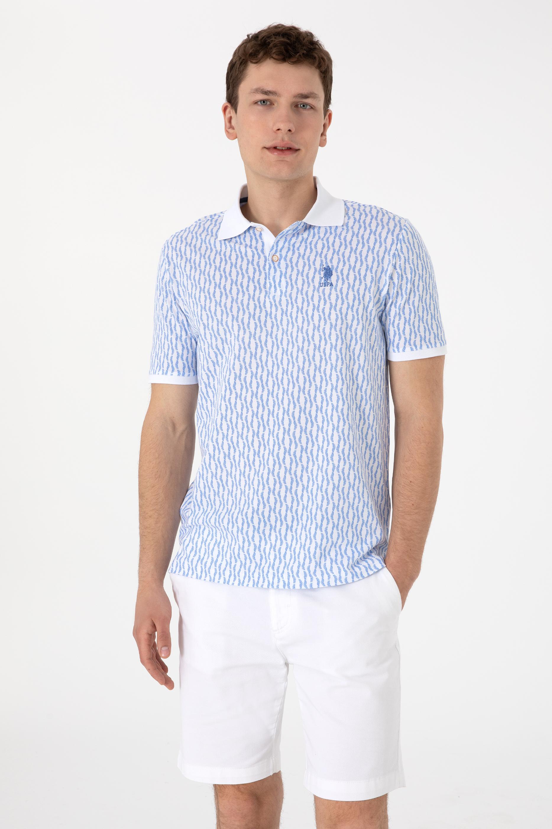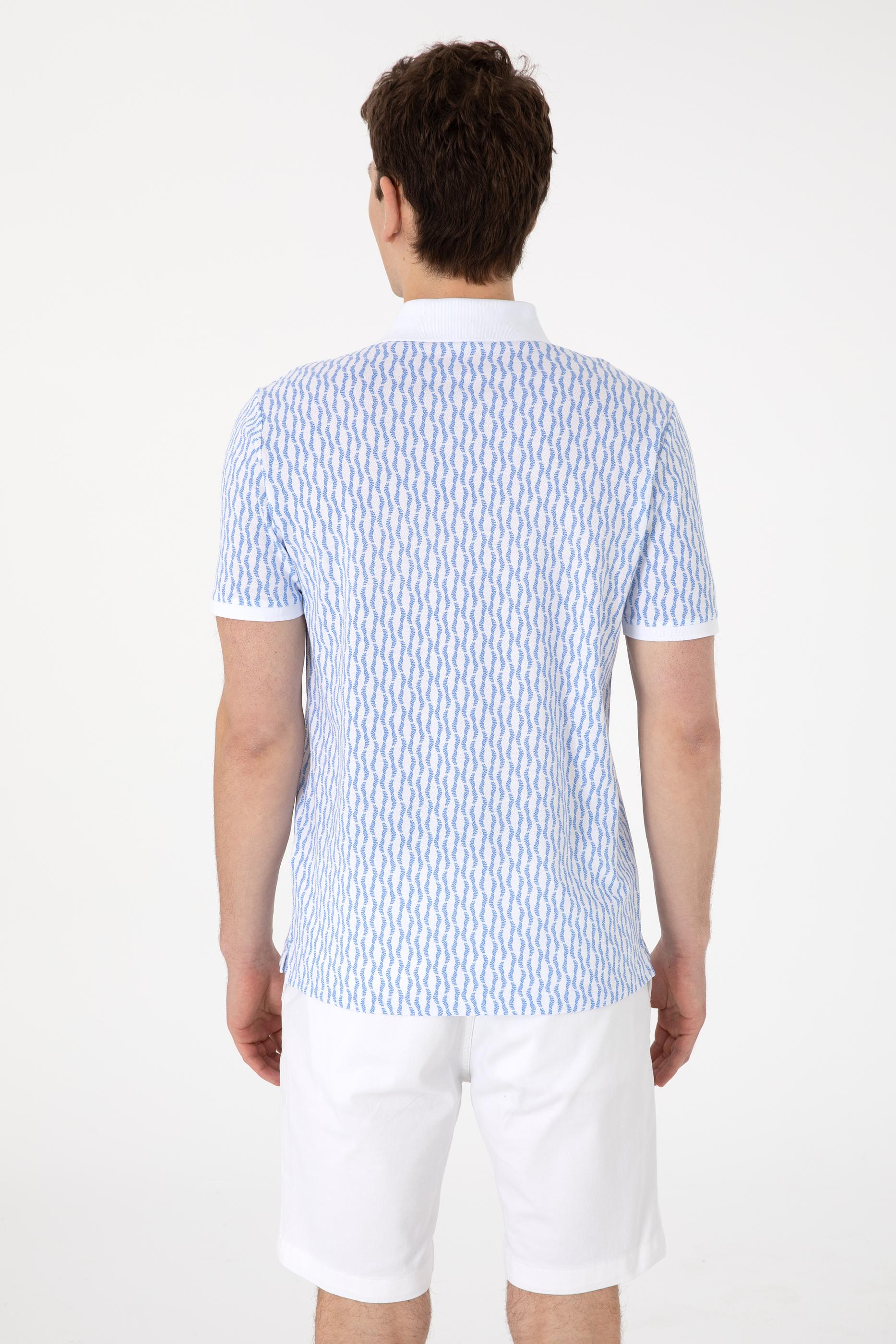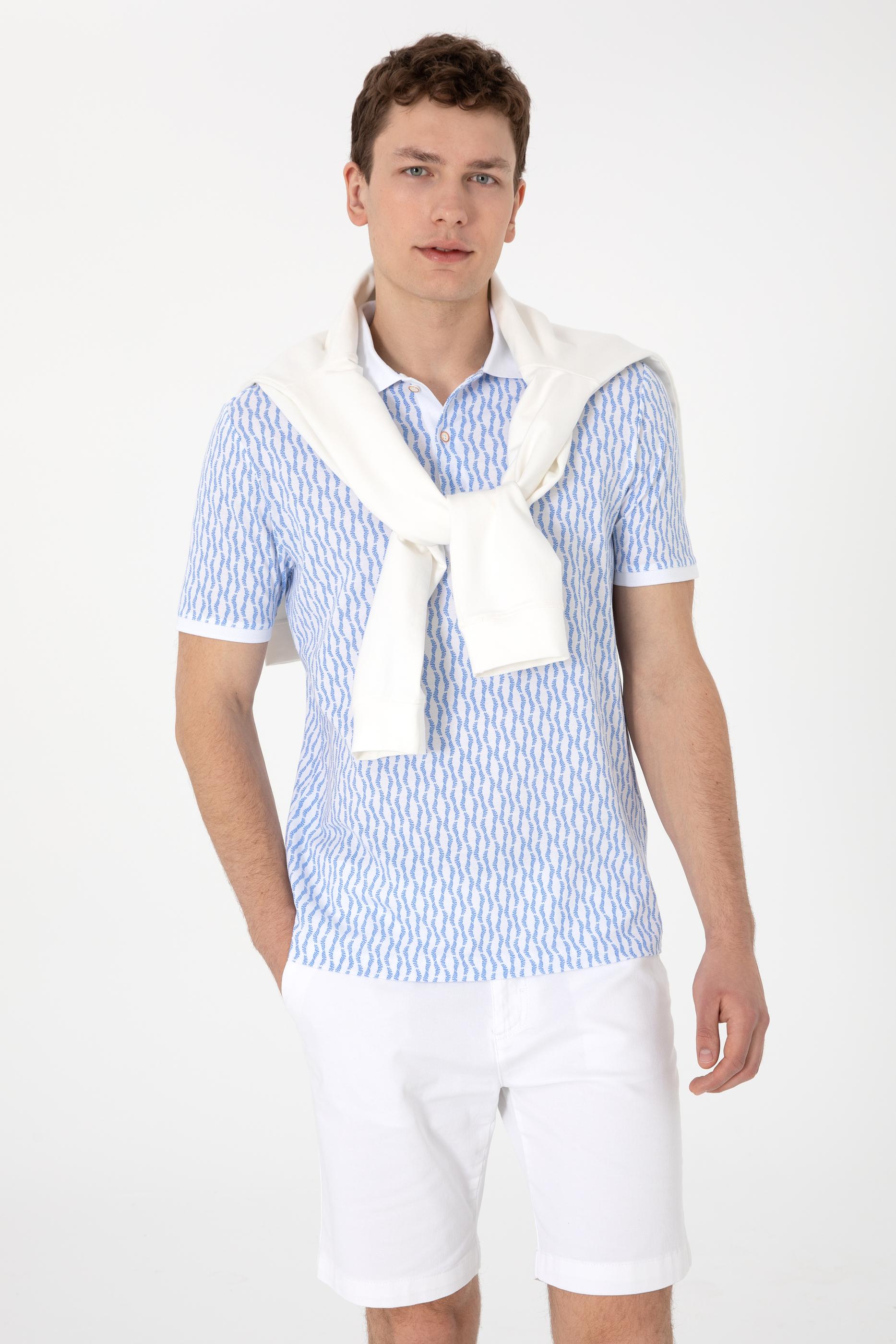 Erkek Regular Fit Polo Yaka Koyu Mavi Desenli Tişört
