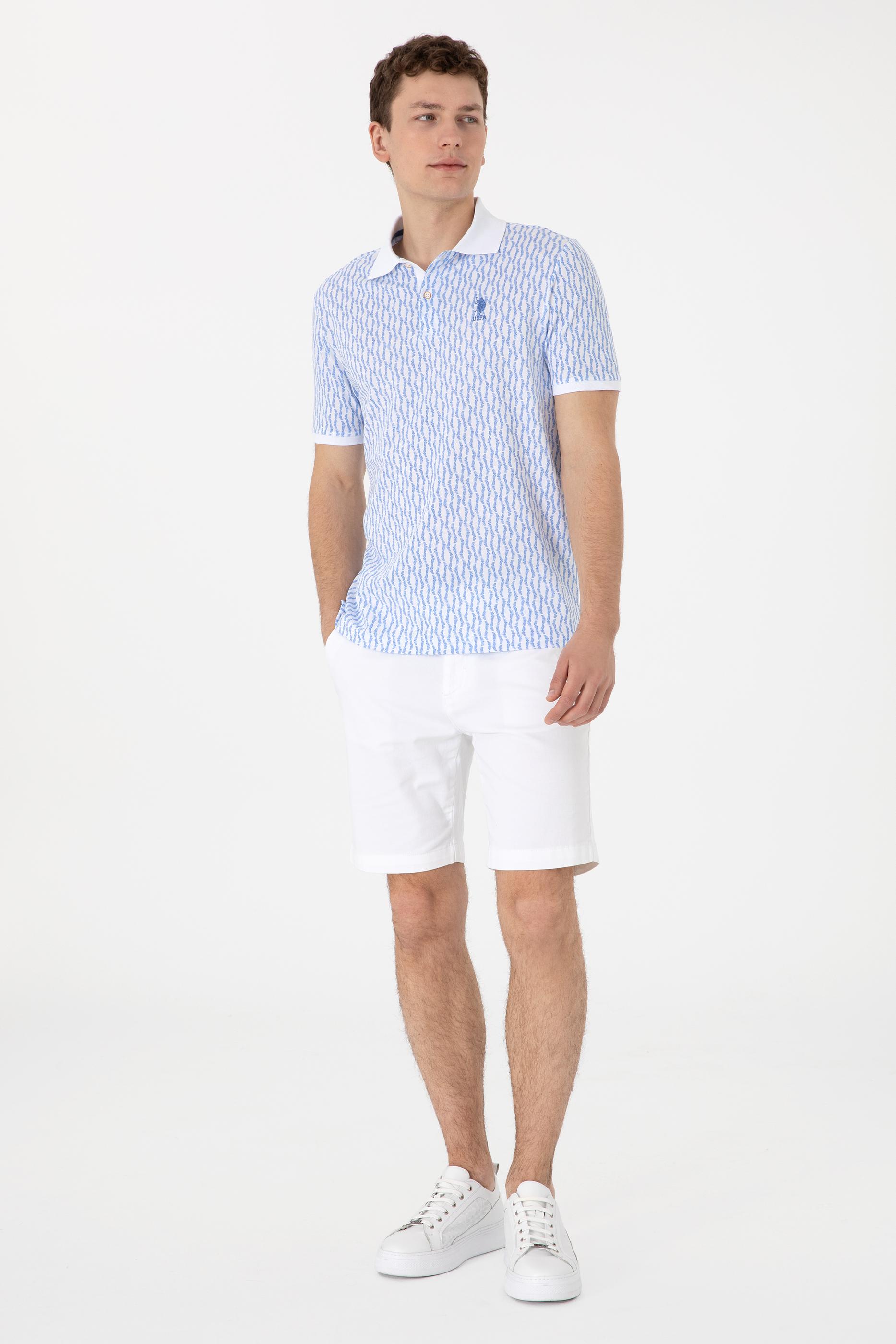 - Erkek Regular Fit Polo Yaka Koyu Mavi Desenli Tişört