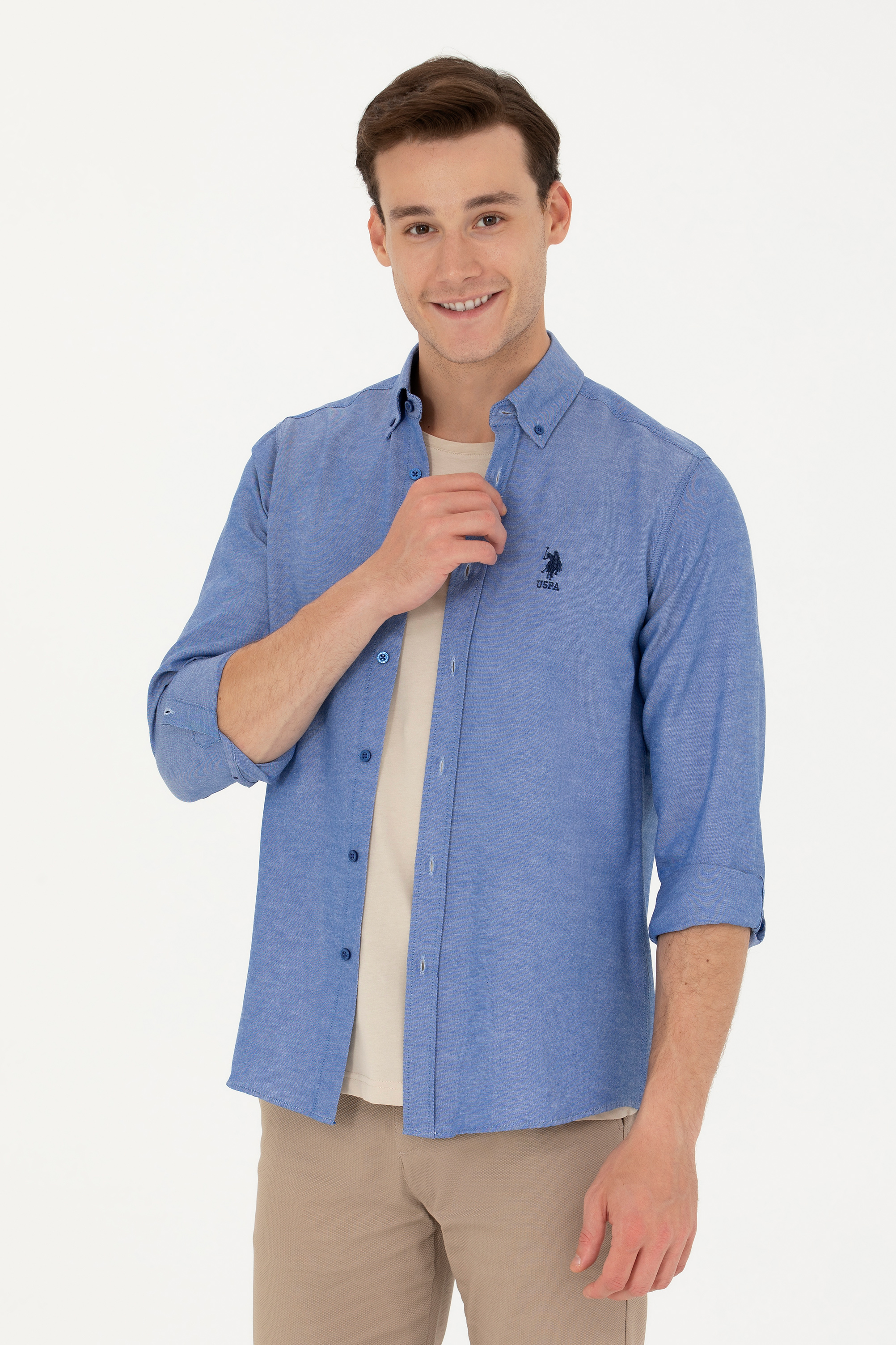 - Erkek Saks Uzun Kollu Basic Gömlek