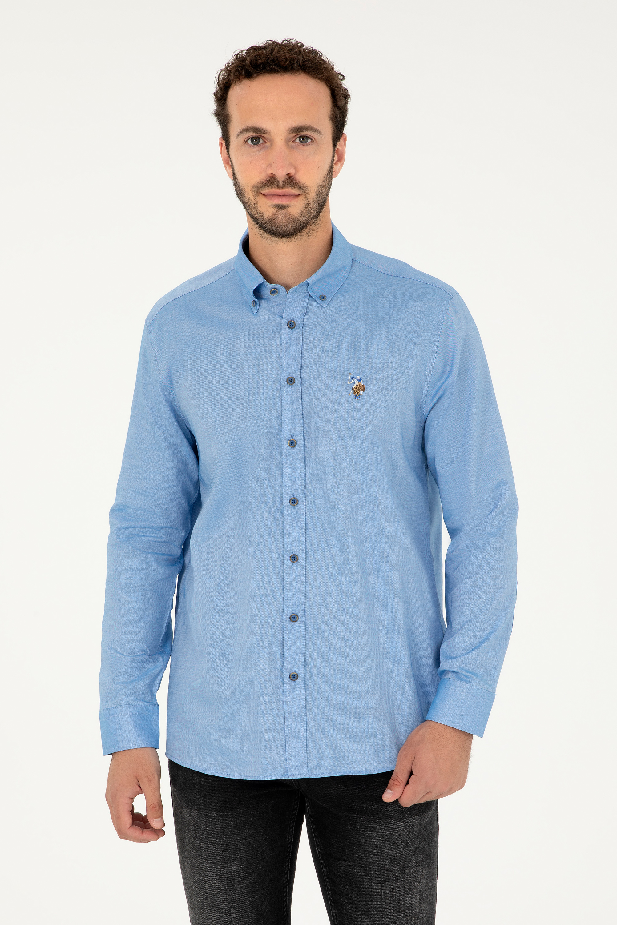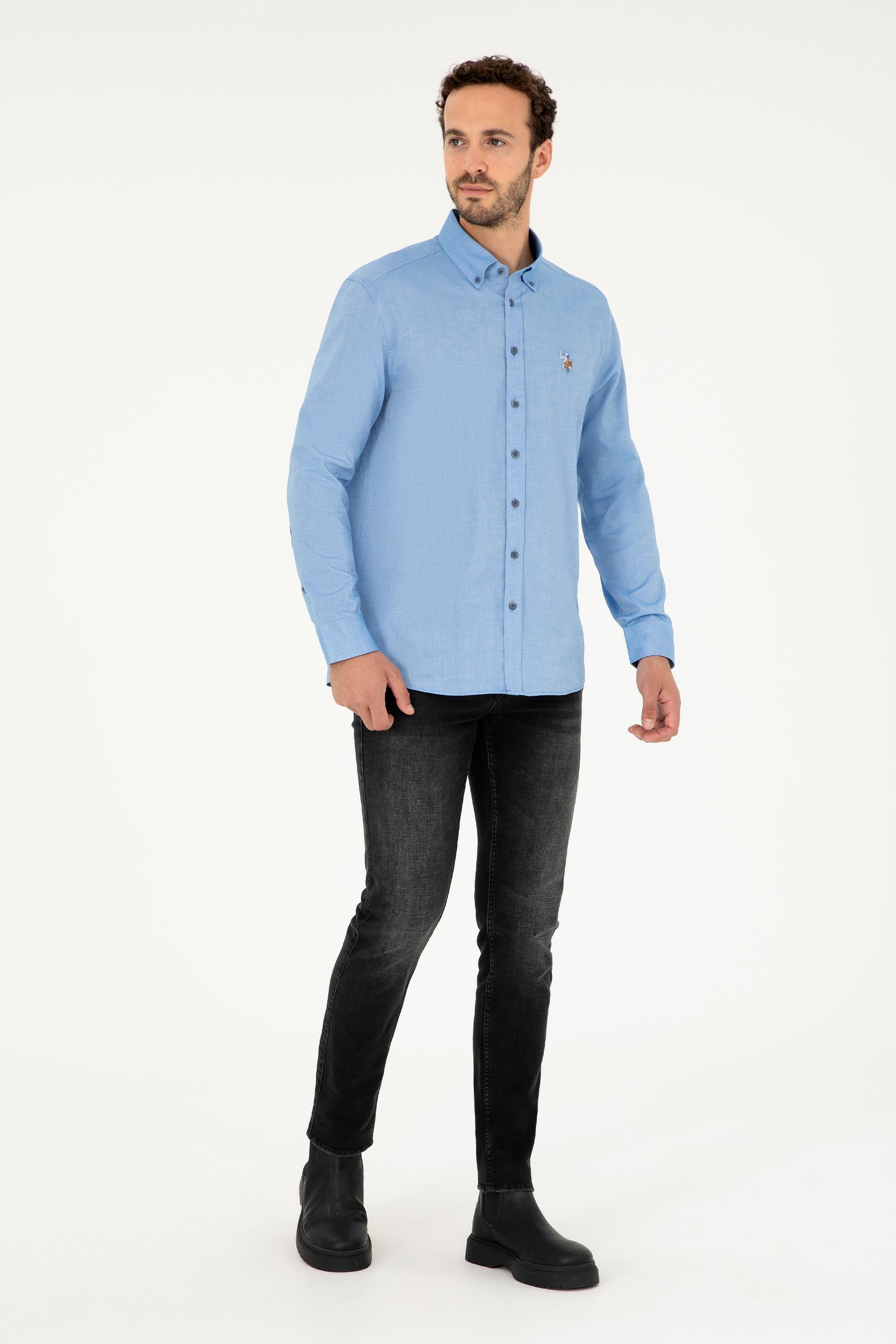 - Erkek Saks Uzun Kollu Basic Gömlek