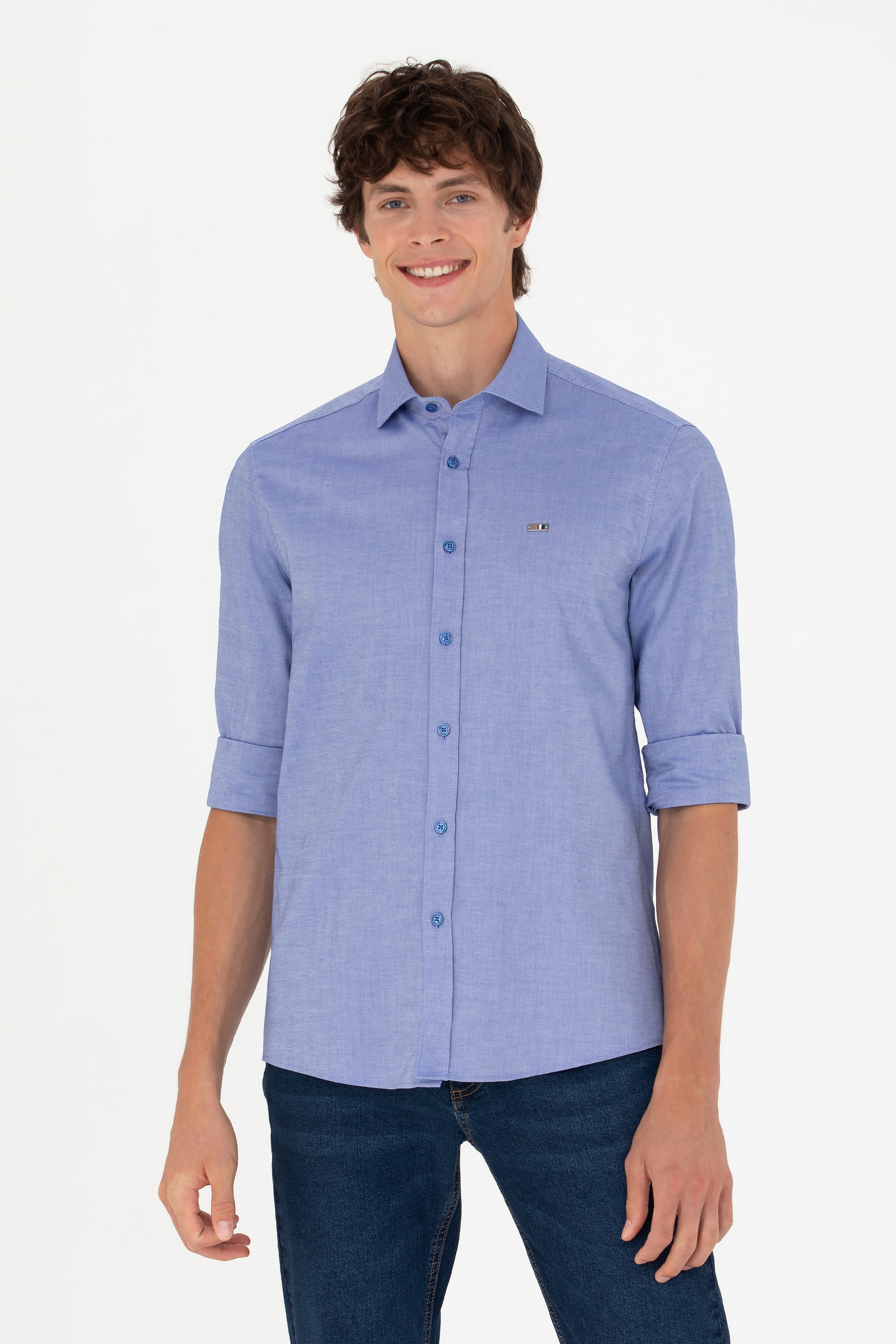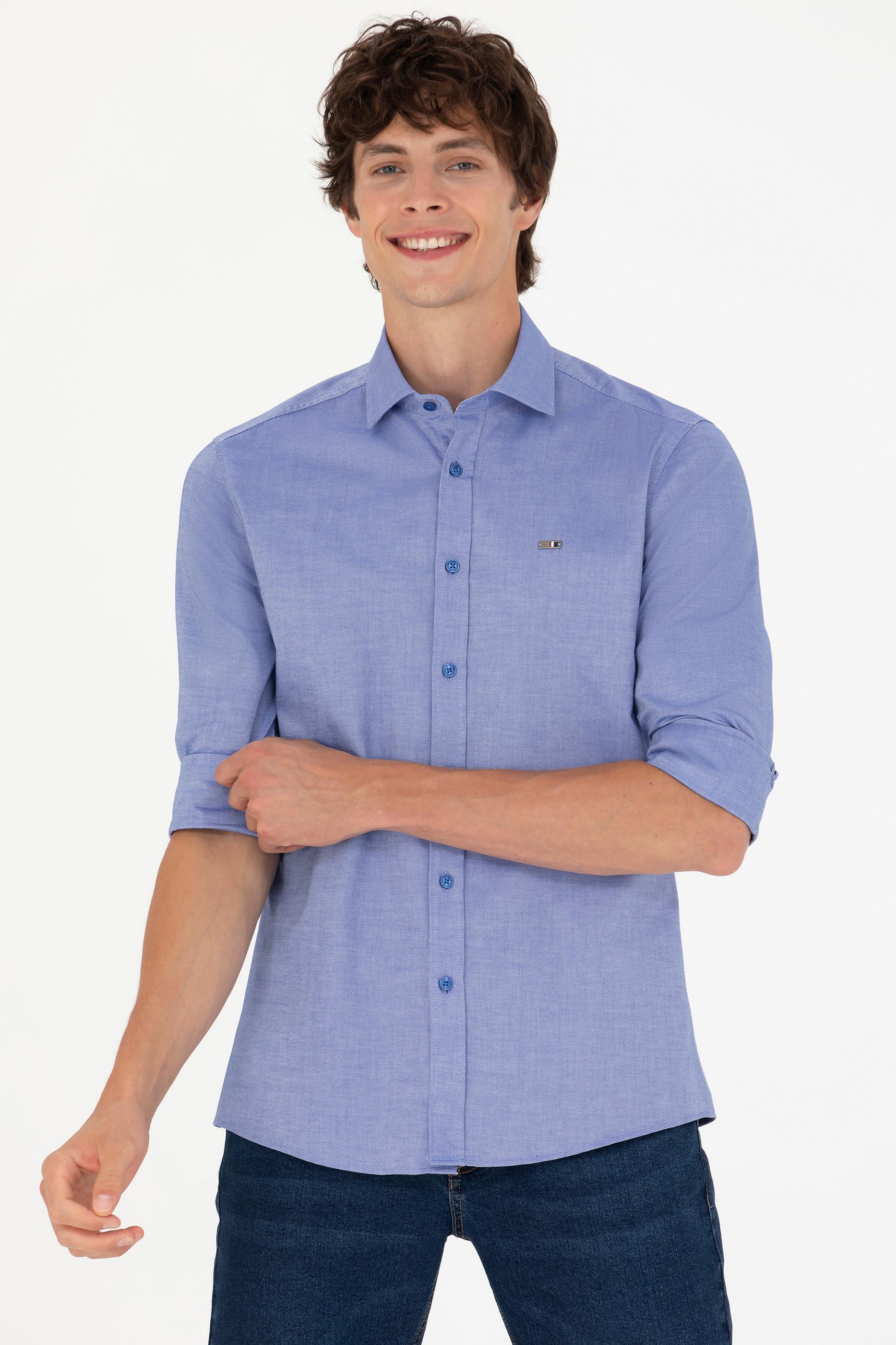 - Erkek Saks Uzun Kollu Basic Gömlek