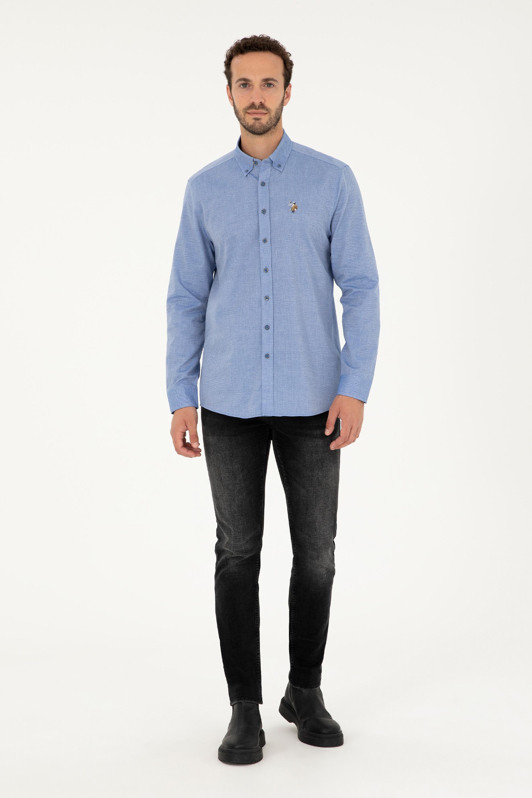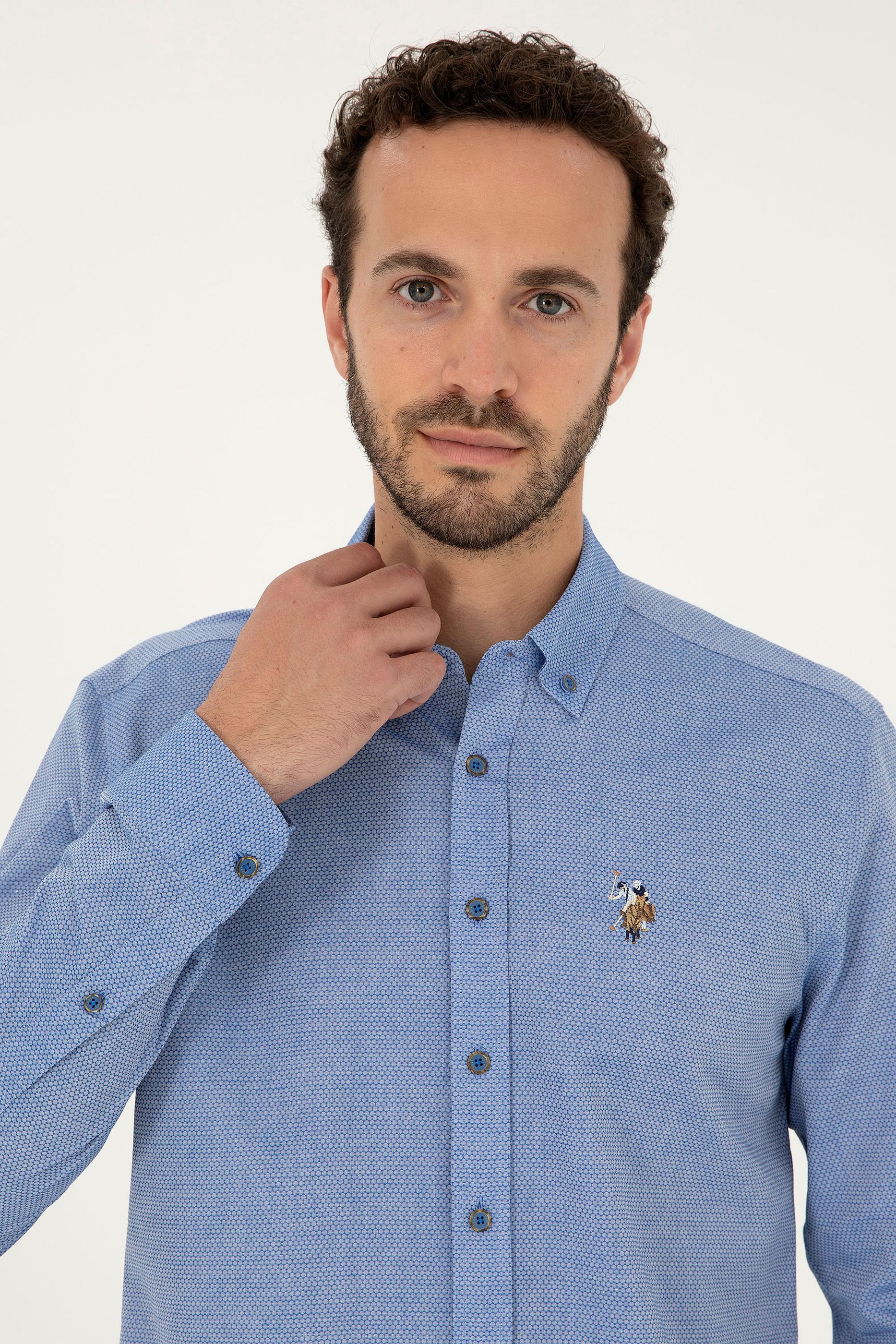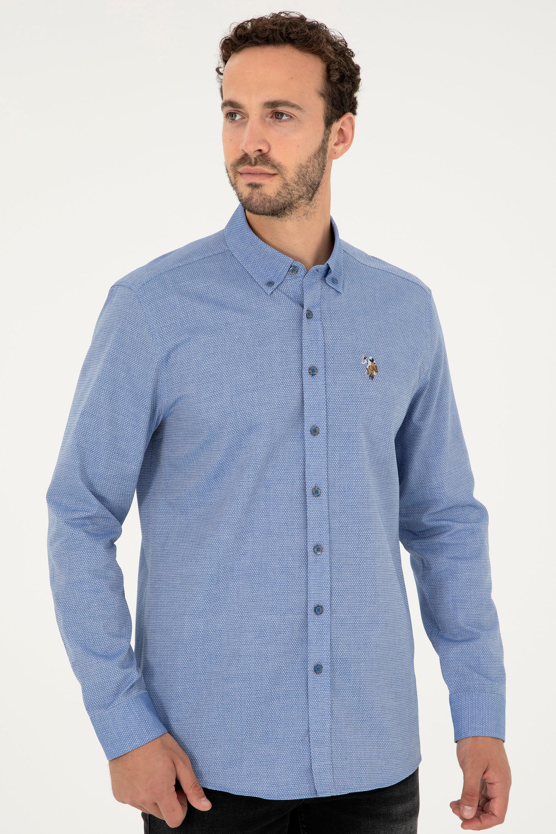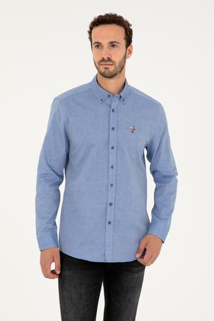 Erkek Saks Uzun Kollu Basic Gömlek - 50271292055