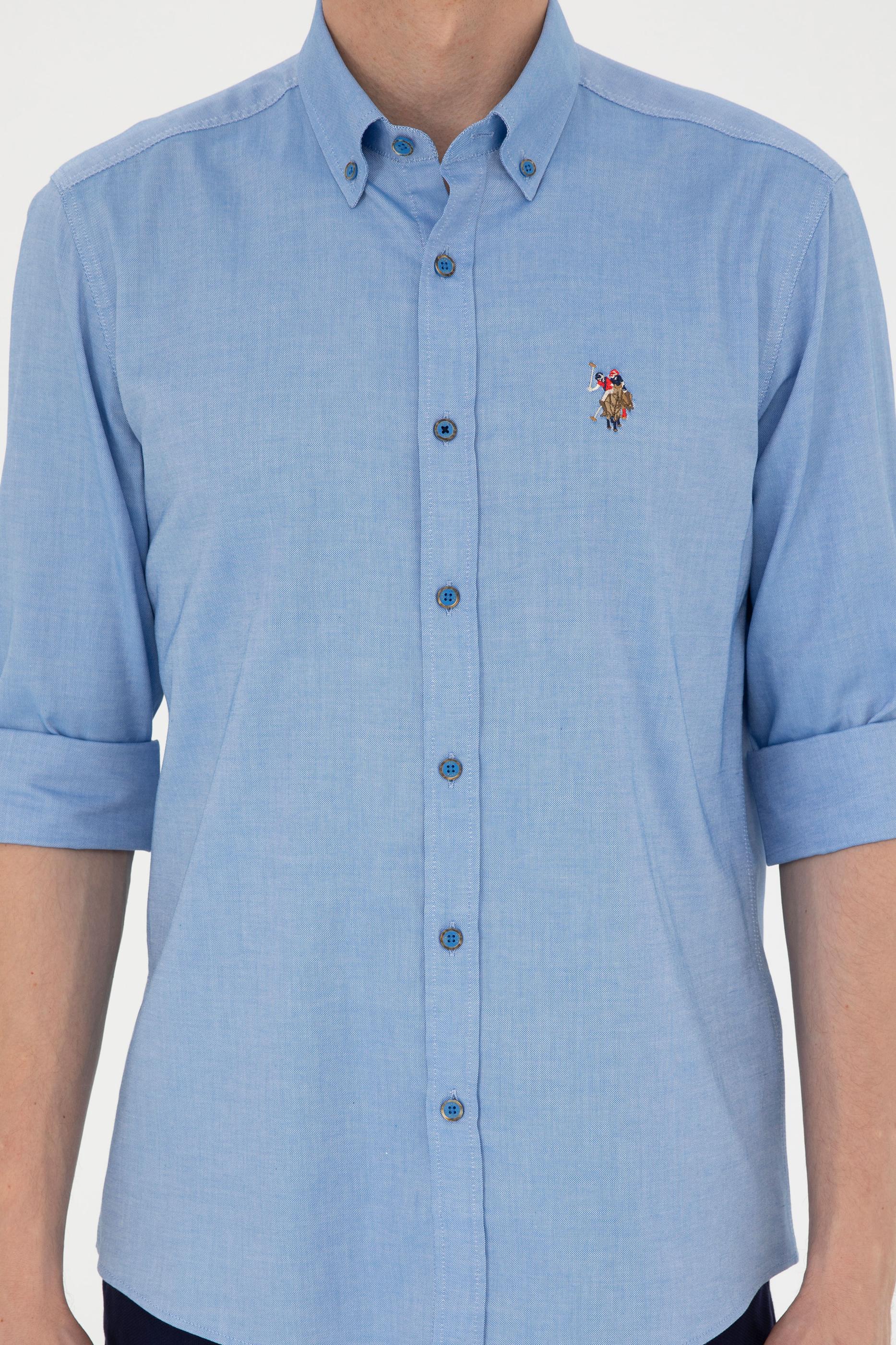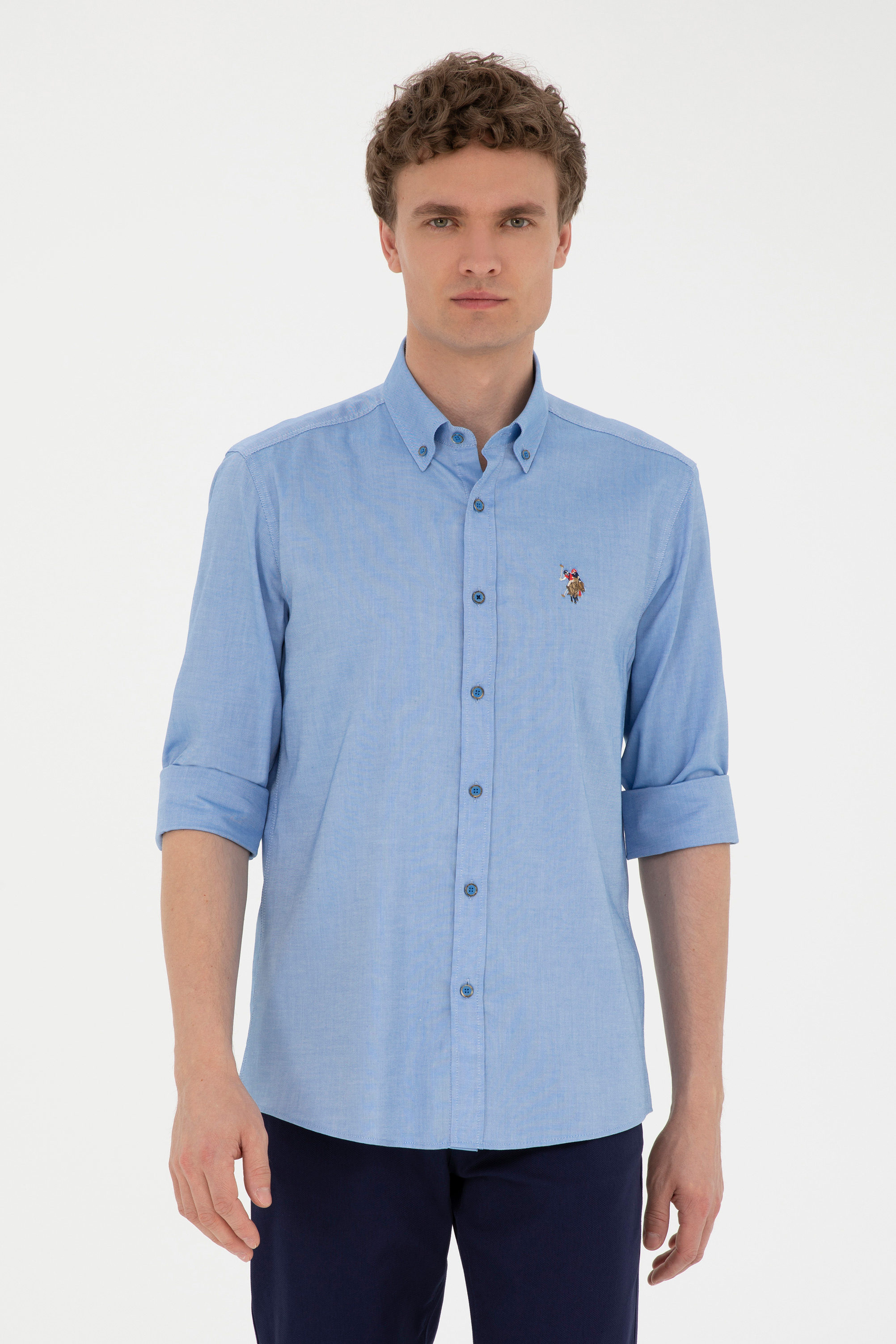 - Erkek Saks Uzun Kollu Basic Gömlek