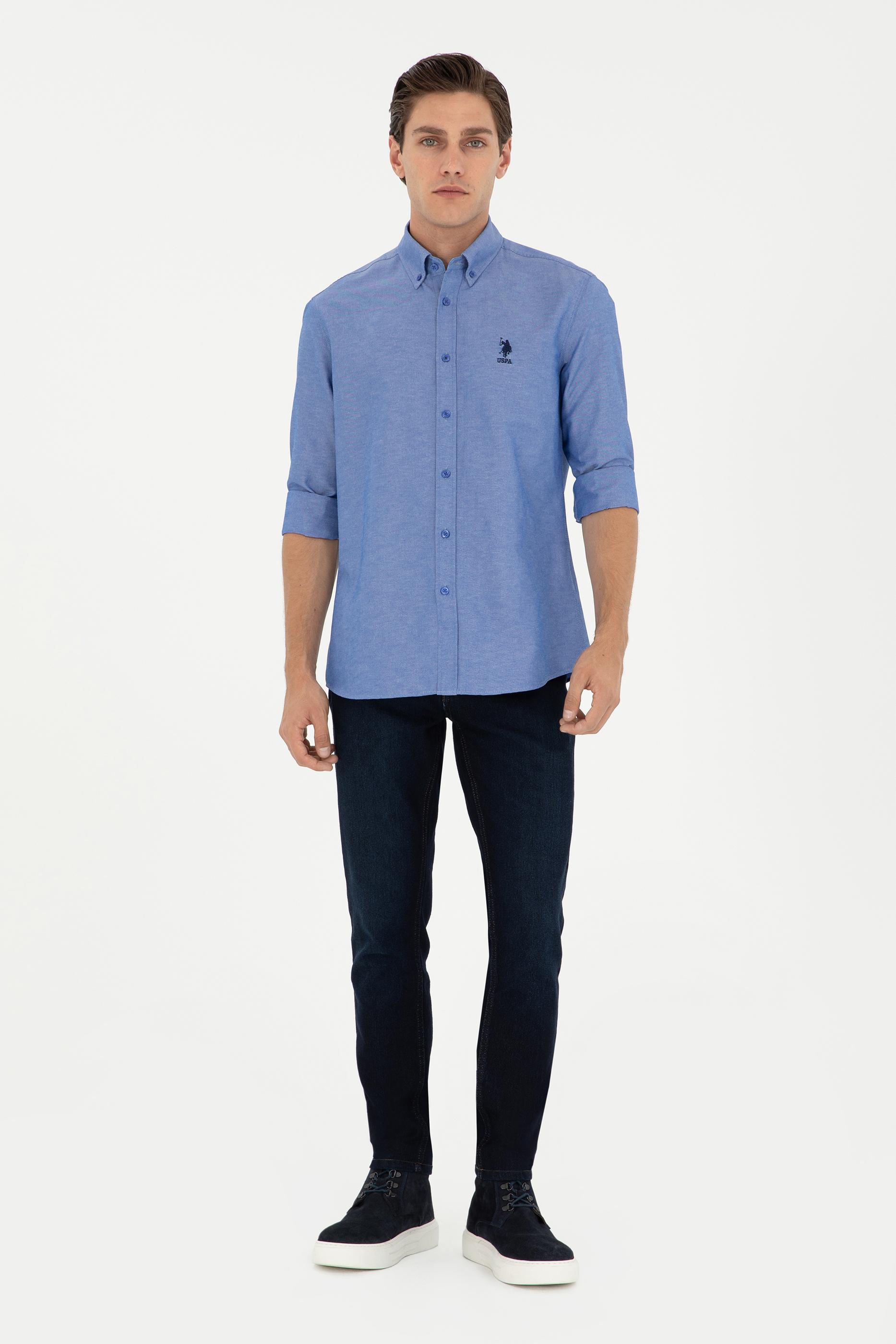 "name": "Erkek Saks Uzun Kollu Basic Gömlek",