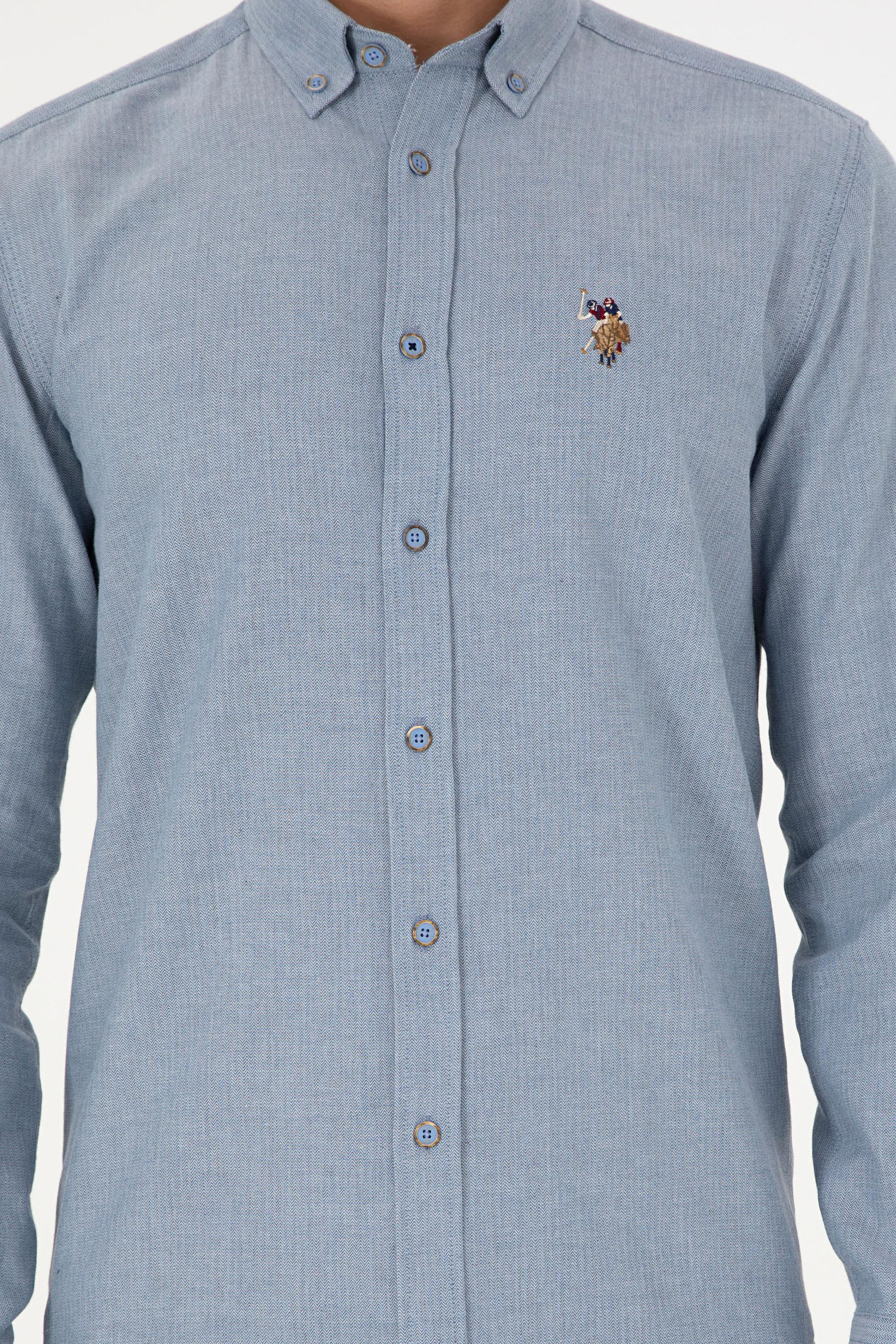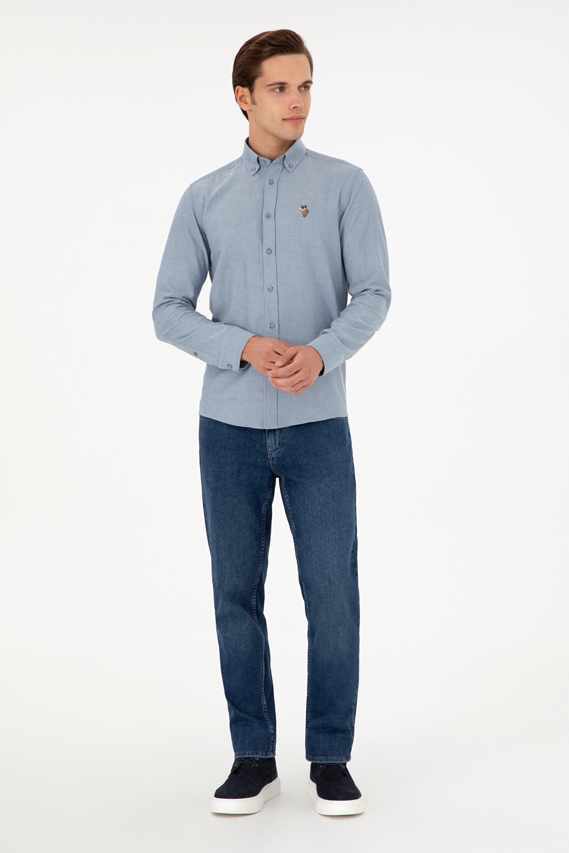 "name": "Erkek Saks Uzun Kollu Basic Gömlek",