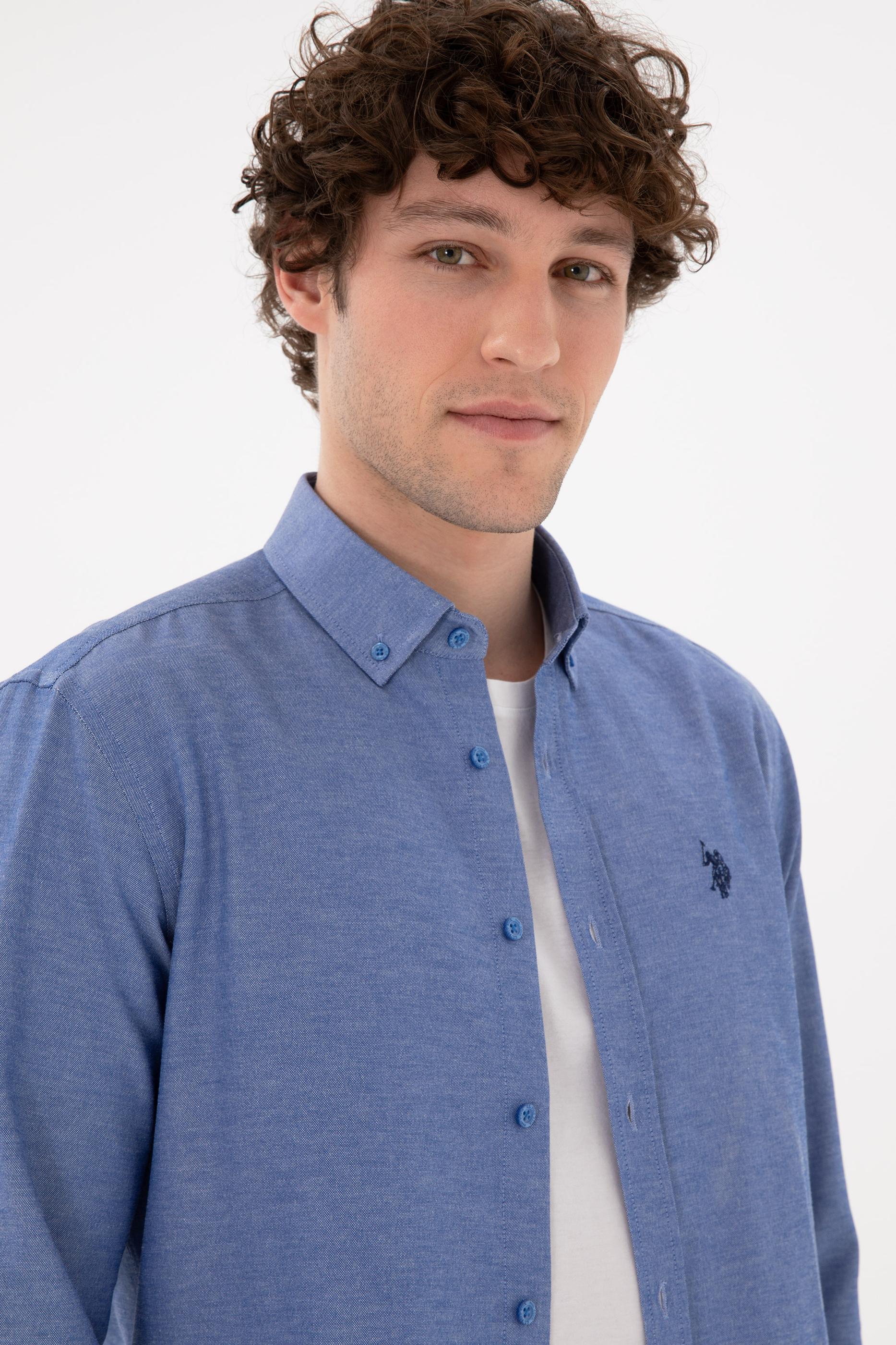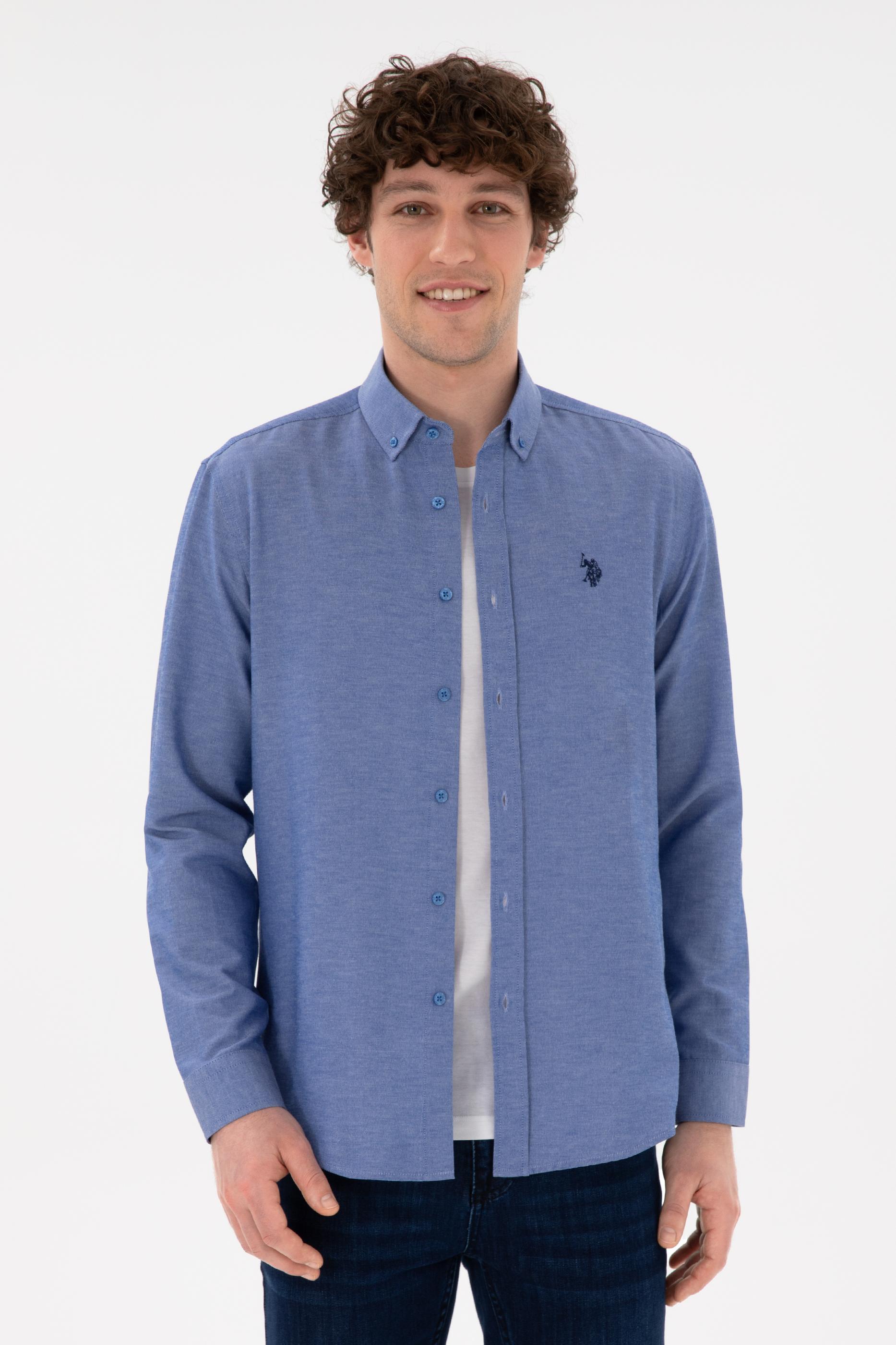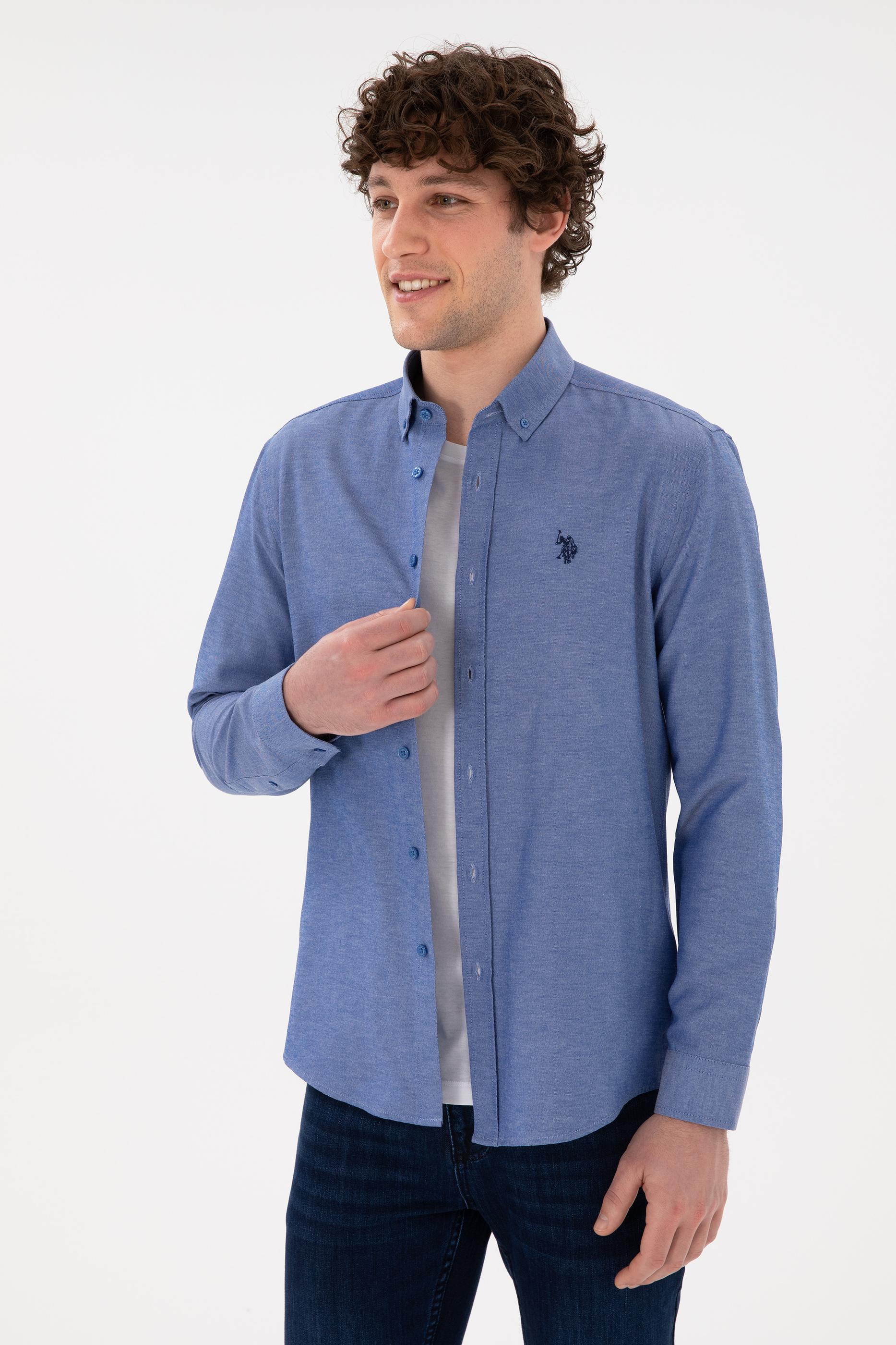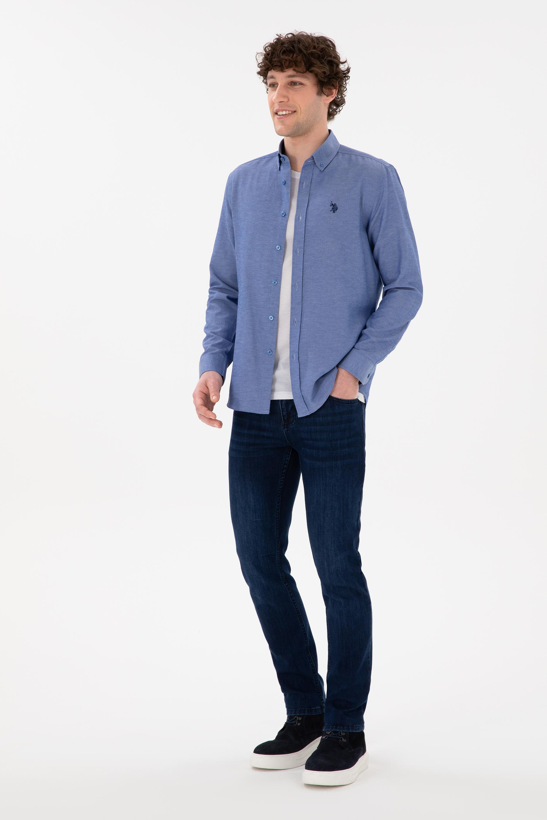 - Erkek Saks Uzun Kollu Basic Gömlek