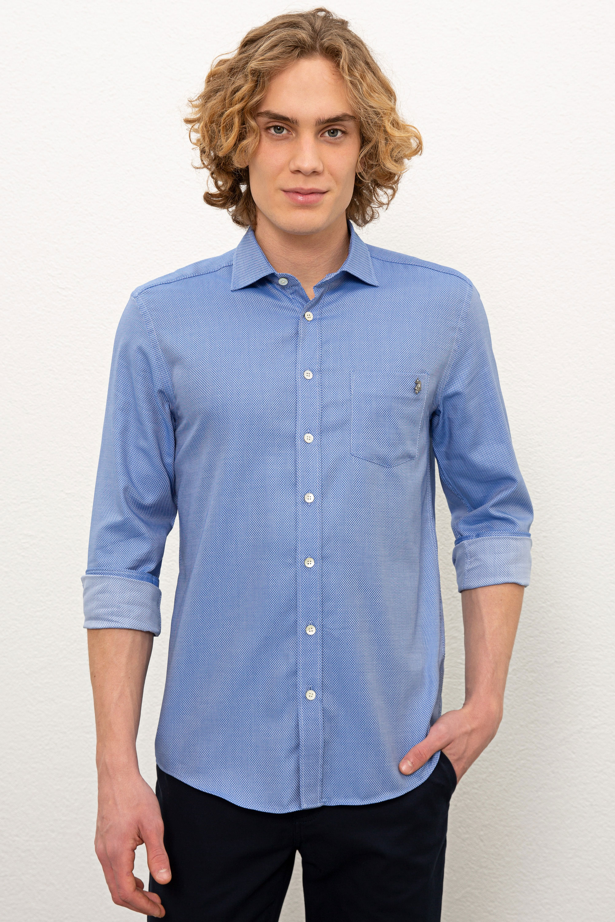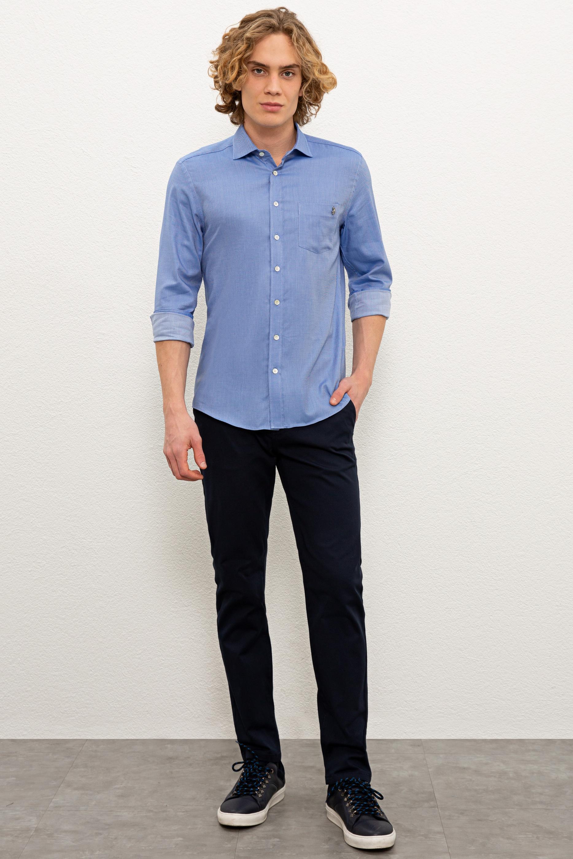 Erkek Saks Uzun Kollu Gömlek