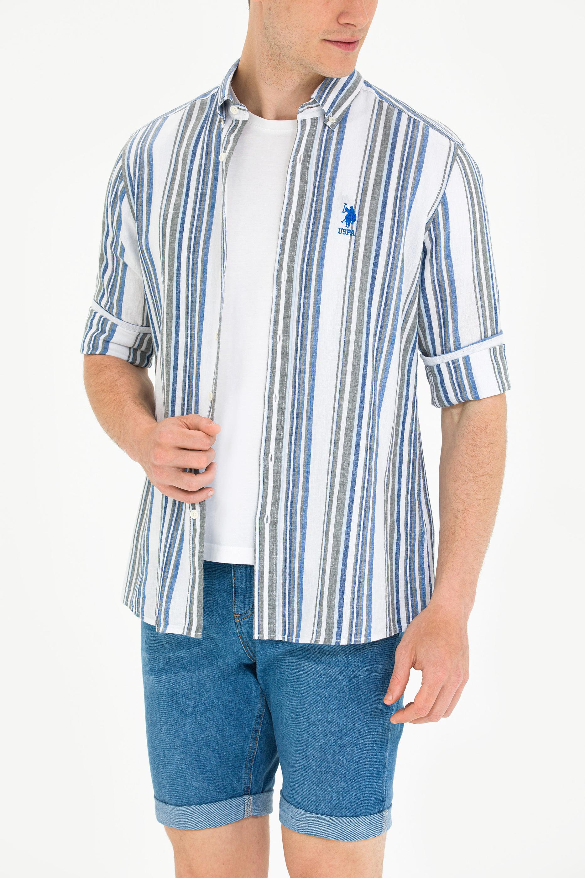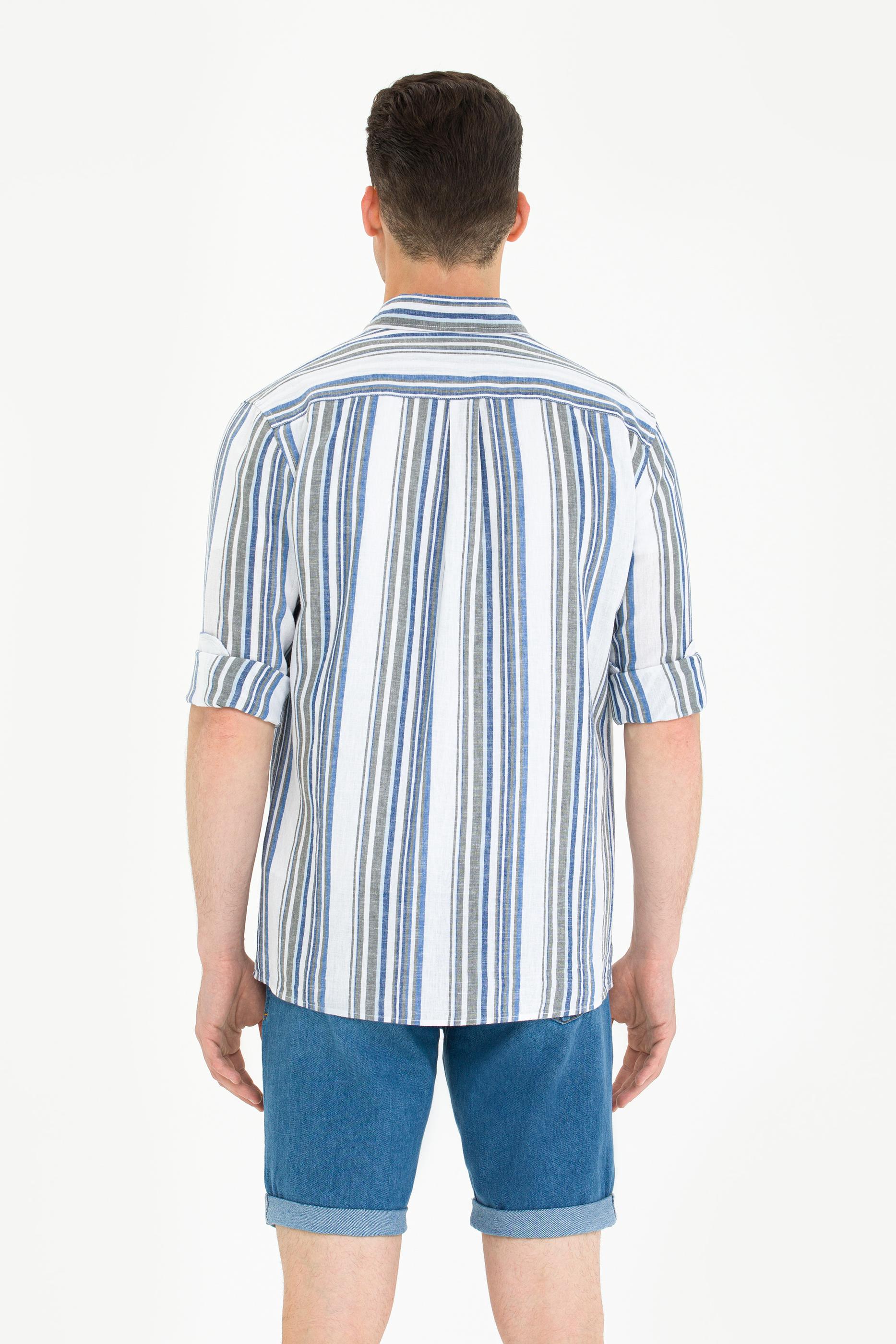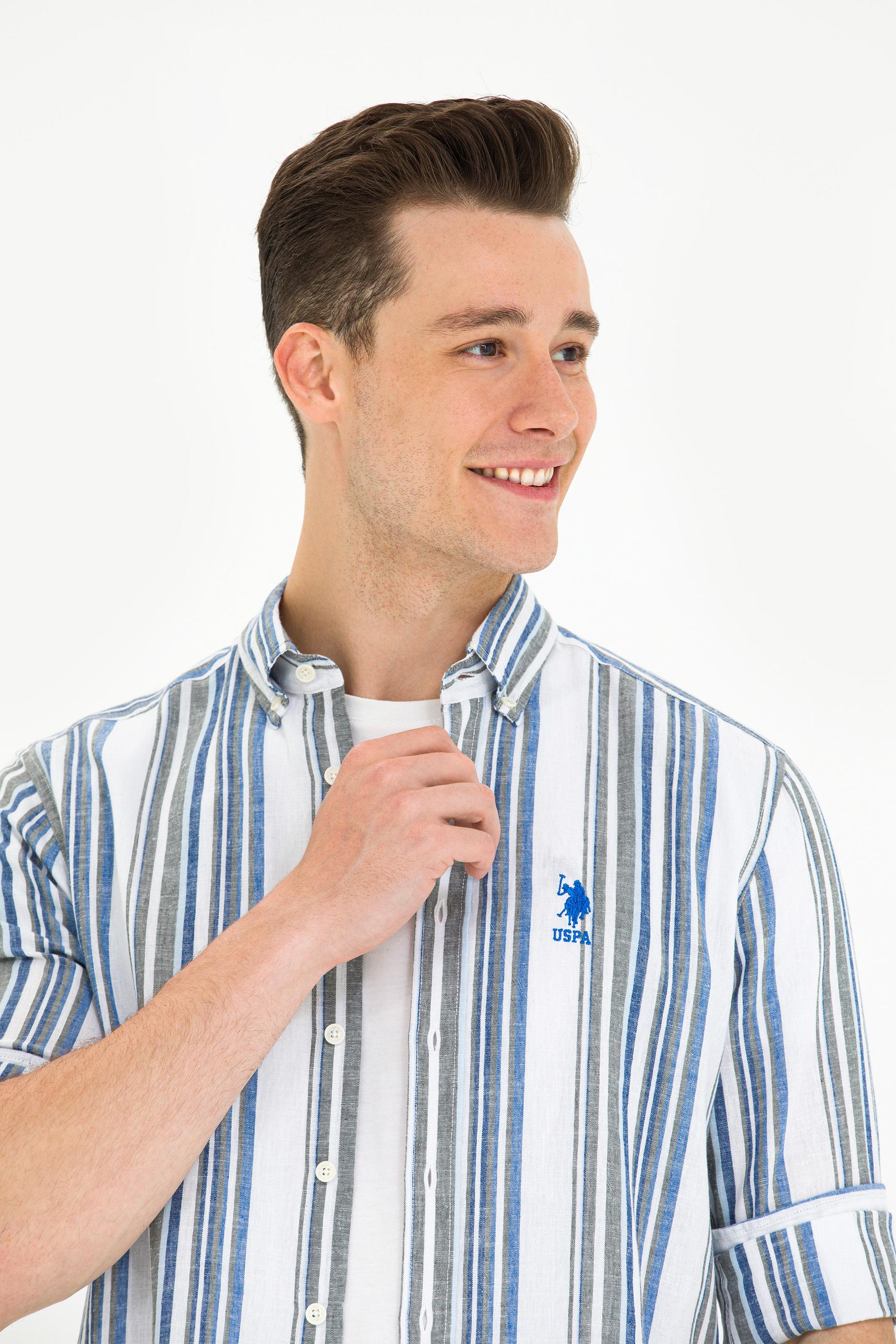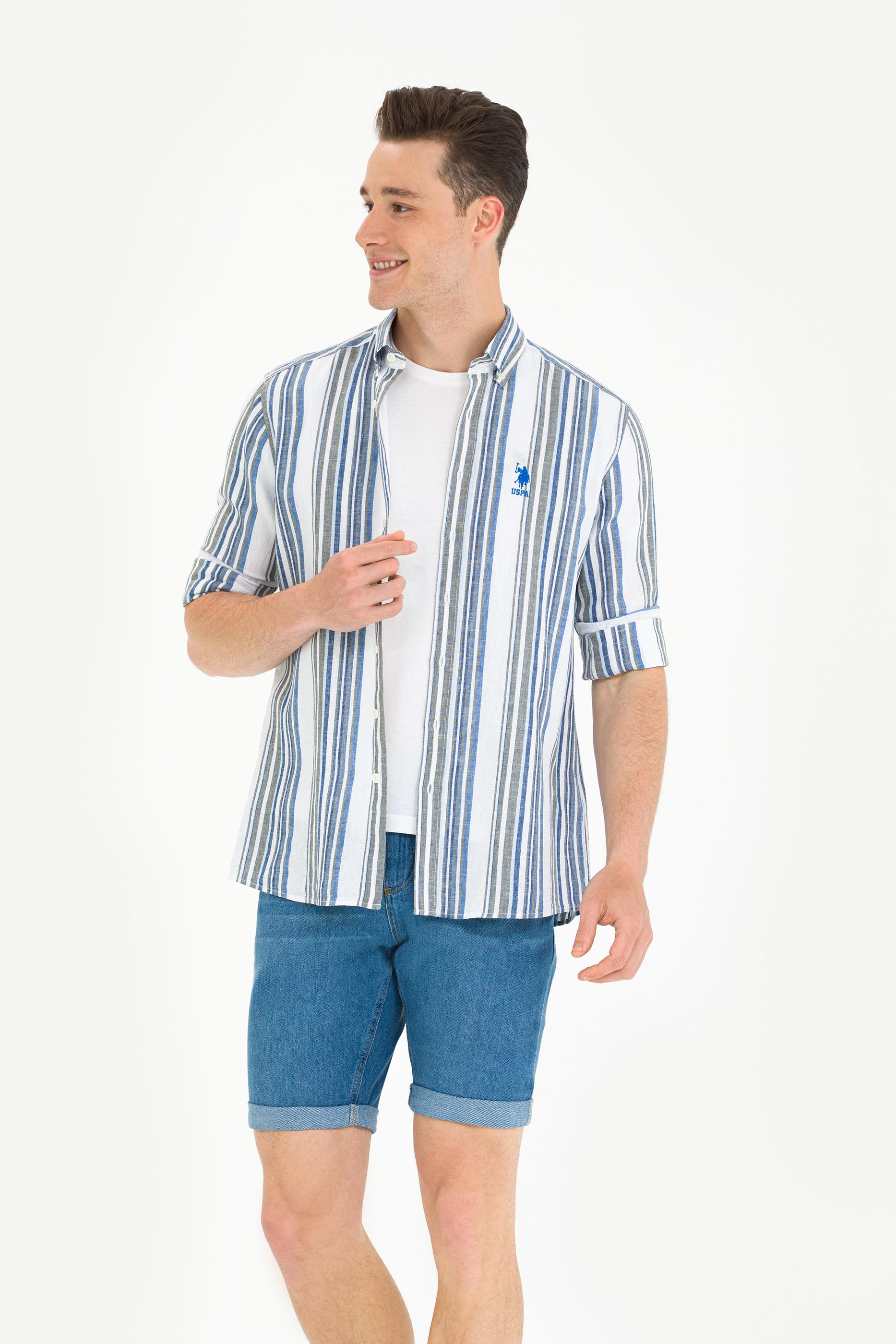 Erkek Saks Çizgili Beyaz Gömlek