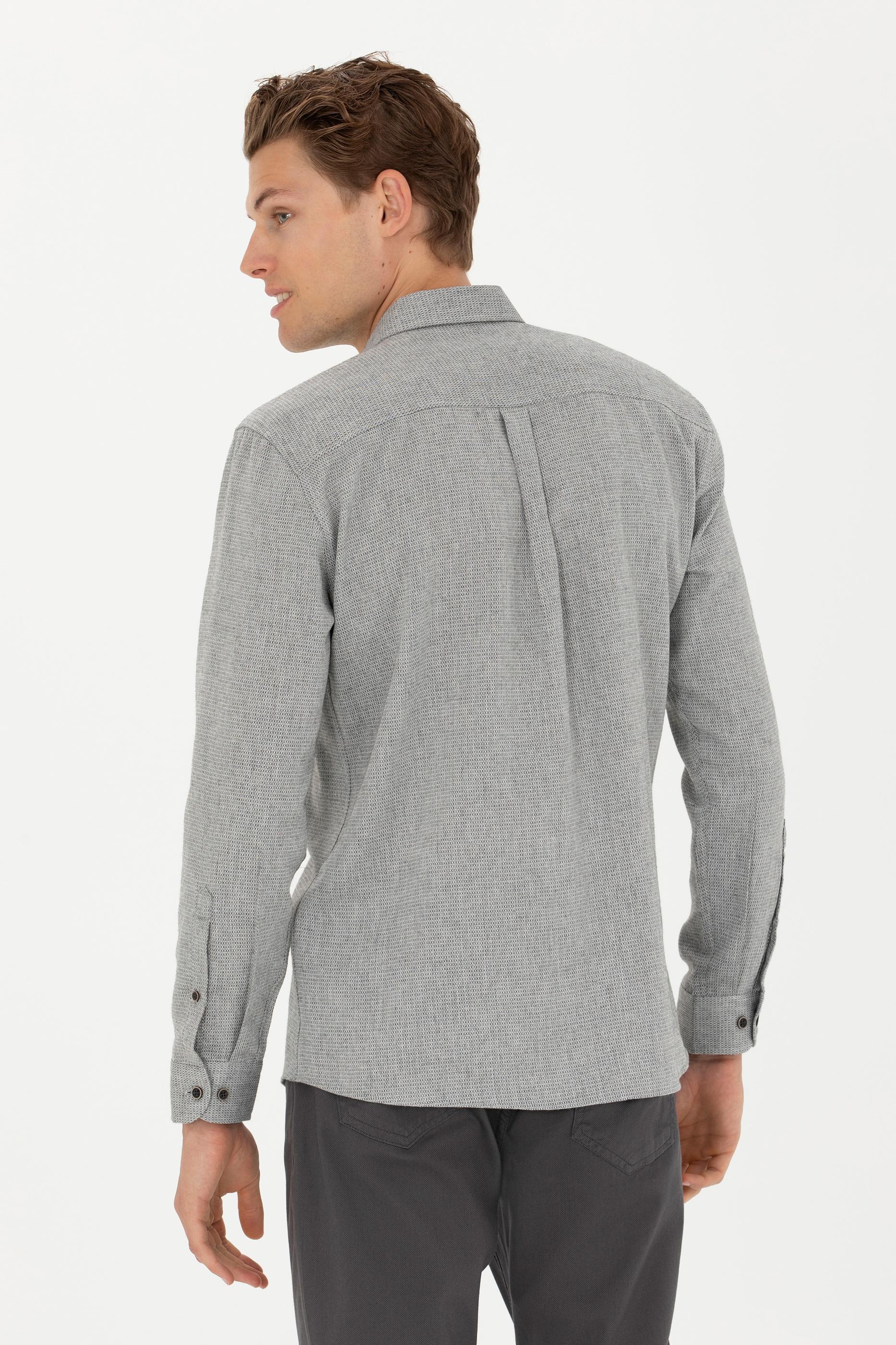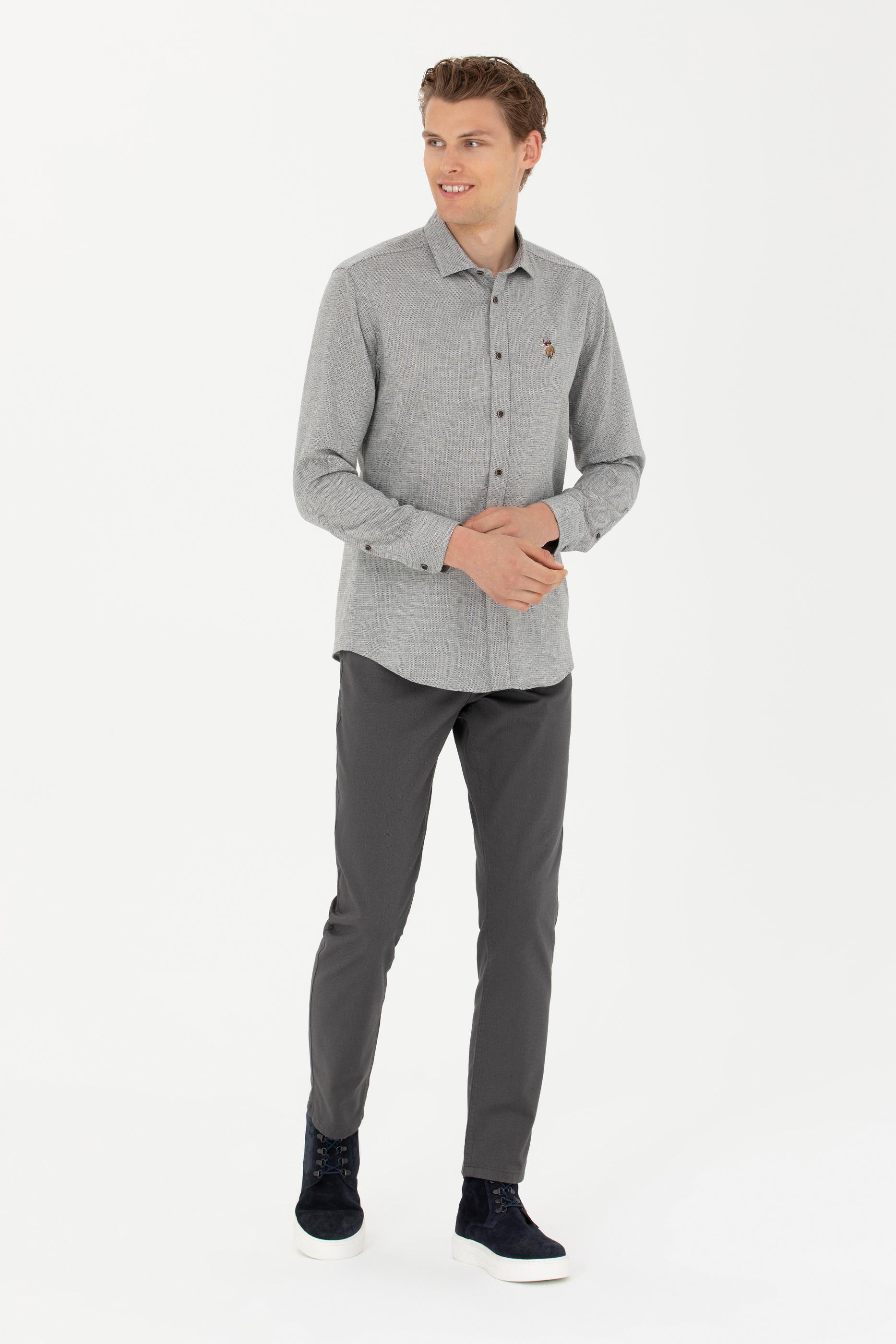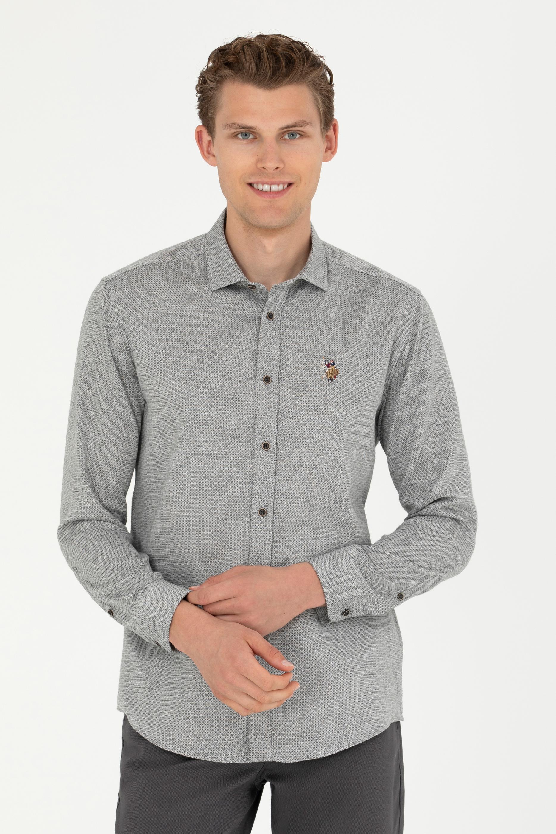 Erkek Saks Uzun Kollu Gömlek